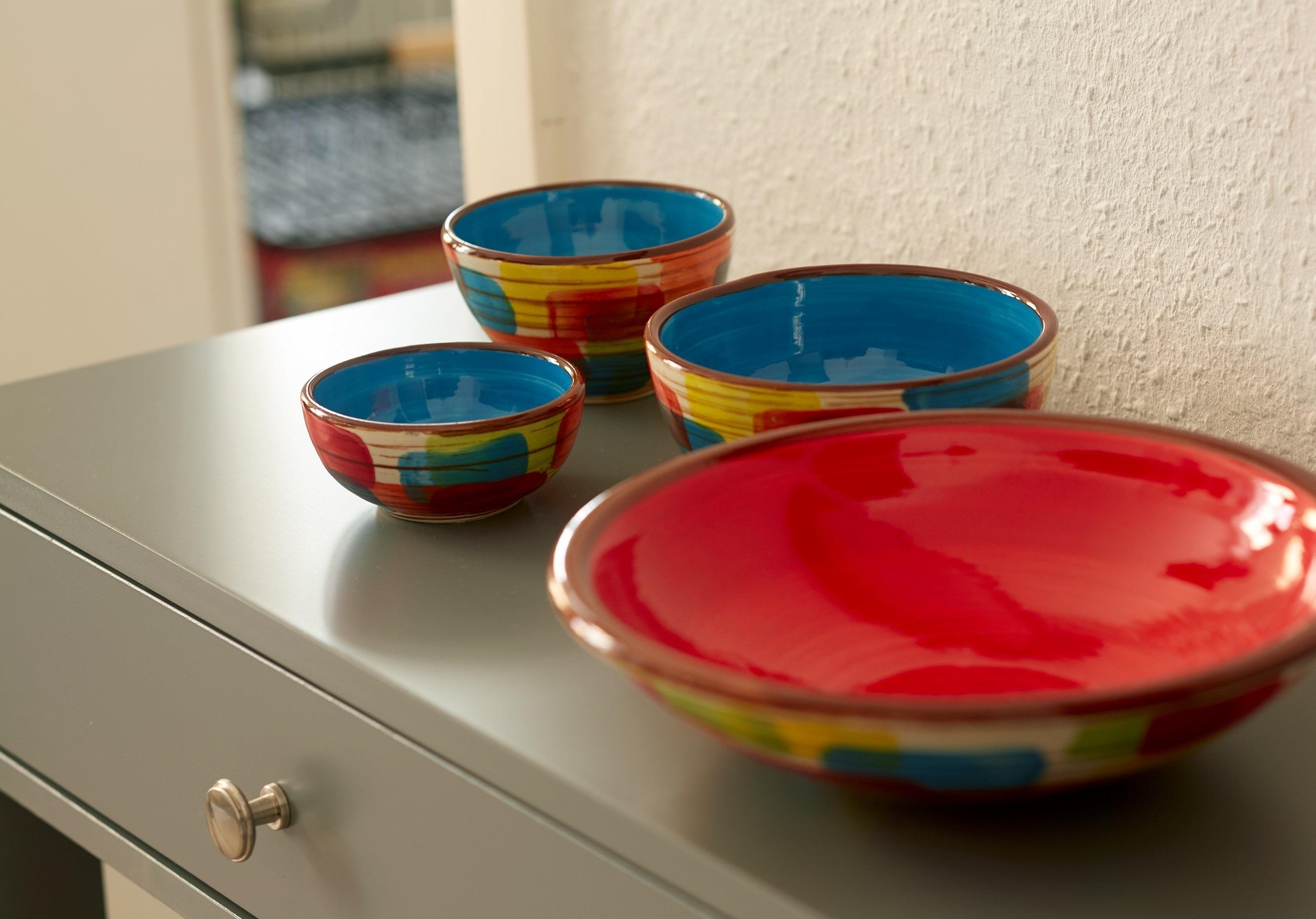 - Voll ausgestattete Küche mit Esstisch, ua. mit Herd, Backofen, Kühlschrank, Geschirrspüler, Kaffeemaschine, Wasserkocher, Toaster, French Coffee u.v.m.