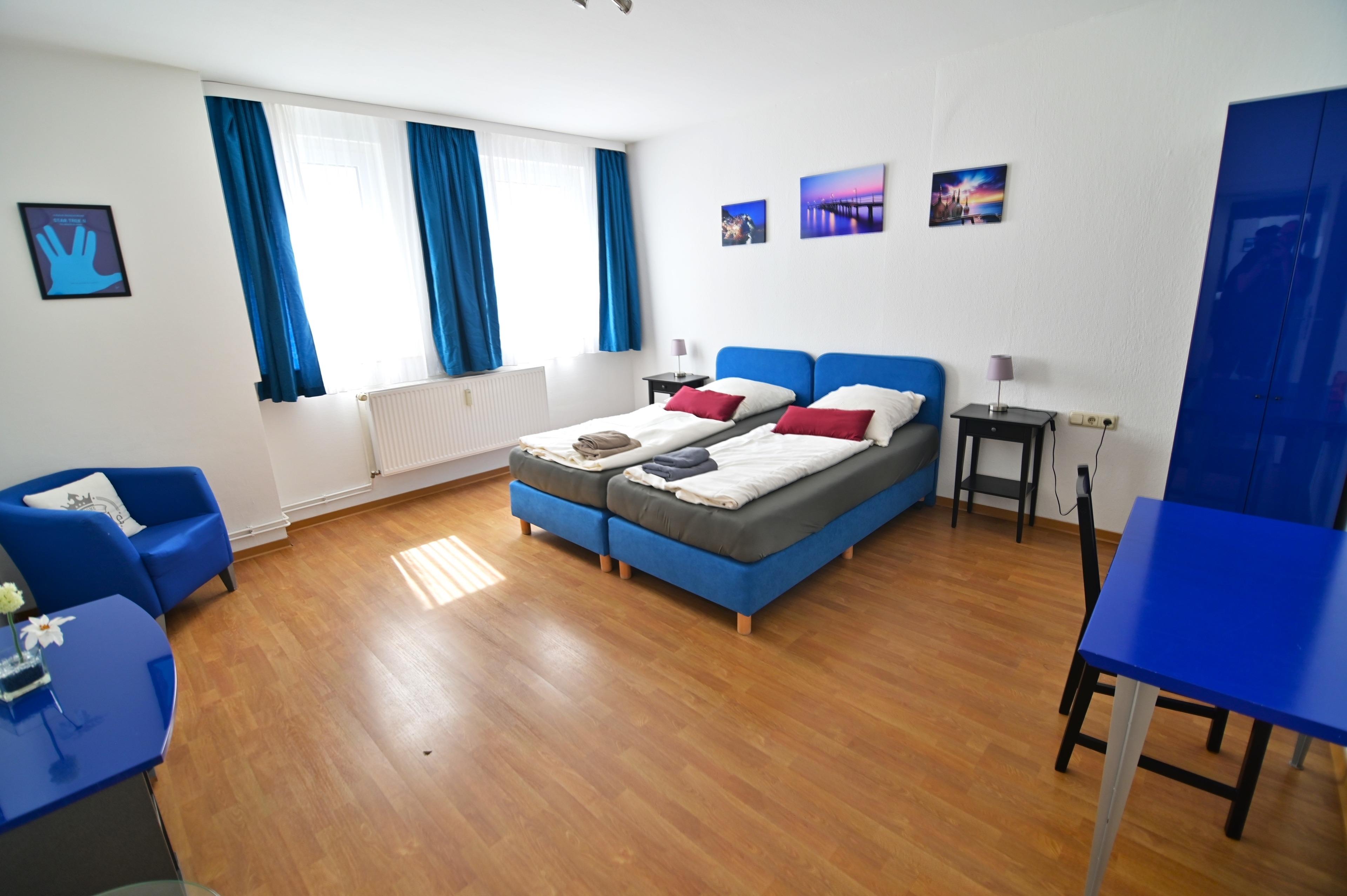 Eine herrlich gelegene Ferienwohnung, mit einem ca. 50 qm großem Wohnzimmer, mit einer schönen offenen Küche, einem separatem Schlafzimmer ca.17 qm, französischem Balkon und einen schönen marmorierten Vollbad. Wir bieten selbstverständlich Kabel-TV, Handtücher, Bettwäsche und Endreinigung ohne zusätzliche Kosten. Ein Pkw Stellplatz direkt am Objekt für 9,50€/Tag. Alle Sehenswürdigkeiten zu Fuß erreichbar. z.B. Schlossparkcenter 300 m, Museum, Theater 500 m Badestrand Zippendorf ca. 4,5 km