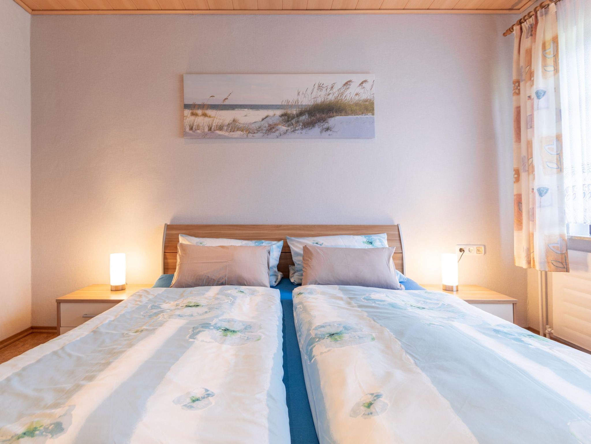 Die 4 Sterne Ferienwohnung nach DTV hat 3 Zimmer, ein großes Badezimmer, sowie Abstellraum und Flur.