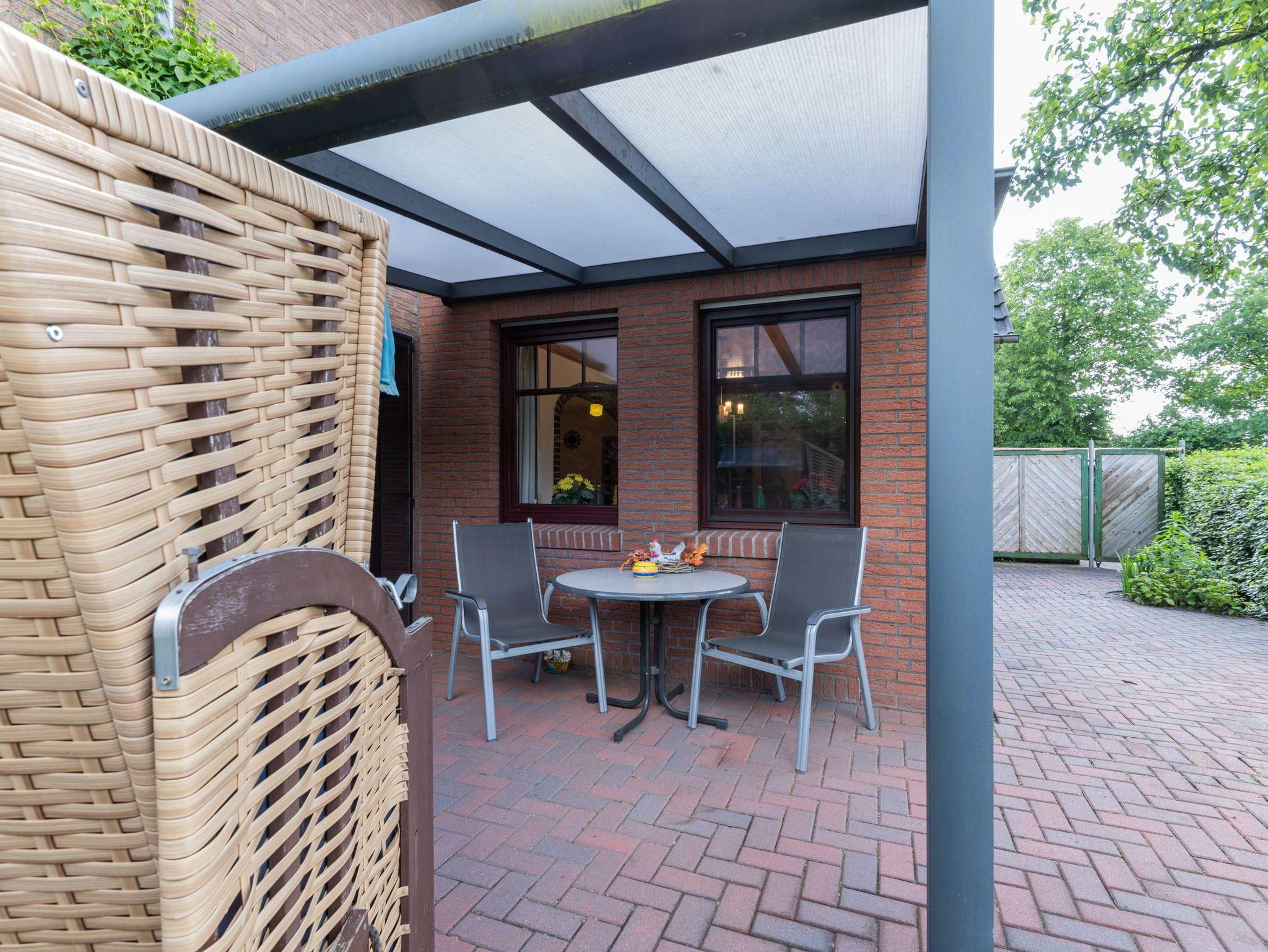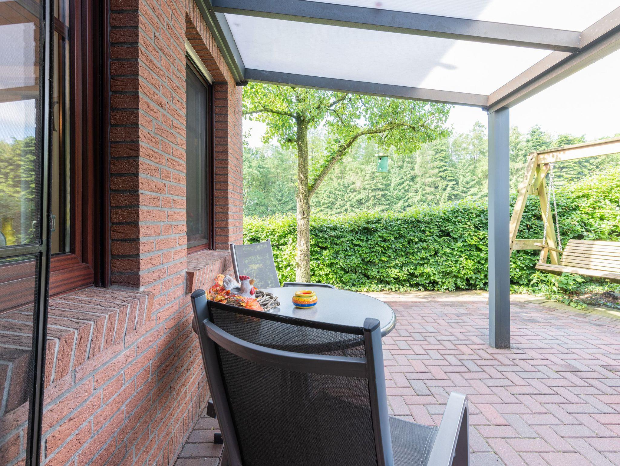 Eine überdachte Terrasse erreichen Sie bequem von der Küche oder vom Wohnzimmer aus. Eine Hollywoodschaukel auf der Terrasse lädt zum Verweilen ein, oder wenn Sie mögen, können sie den Grill benutzen und bei einem Gläschen Wein oder einer Flasche Bier den verdienten Urlaub genießen.