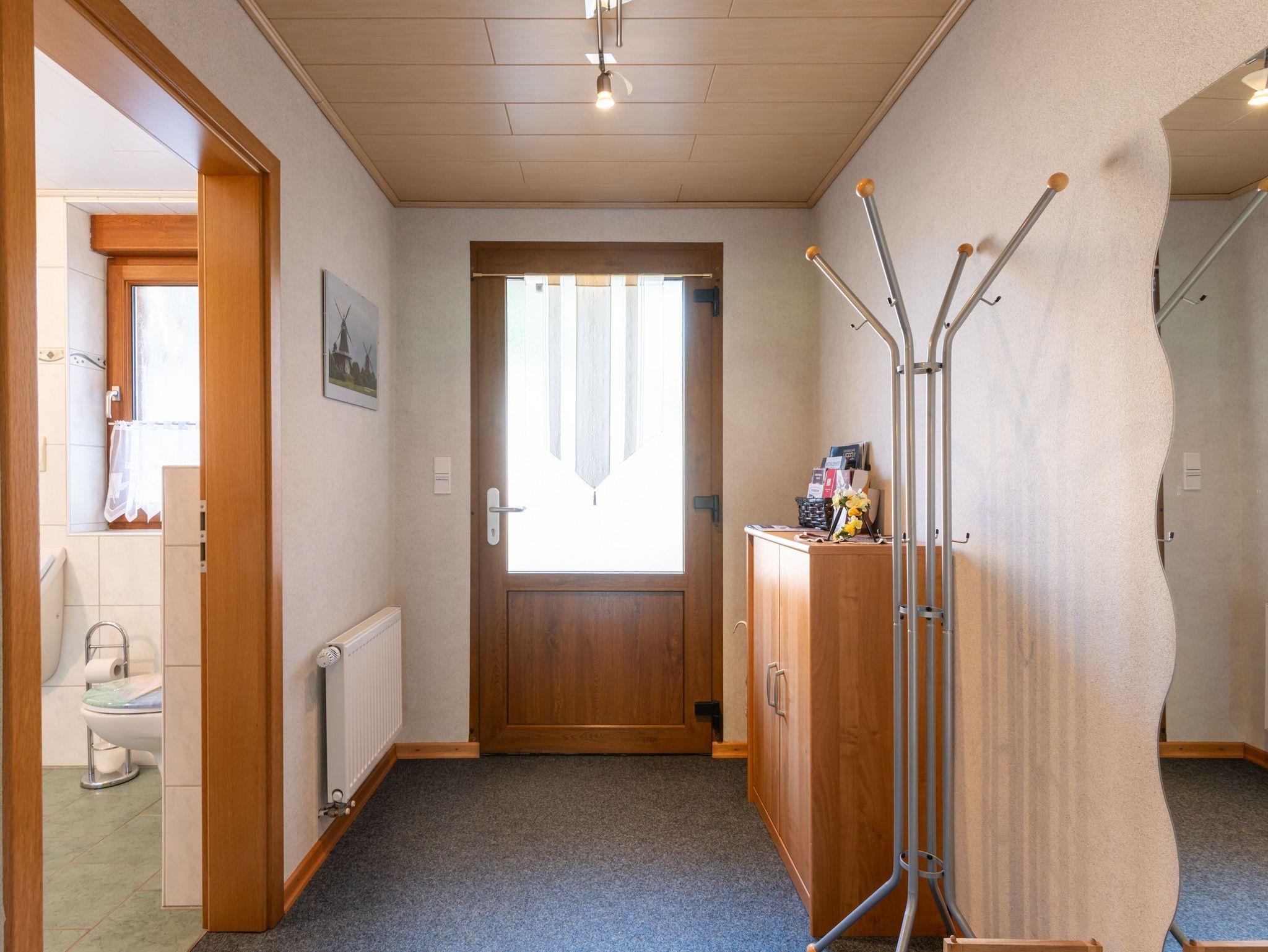 Im Flur gehören Garderobe, Ganzkörperspiegel, Regenschirme, Schuhanzieher und eine Anrichte mit diversen Prospekten zur Ausstattung.