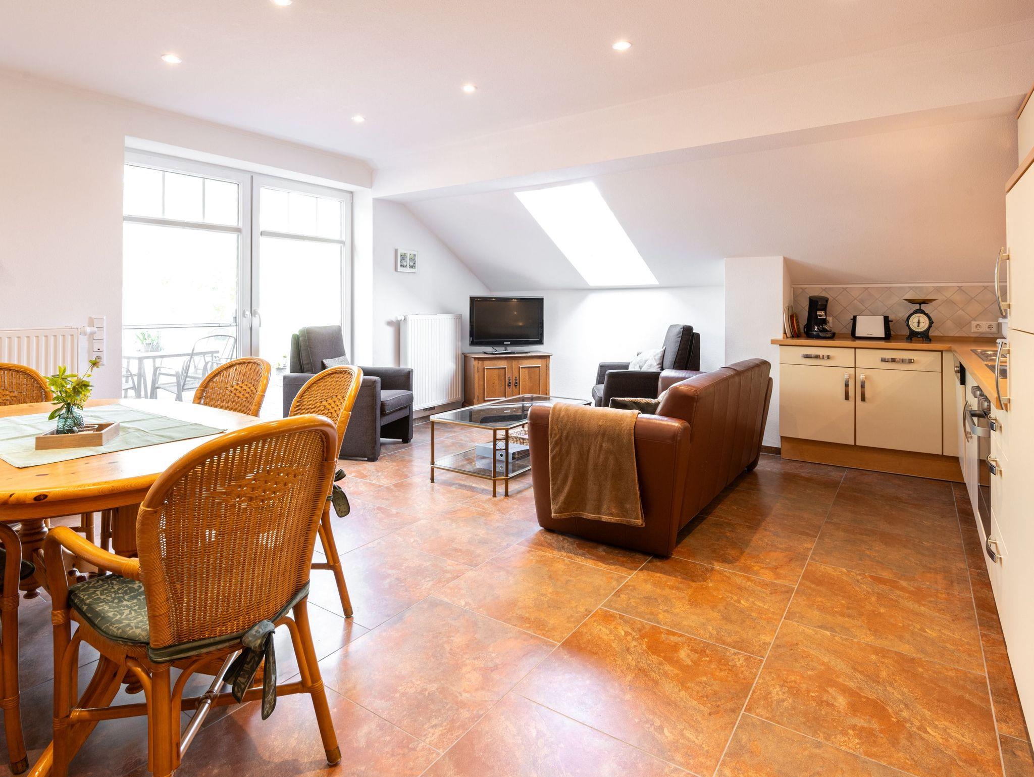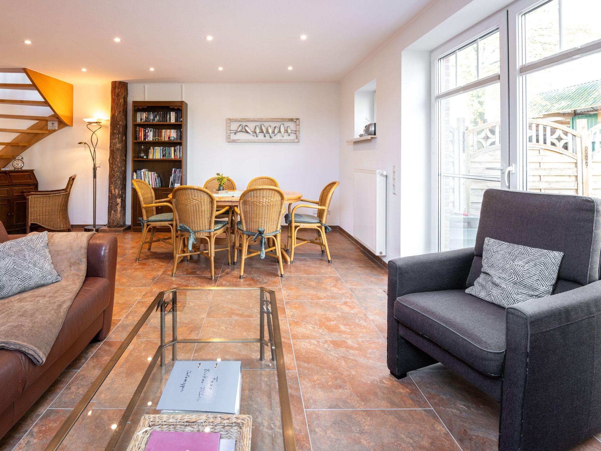 Erdgeschoss: Eine komplett ausgestattete Küche inkl. E-Herd mit Backofen, Spülmaschine, Kühlschrank mit Gefrierfach, Kaffeemaschine, Mikrowelle und ein Toaster. Dazu noch eine Küchenmaschine und diverse Backformen und Utensilien. Ein Essbereich mit großem Tisch und 6 Stühlen. Der Wohnbereich mit einem 3-Sitzer und zwei Sessel und einem Flach-Bild-Fernseher mit SAT-Anschluss bietet Ihnen Platz zum Entspannen oder einen Abend in familiärer Runde für Gesellschaftsspiele.