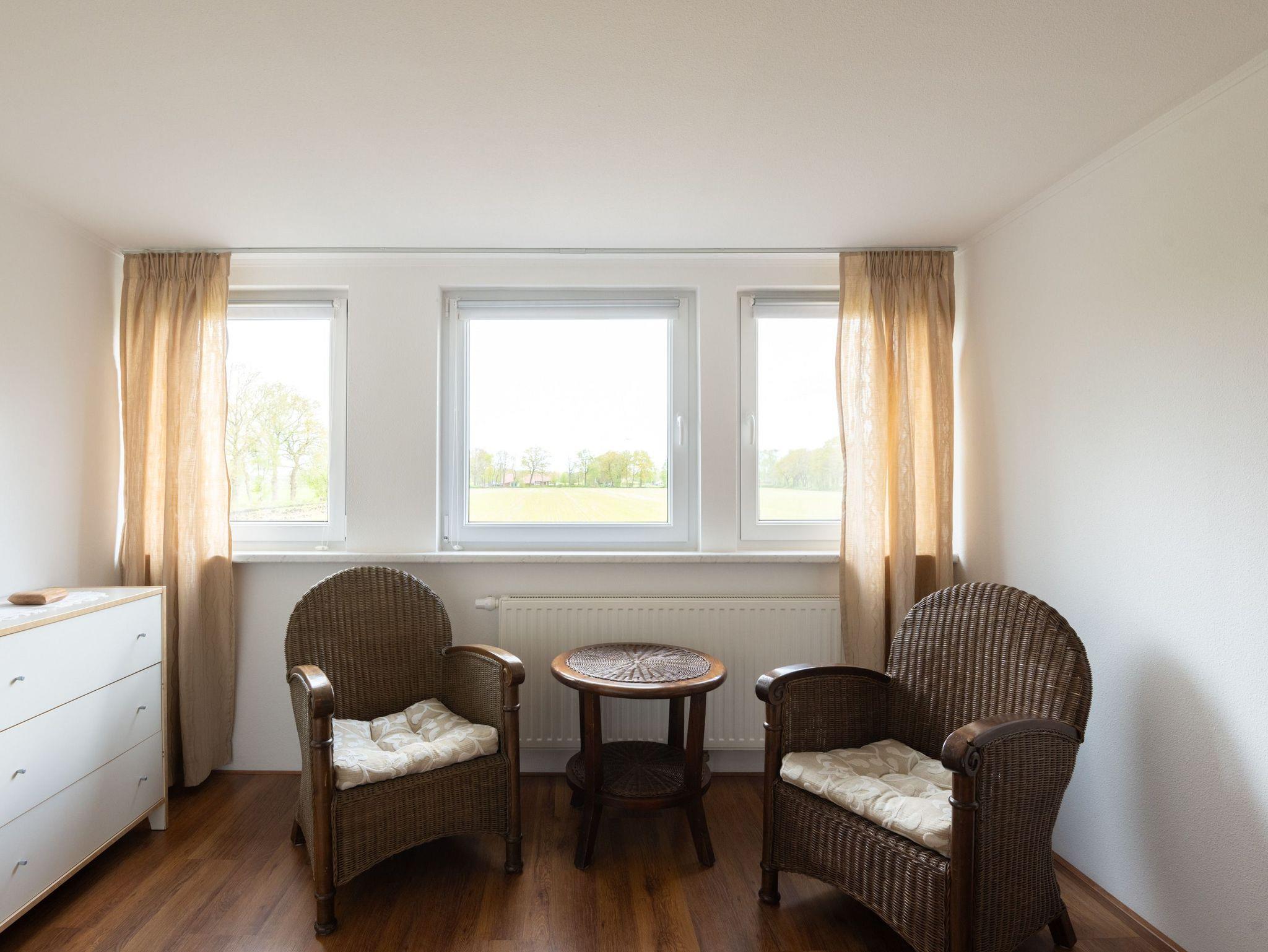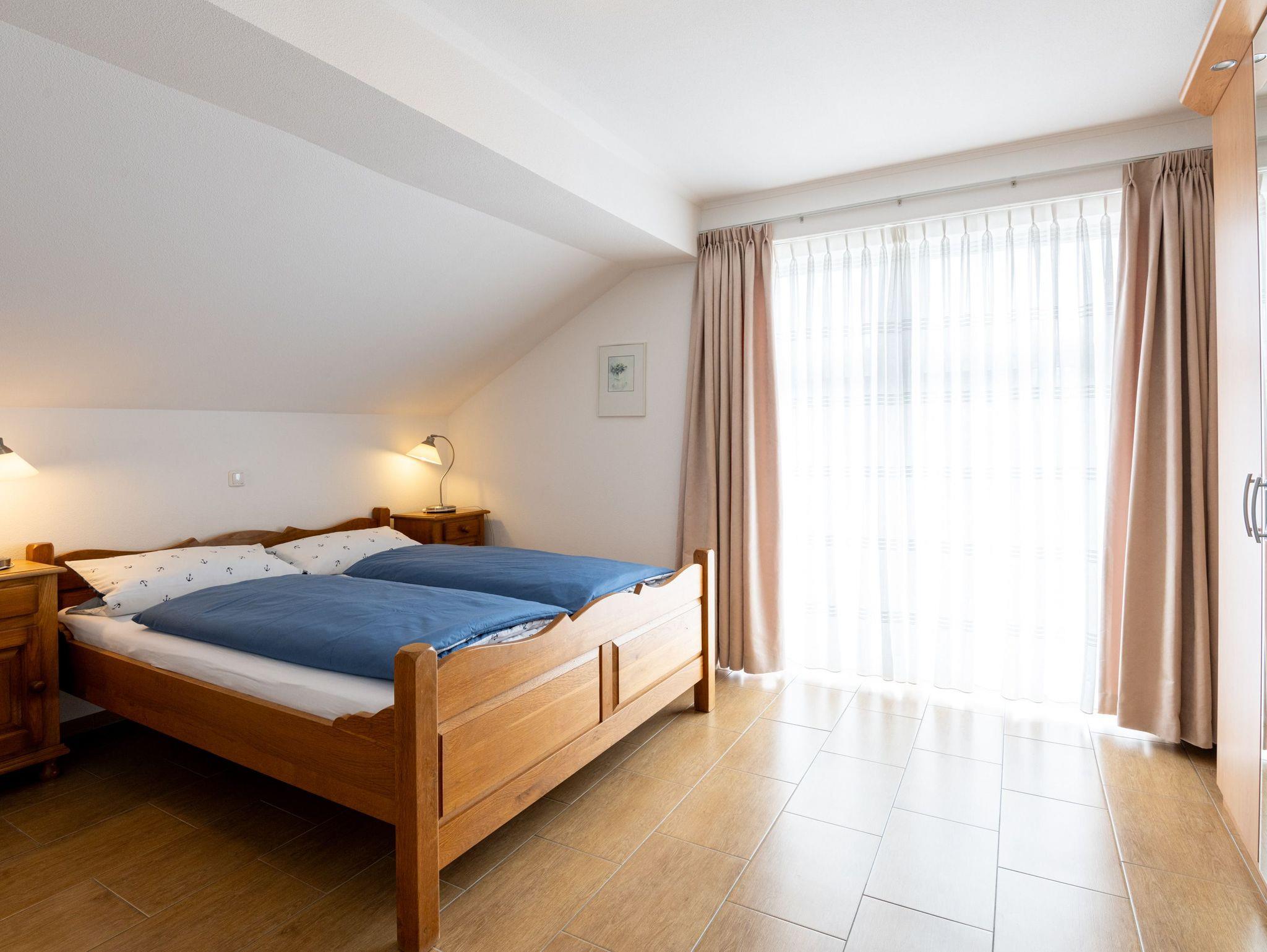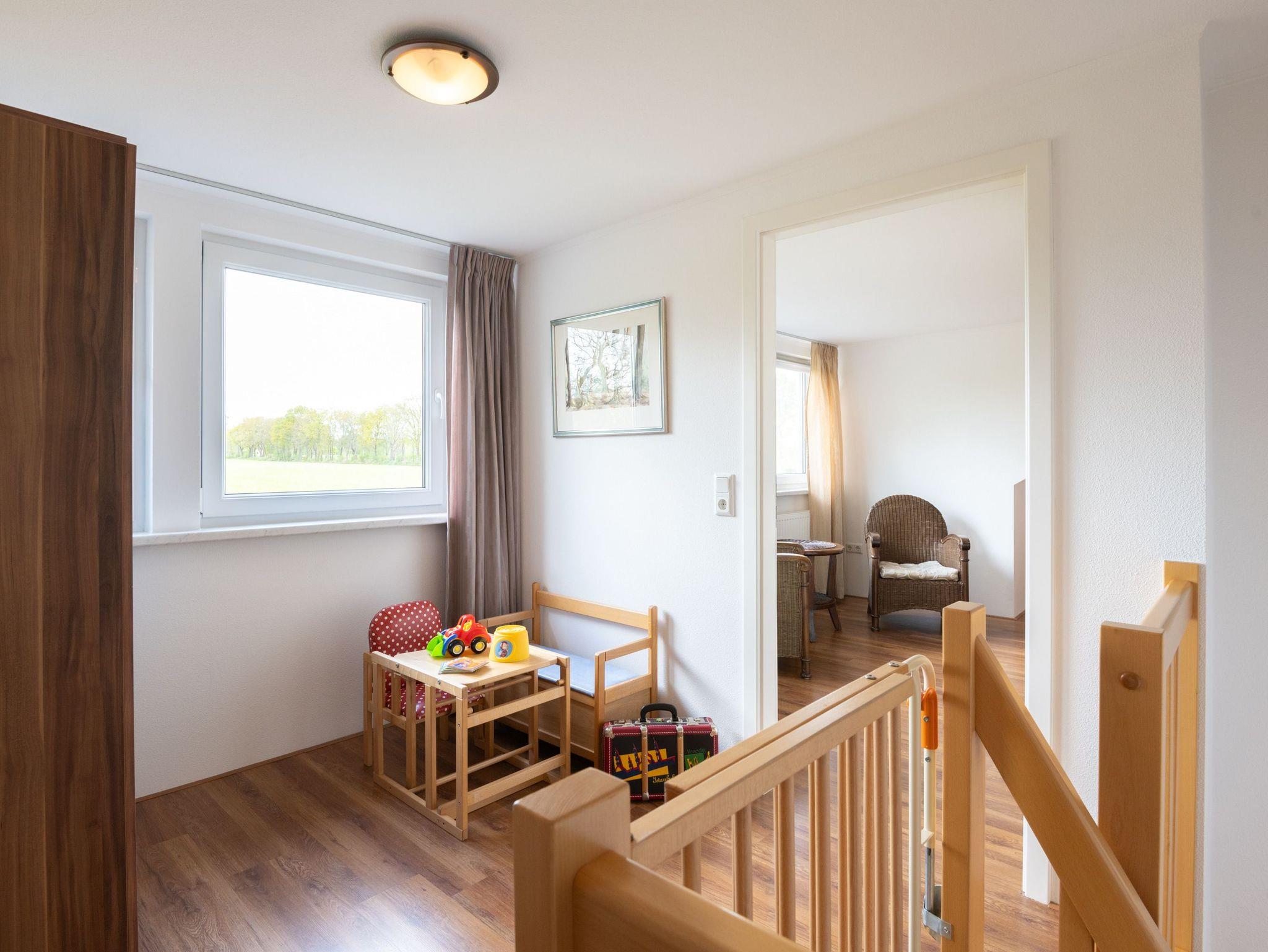 Schlafzimmer 1: Ein Doppelbett (180 x 200 cm), ein großer 3-türiger Kleiderschrank und eine Sitzecke befinden sich im Schlafzimmer (extra Kopfkissen vorrätig). Ein Kinderreisebett und zwei Rausfallschutze sind vorhanden. Ein Hochstuhl und 2x Rausfallschutz sind ebenfalls vorhanden