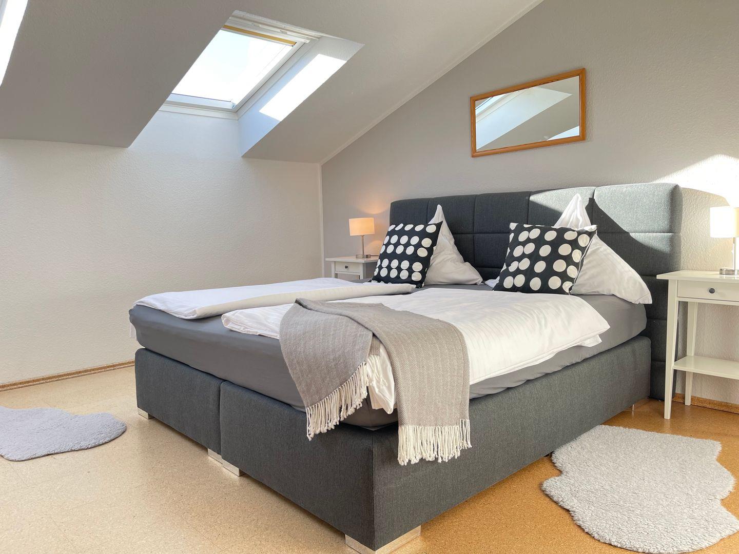 - Ein Schlafzimmer mit hochwertigem Boxspringbett