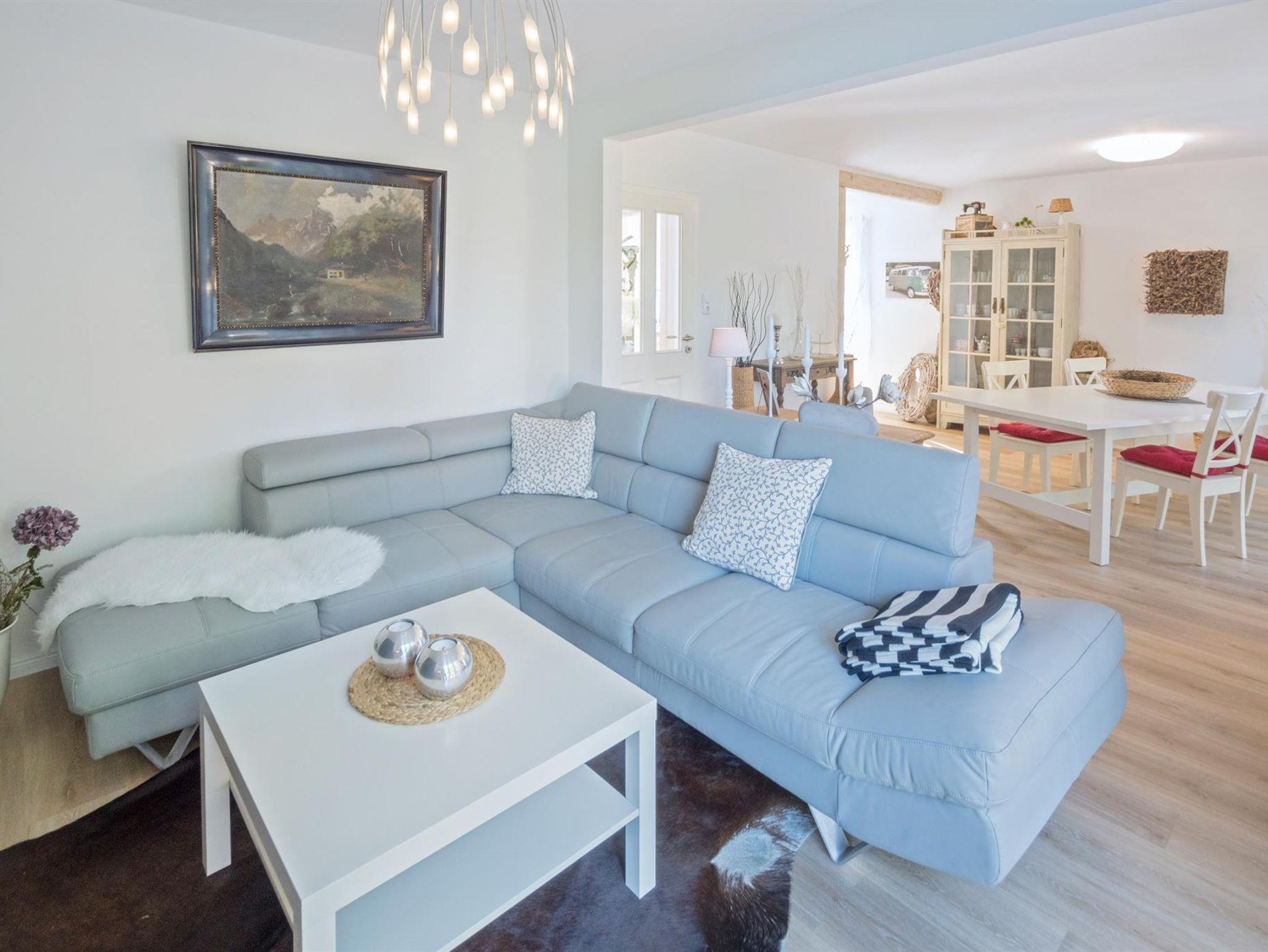 Das 140m² große Ferienhaus Polly ist mit viel Liebe zum Detail eingerichtet. Im Erdgeschoss kommen Sie durch einen kleinen Flur in die große, offene Küche mit hellem Ess- und Wohnbereich sowie in ein komplett ausgestattetes Badezimmer.
