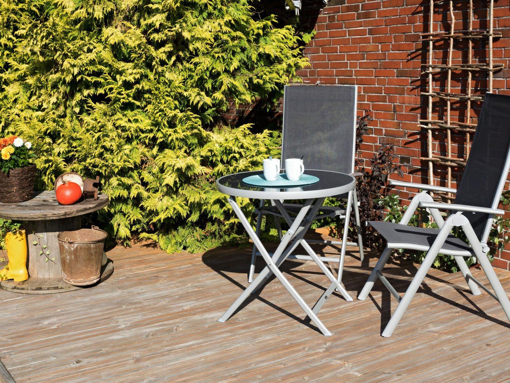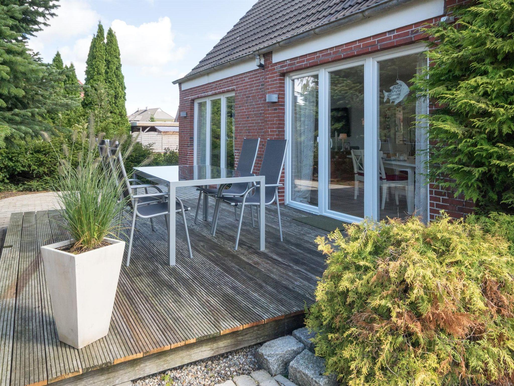 Der große Garten mit zwei Holzterrassen lädt zum Entspannen und Verweilen ein. Die Terrassen sind vom Wohnzimmer bzw. der Küche zu erreichen. Des Weiteren finden Sie dort einen kleinen Grillplatz. Eine große Rasenfläche steht ebenfalls zur freien Verfügung.