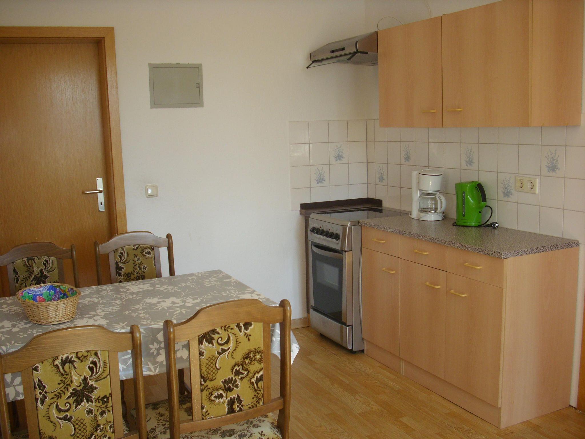 Die Ferienwohnung verfügt auf einer Wohnfläche von 80 m² über zwei separate Schlafräume und einen Wohnbereich. Es stehen zwei separate Schlafräume 1x mit Doppelbett und Einzelbett und 1x mit drei Einzelbetten zur Verfügung. Der Wohnraum verfügt über eine gemütliche Sitzecke und Sat-TV. Die separate Wohnküche ist mit einer Küchenzeile und einem Essplatz für 6 Personen eingerichtet. Das Badezimmer verfügt über Dusche, Badewanne und WC.