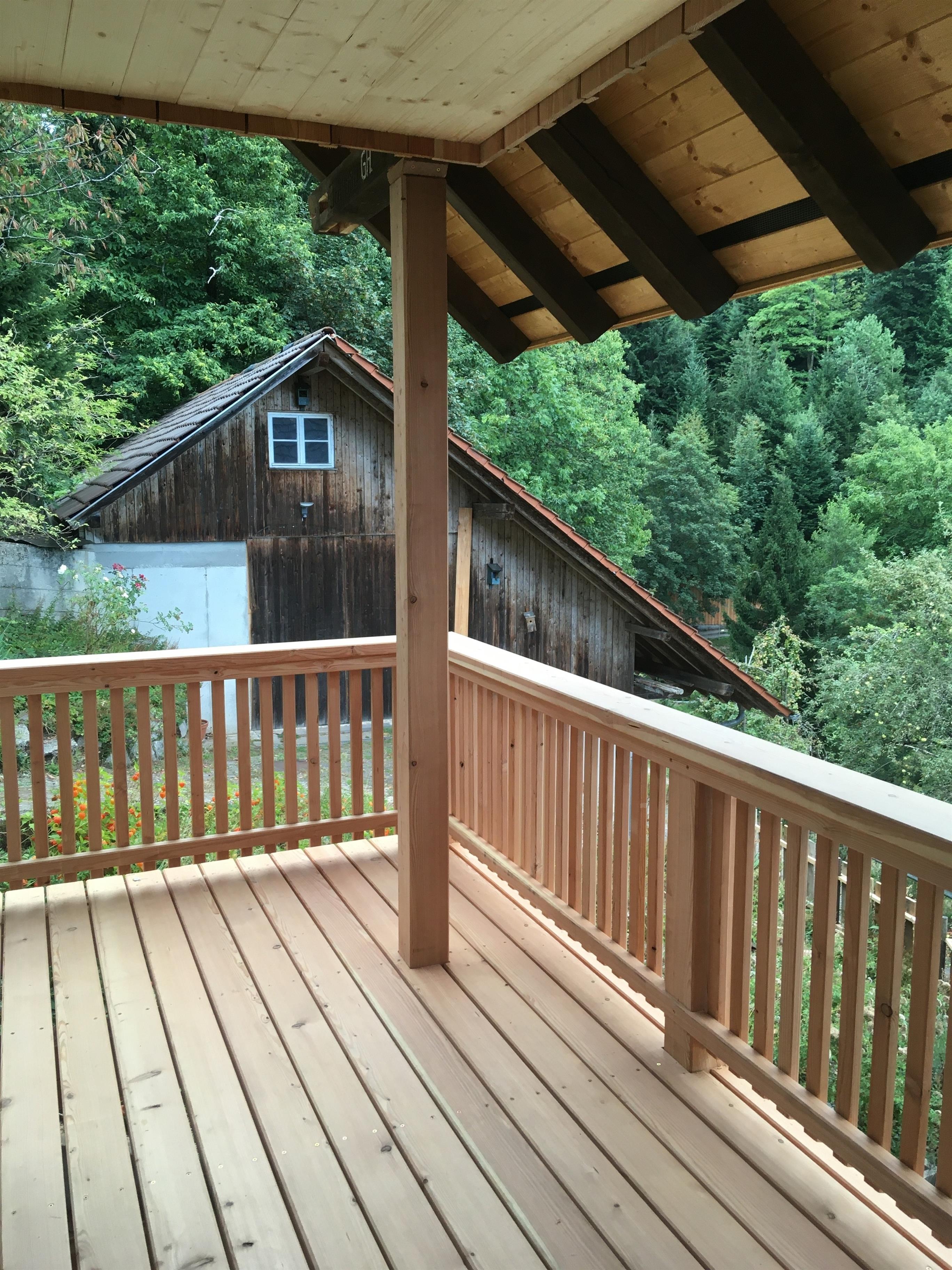 Der Balkon, wie auch die gemütliche Terrasse bieten einen schönen Ausblick ins Tal, wo man die Seele baumeln lassen kann. Auch in den Wintermonaten können Balkon und Terrasse mit unseren Regie-Stühlen anstatt der Loung genutzt werden.