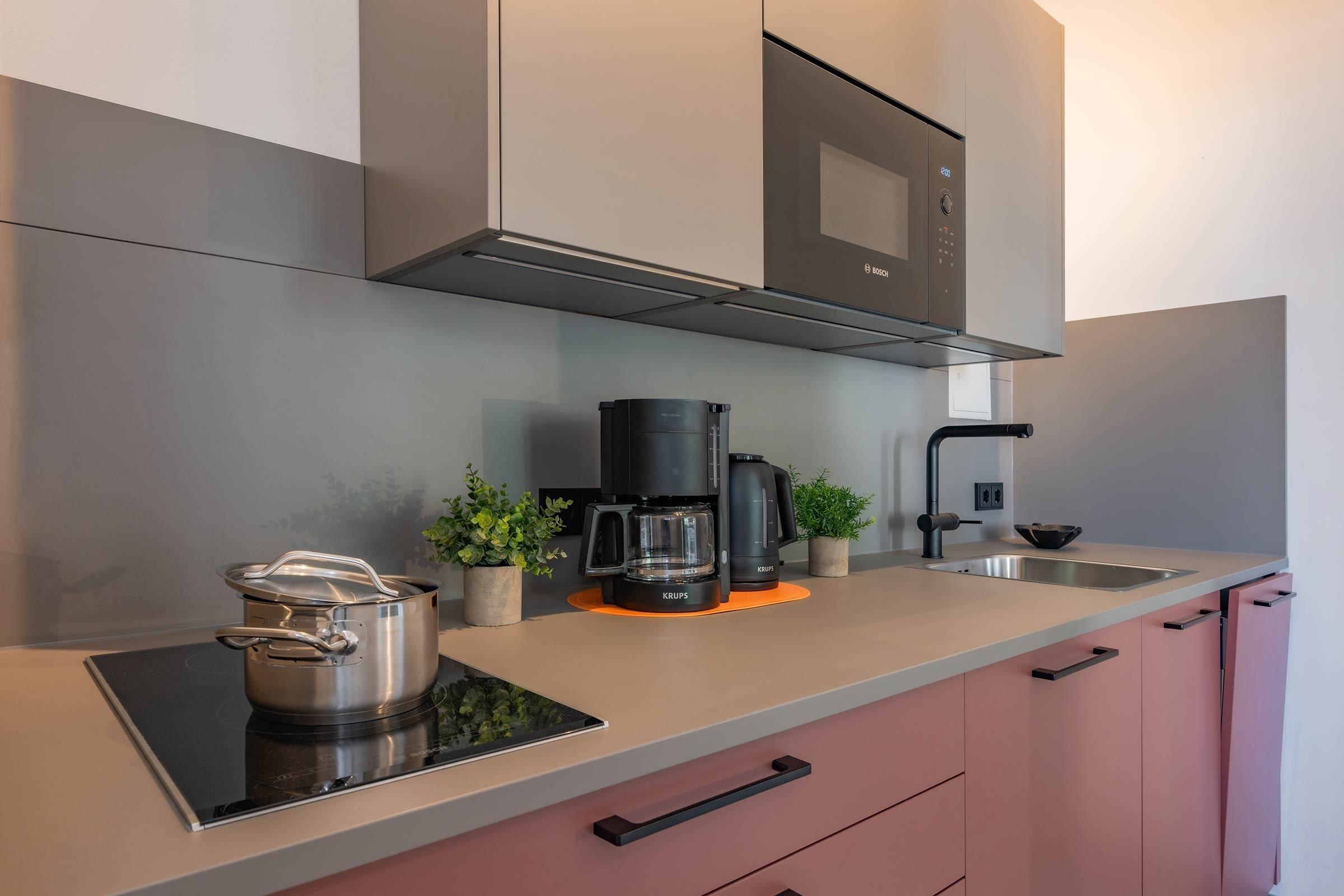 Die Ausstattung des "Strandkorb" lässt keine Wünsche offen. Eine voll ausgestattete Küchenzeile mit modernen Geräten, einschließlich Kühlschrank, Kaffeemaschine und Herdplatte, ermöglicht die Zubereitung von köstlichen Mahlzeiten mit Leichtigkeit. Der Essbereich ist ein Raum der Gemeinschaft und des Genusses, ergänzt durch den Komfort des Sitzbereichs und den modernen Flachbild-TV, der für Unterhaltung sorgt.