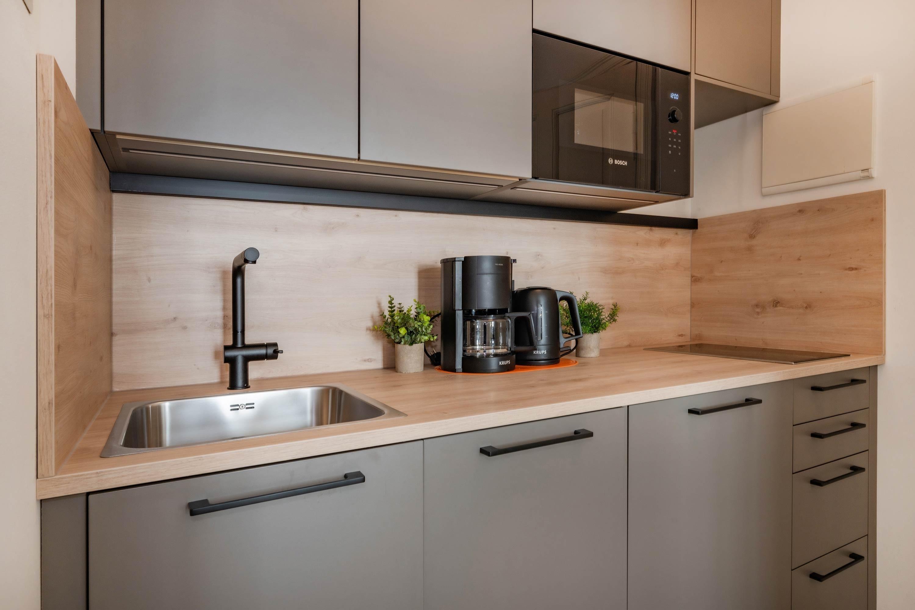Die Innenarchitektur des "Sanddüne" ist eine Hommage an die zeitgemäße Eleganz. Die voll ausgestattete Küchenzeile mit ihren modernen Geräten wie Kühlschrank und Kaffeemaschine dient als Herzstück des Apartments, während der Essbereich ein stilvoller Raum für genussvolle Mahlzeiten und gesellige Momente ist. Inmitten dieses harmonischen Ambientes sorgen ein Flachbild-TV und kostenfreies WLAN für Unterhaltung und Konnektivität.
