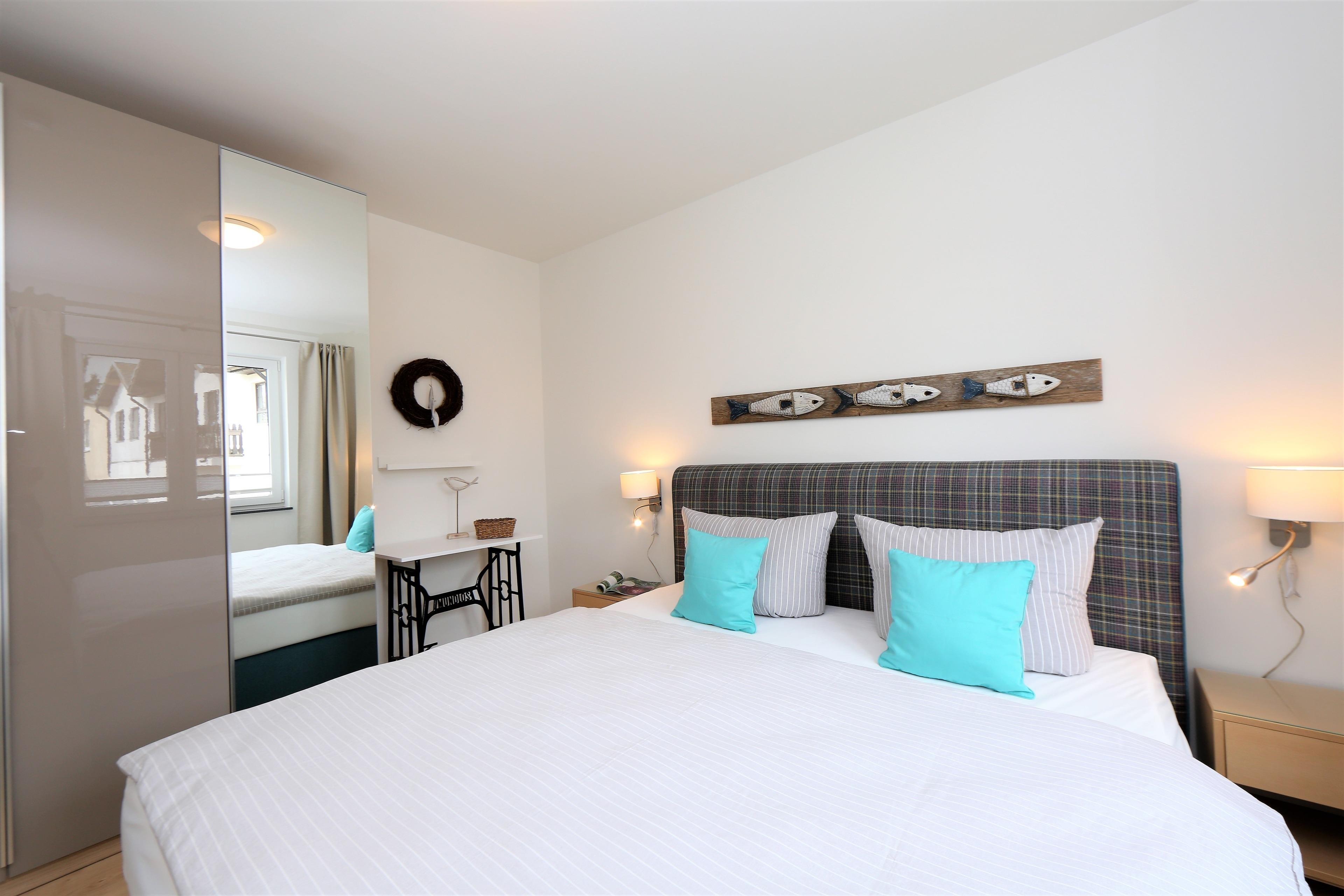 Das liebevoll und mit Geschmack eingerichtete 57 qm große Zwei-Zimmer-Appartement befindet sich in der 1.Etage der 2016 errichteten Anlage "Ahlbeck Suiten" , ca. 250 Meter vom Strand entfernt. Im modernen Wohnzimmer laden eine gemütliche Couch (mit Schlaffunktion) und Sessel mit Couchtisch zum Entspannen ein. Auf der gegenüberliegenden Flachstrecke sind die LED-TV, Radio/CD und Blu ray Player platziert. In den Wohnraum ist die Vollküche mit Backofen/Mikrowelle, Ceranfeld, Kühlschrank, Geschirrspüler, ... integriert. Direkt vom Wohnzimmer aus gelangt man zum möblierten, nach Süden ausgerichteten Balkon mit Blick in einen Garten. Im Schlafzimmer steht ein Boxspringbett (180x200) und ein geräumiger Schrank zur Verfügung. Das Badezimmer ist mit großem Waschtisch, einer Dusche und WC ausgestattet, ein Fenster sorgt für Helligkeit.