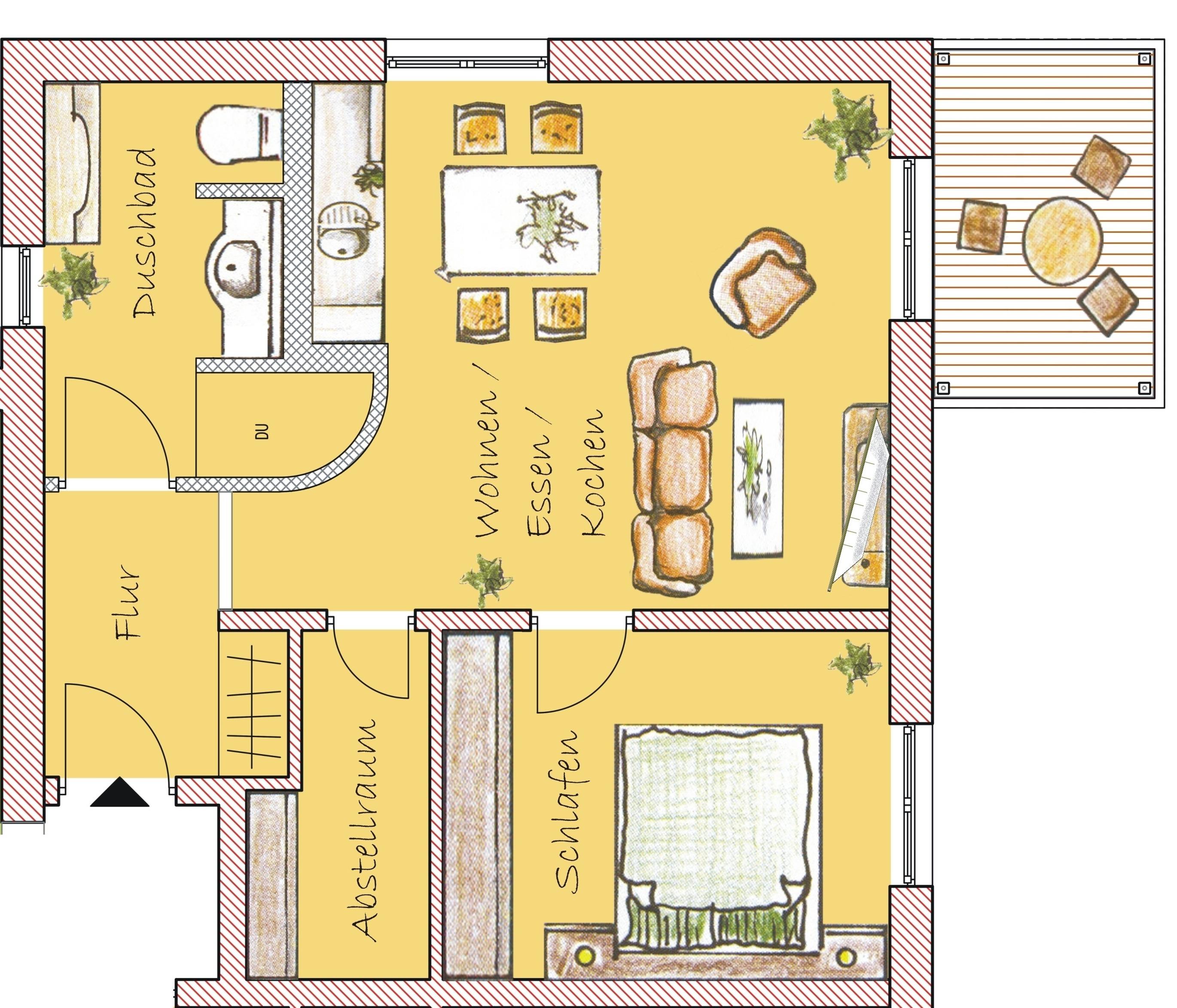 Dem Appartement ist ein Pkw-Stellplatz zugeordnet, der sich auf dem Grundstück befindet. Fahrräder können im ebenfalls auf dem Grundstück vorhandenen Fahrradschuppen abgestellt werden.
