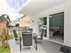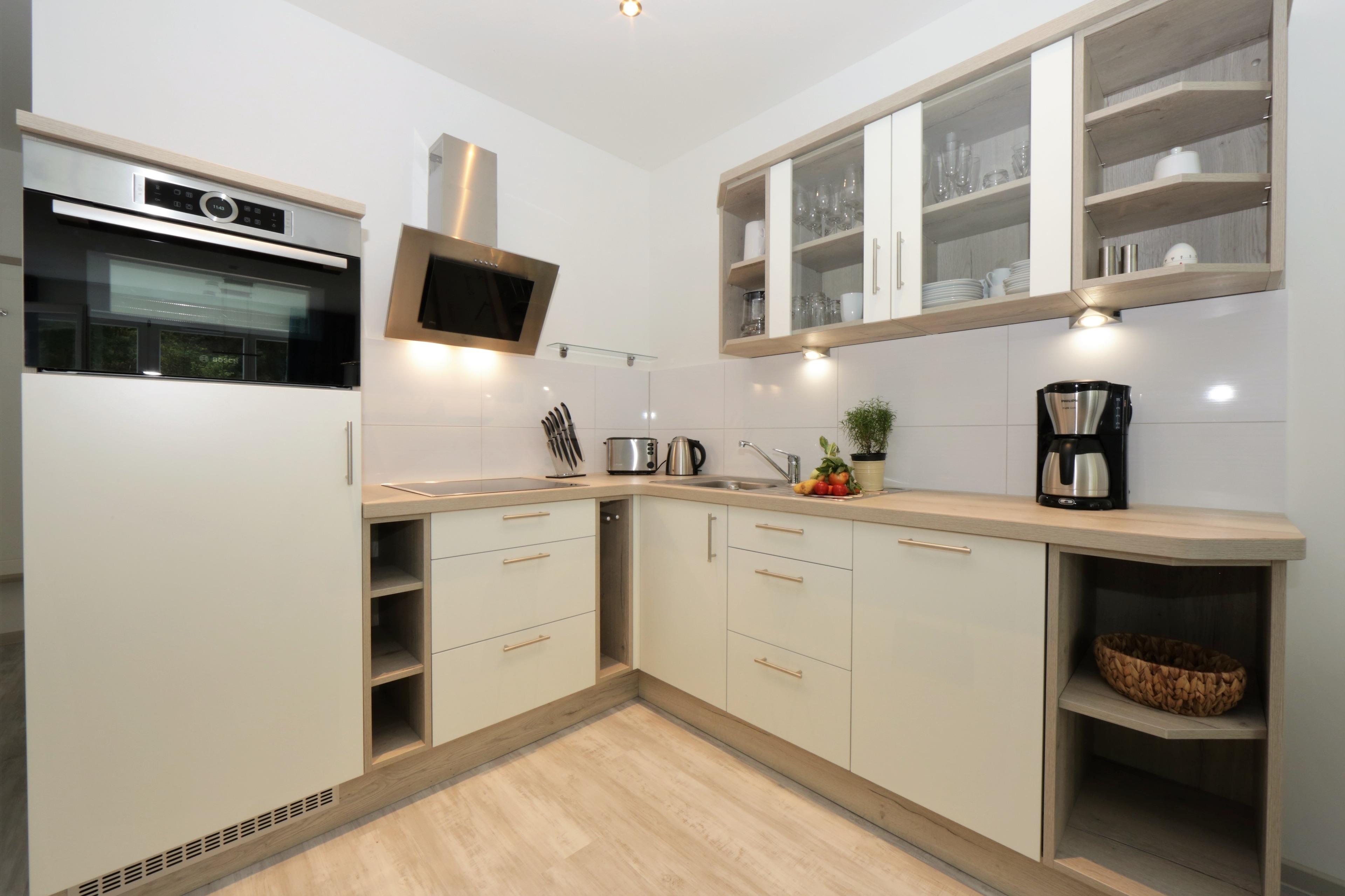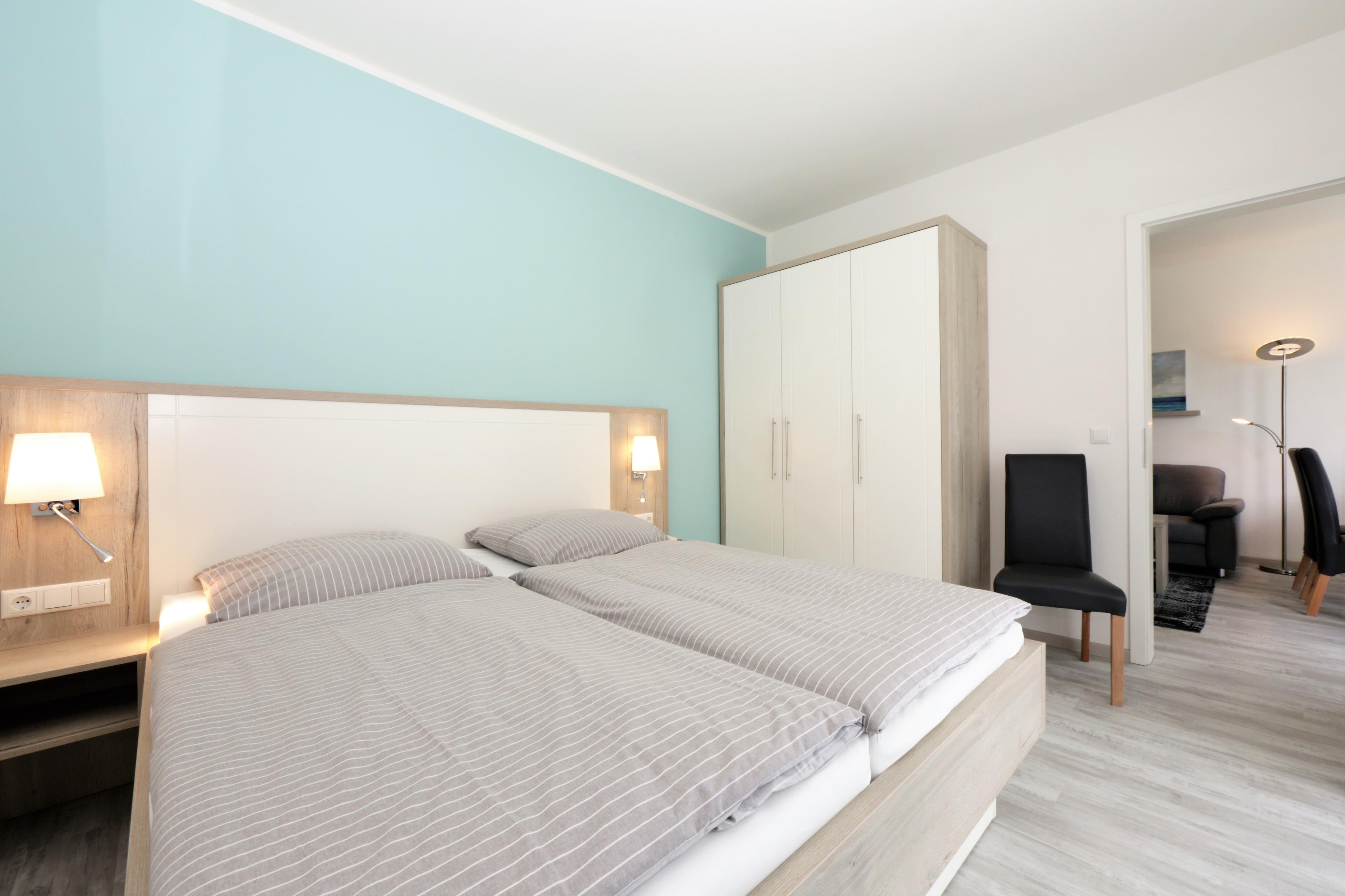 Dieses hochwertige, moderne 3-Zimmer Appartement ist 61 qm groß und befindet sich im Erdgeschoss der 2018 neu erbauten Strandresidenz. Die Wohnung mit 2 Schlafzimmern bietet 4 Personen reichlich Komfort im Urlaub. Im Wohnbereich erwartet Sie eine bequeme Polstergarnitur mit Couchtisch und Flat TV sowie ein Esstisch für gemeinsame Mahlzeiten. Die Küche mit Cerankochfeld, Backofen, Mikrowelle, Geschirrspülmaschine, Kühlschrank etc. ist ebenfalls offen im Wohnraum integriert. Über den Wohnbereich sowie eines der Schlafzimmer erreichen Sie die südlich ausgerichtete überdachte Terrasse. Hier ist Sonne garantiert. Die Schlafzimmer verfügen jeweils über ein komfortables Doppelbett mit getrennten Matratzen (90 x 200) und einen Kleiderschrank. Eines der Schlafzimmer ist mit einem zusätzlichen TV ausgestattet. Das großzügige moderne Badezimmer mit Fenster ist mit einer bodengleichen Dusche mit Echtglasabtrennung und Waschtisch/WC ausgestattet. Ein Pkw-Stellplatz, der der Wohnung zugeordnet ist, steht den Gästen vor dem Haus zur Verfügung.