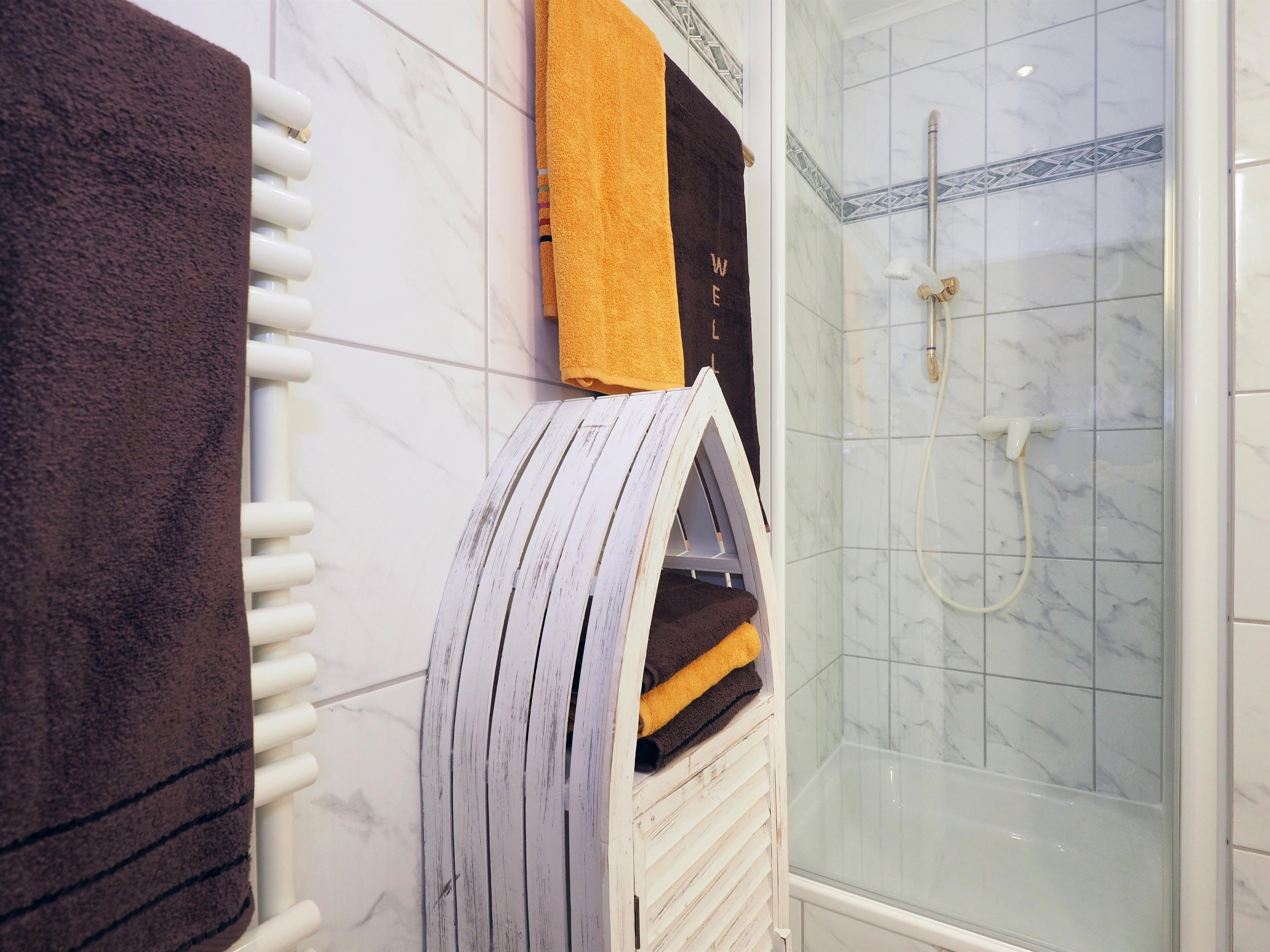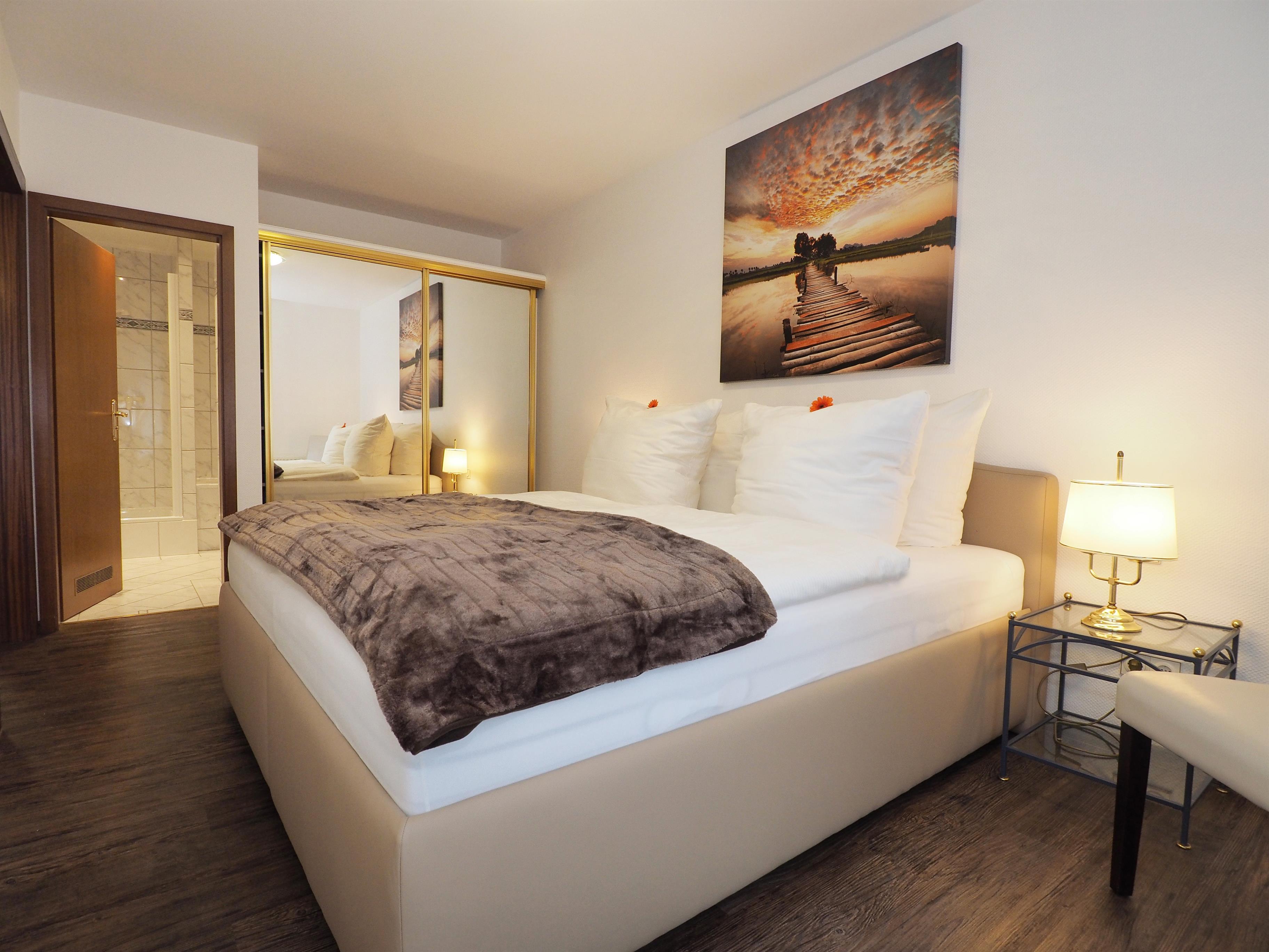 Im Schlafzimmer erwartet Sie ein Doppelbett mit einer Kingsize-Boxspringmatratze (B180xL200xH24), und ein zusätzlicher Fernseher sorgt für Unterhaltung. Das gut ausgestattete Badezimmer bietet eine Badewanne, eine Echtglasdusche, einen Waschtisch und ein WC. Ein Gäste-WC steht ebenfalls zur Verfügung.