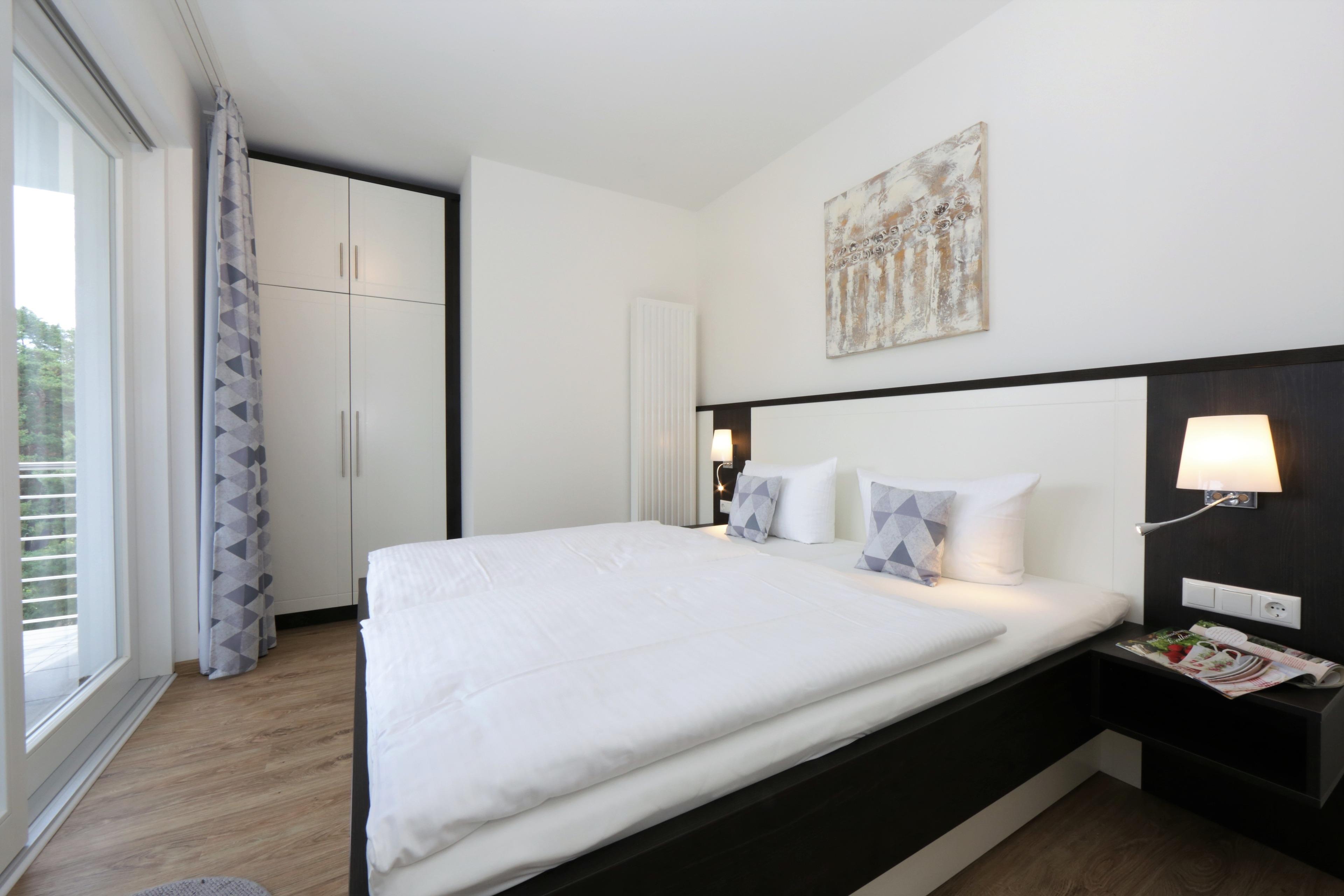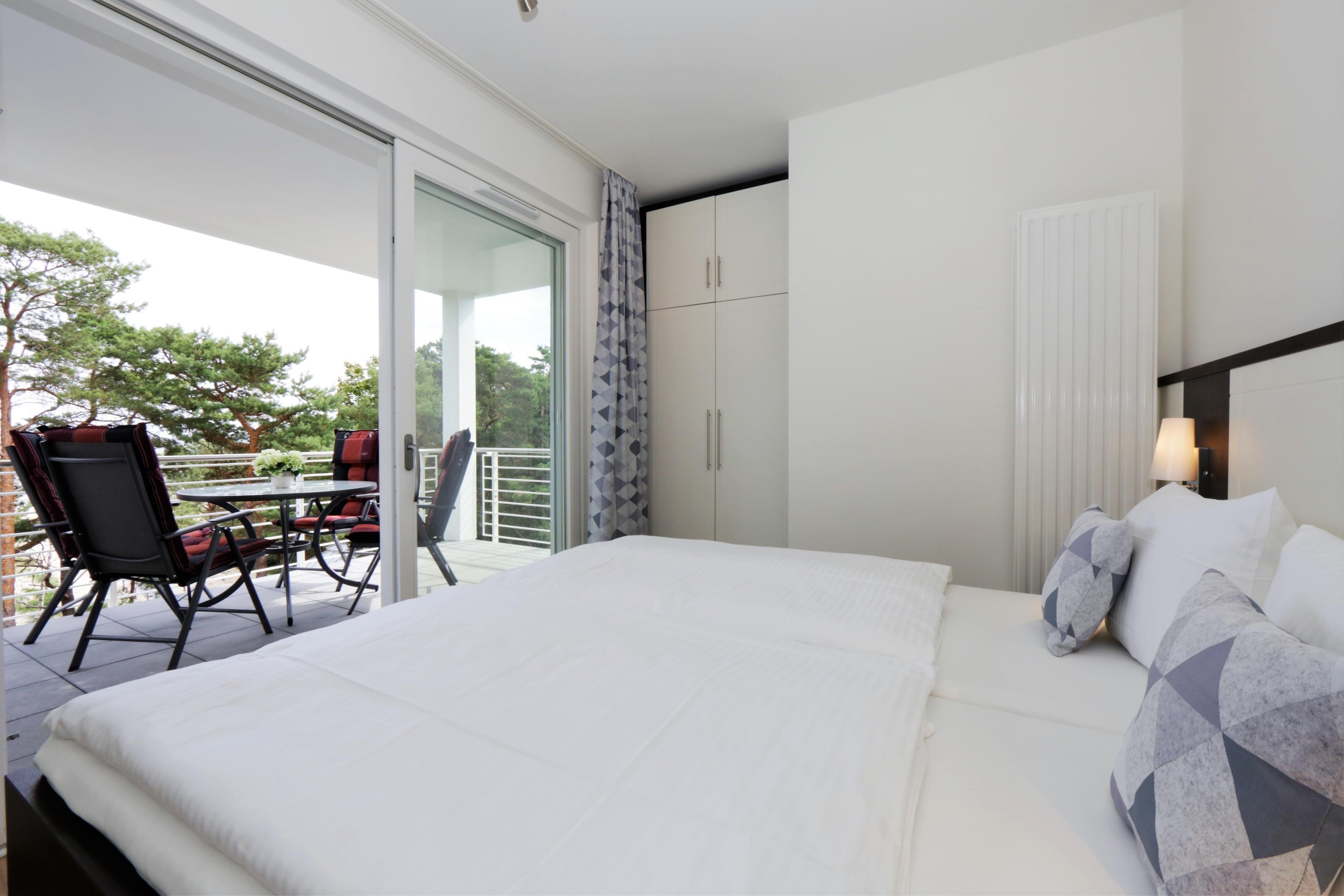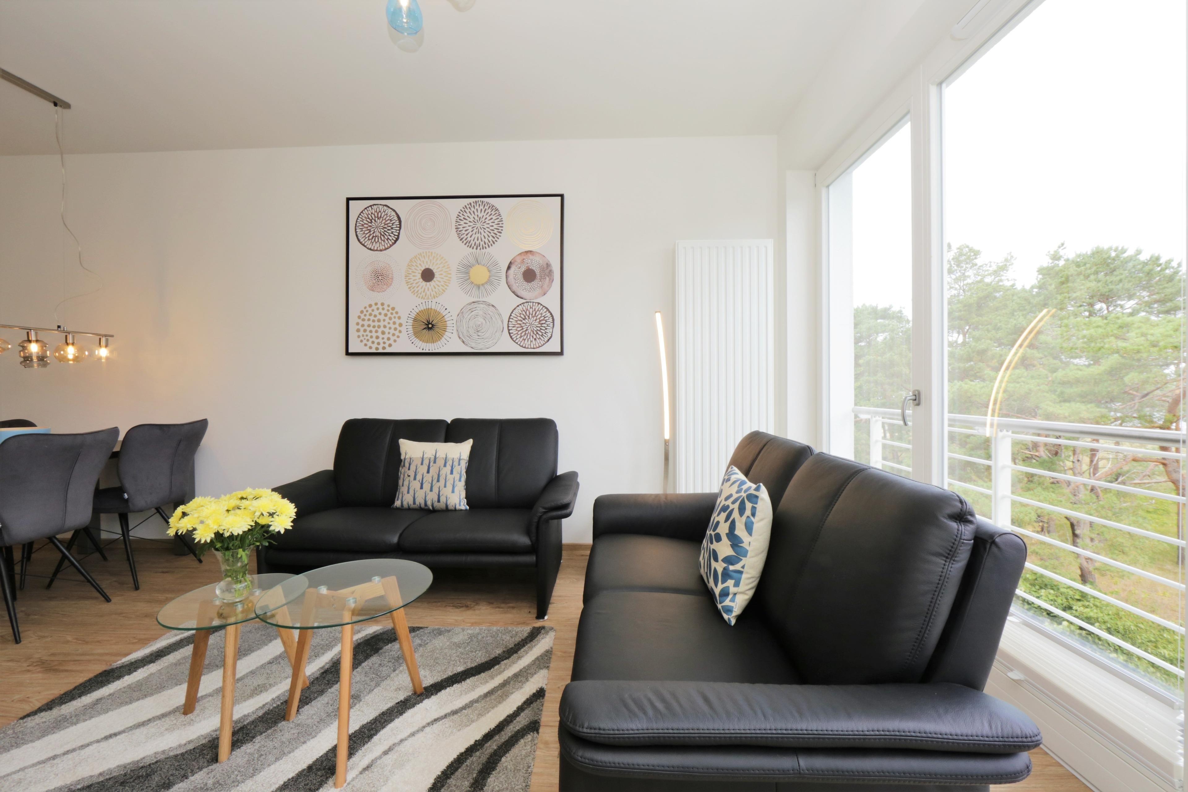 Dieses hochwertige, moderne 3-Zimmer Appartement ist 64 qm groß und befindet sich im 3. Obergeschoss der 2018 neu erbauten Strandresidenz. Die Wohnung mit 2 Schlafzimmern bietet 4 Personen reichlich Komfort im Urlaub. Im Wohnbereich erwarten Sie eine bequeme Polstergarnitur und Flat TV sowie ein Esstisch für gemeinsame Mahlzeiten. Die Küche mit Cerankochfeld, Backofen, Geschirrspülmaschine, Kühlschrank etc. ist ebenfalls offen im Wohnraum integriert. Über den Wohnbereich sowie eines der Schlafzimmer erreichen Sie den zur Promenade ausgerichteten Balkon mit herrlichem Blick auf die Ostsee und den vor dem Haus befindlichen Strandzugang. Hier haben Sie bereits zum Frühstück alles im Blick. Die Schlafzimmer verfügen jeweils über ein komfortables Doppelbett mit getrennten Matratzen (90 x 200) und einen Kleiderschrank. Eines der Schlafzimmer ist mit einem zusätzlichen TV ausgestattet. Das großzügige moderne Badezimmer mit Fenster ist mit einer bodengleichen Dusche mit Echtglasabtrennung und Waschtisch/WC ausgestattet. Außerdem steht Ihnen ein Gäste-WC zur Verfügung.