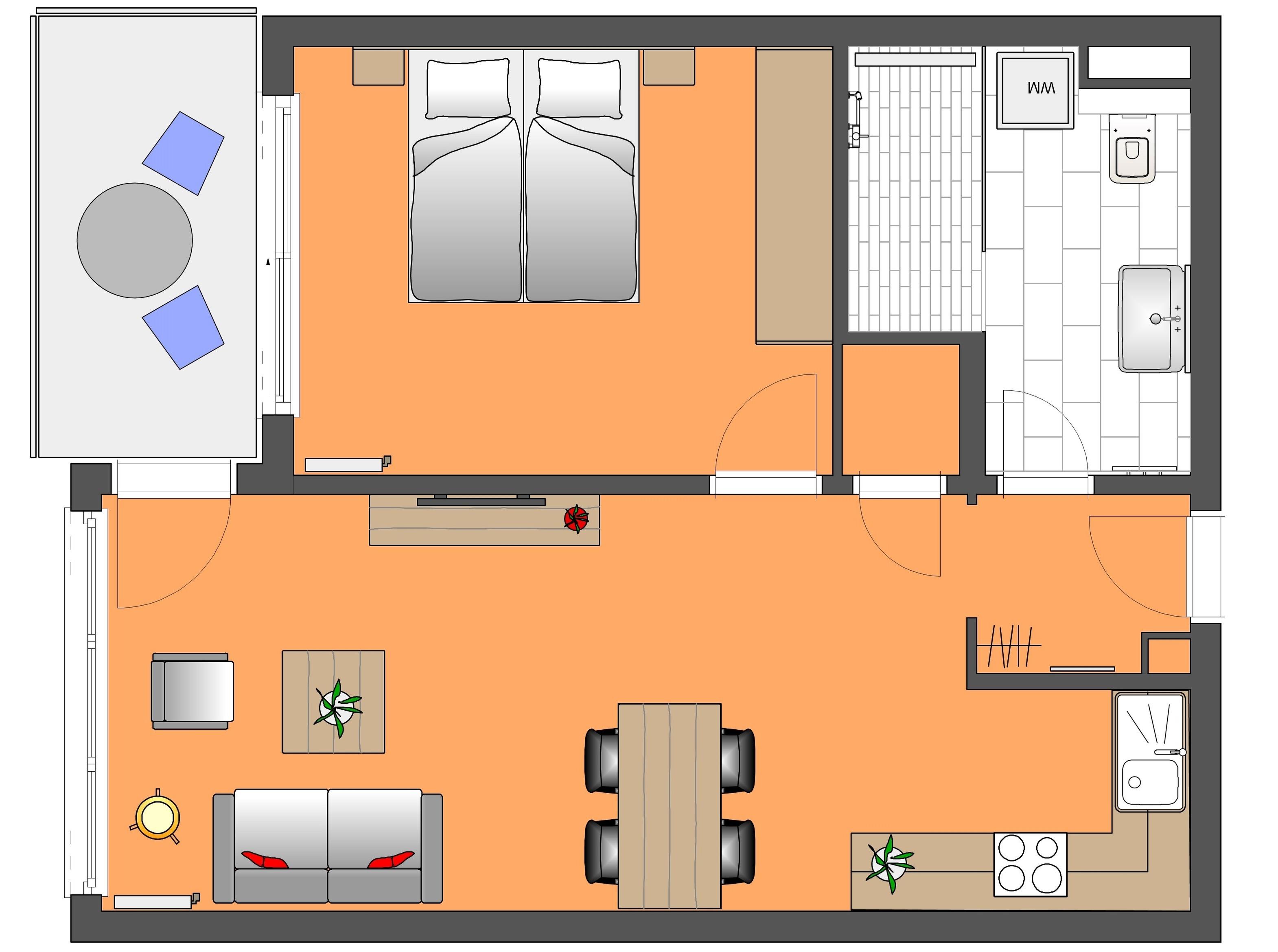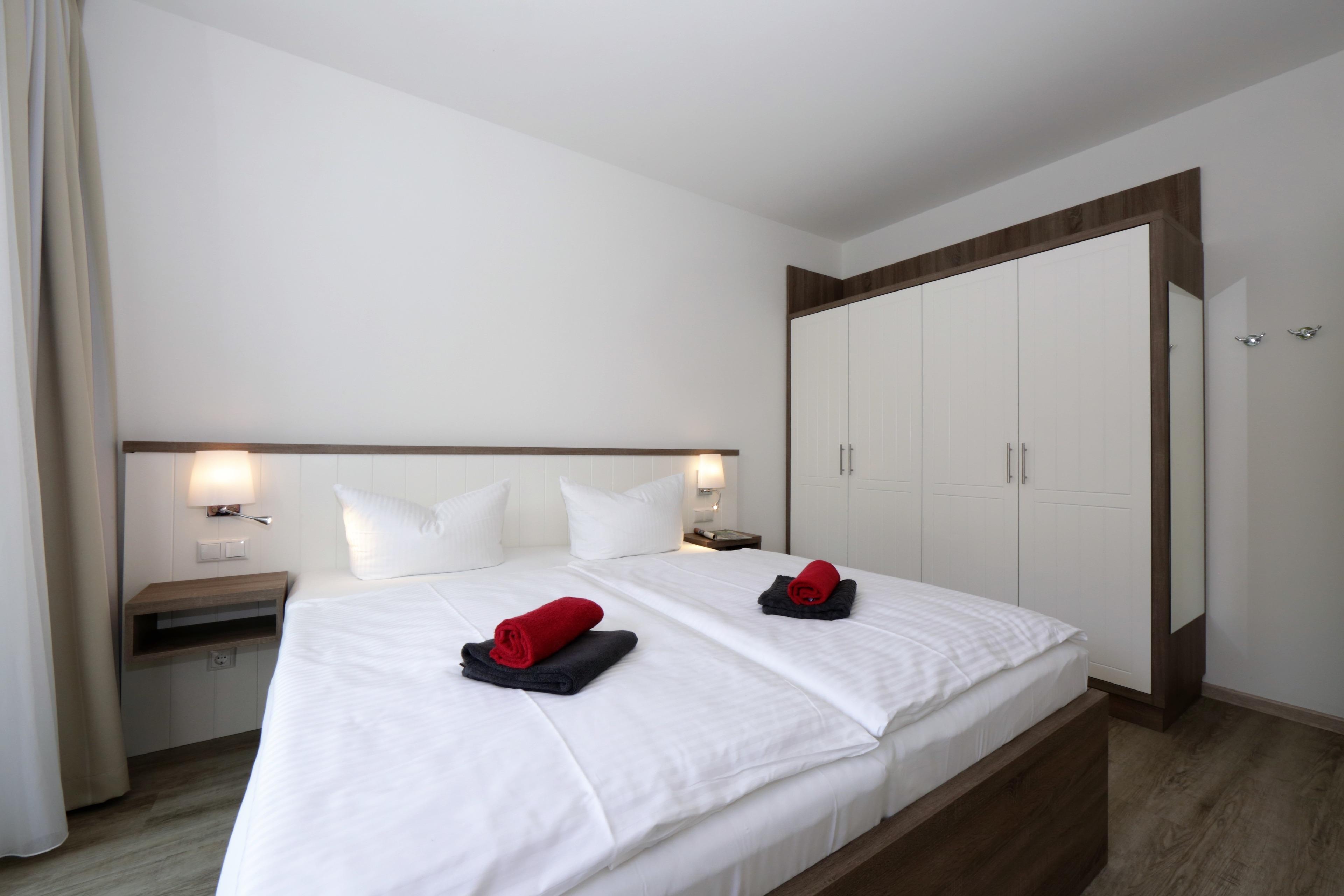 Dieses moderne 2-Zimmer Appartement ist 52 qm groß und befindet sich im 2. Obergeschoss der 2018 neu erbauten Strandresidenz. Die Wohnung ist für 2-4 Personen geeignet. Im Wohnbereich erwartet Sie eine bequeme Polstergarnitur mit Couchtisch und Flat TV sowie ein Esstisch für gemeinsame Mahlzeiten. Die moderne Küche mit Cerankochfeld, Backofen, Mikrowelle, Geschirrspülmaschine, Kühlschrank, Tiefkühlschrank etc. ist ebenfalls offen im Wohnraum integriert. Über den Wohnbereich sowie das Schlafzimmer erreichen Sie den zum Süden ausgerichteten überdachten Balkon, der viele Sonnenstunden verspricht. Das Schlafzimmer verfügt über ein Doppelbett mit getrennten Matratzen (90 x 200), und einen Kleiderschrank. Das großzügige moderne Badezimmer ist mit einer bodengleichen Dusche mit Echtglasabtrennung und Waschtisch/WC ausgestattet.