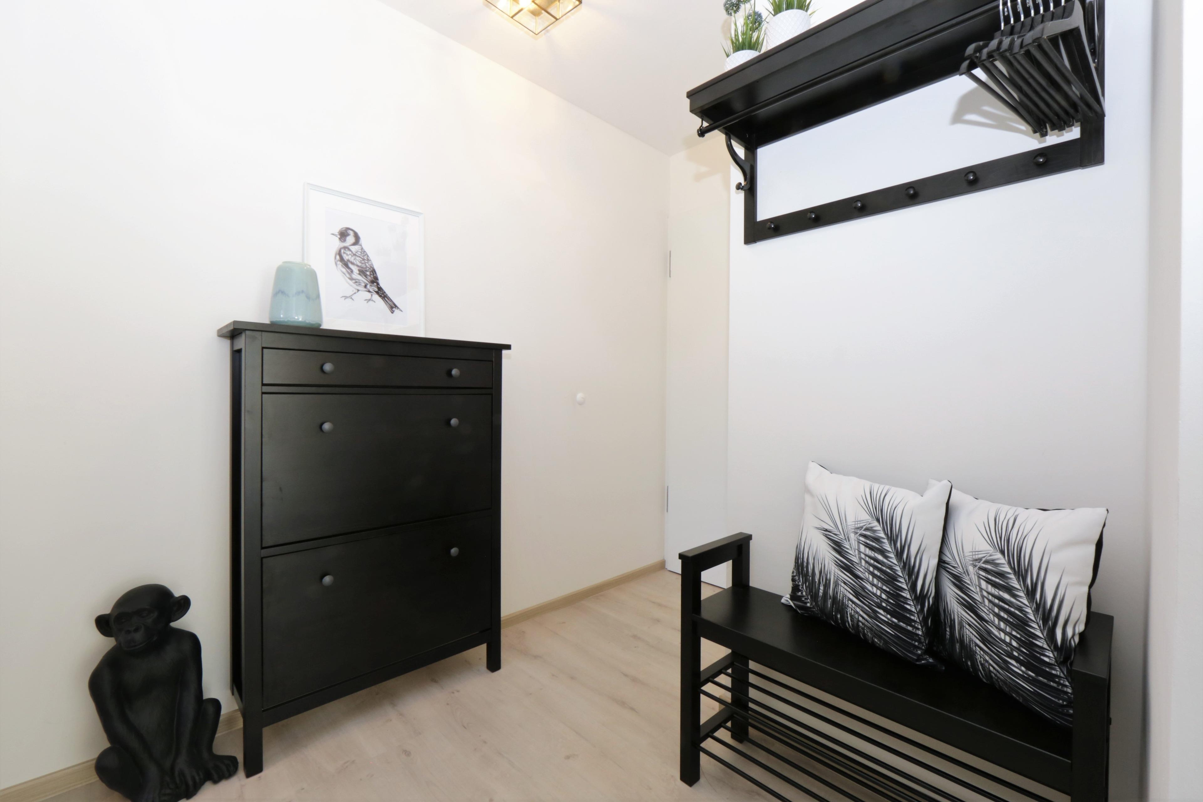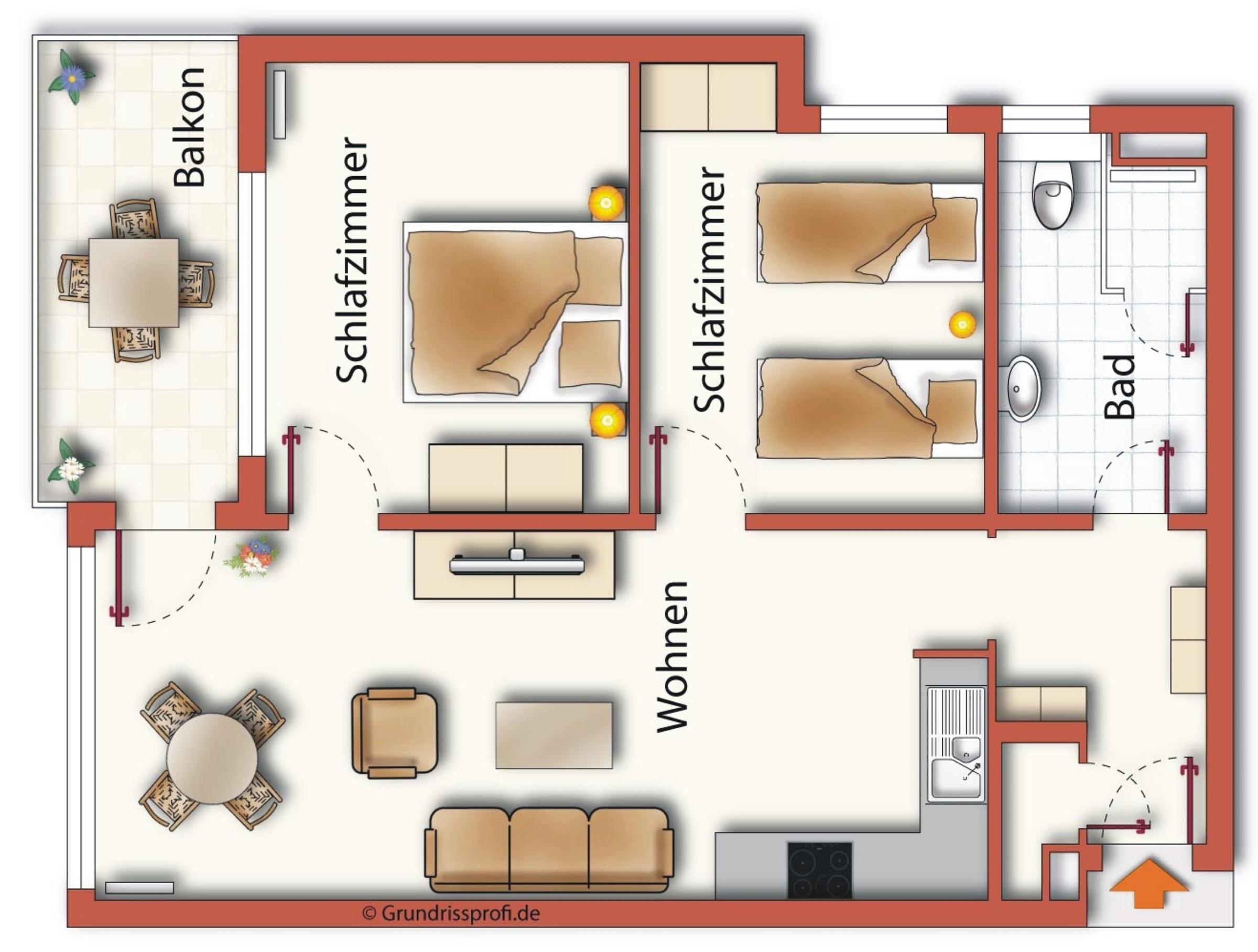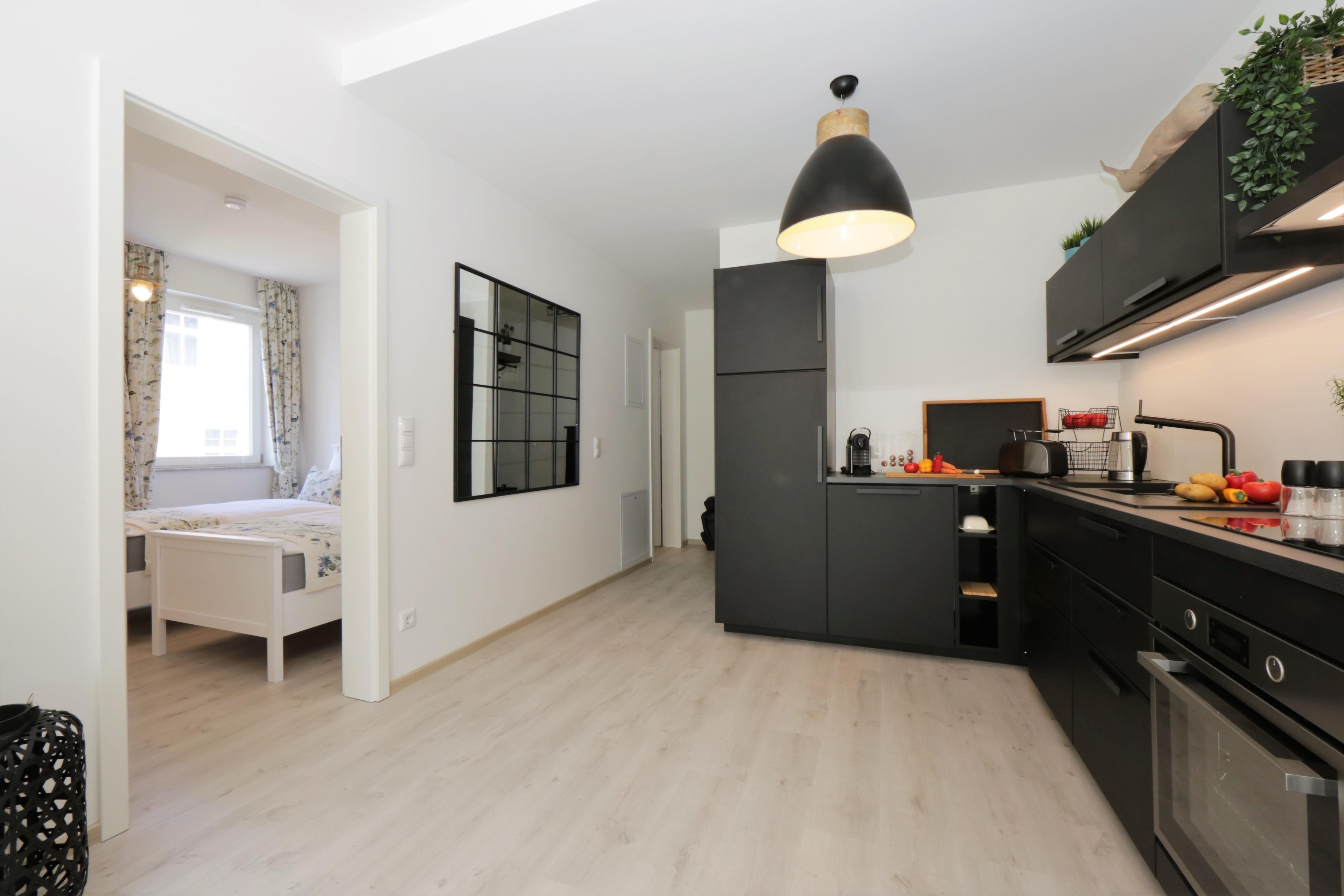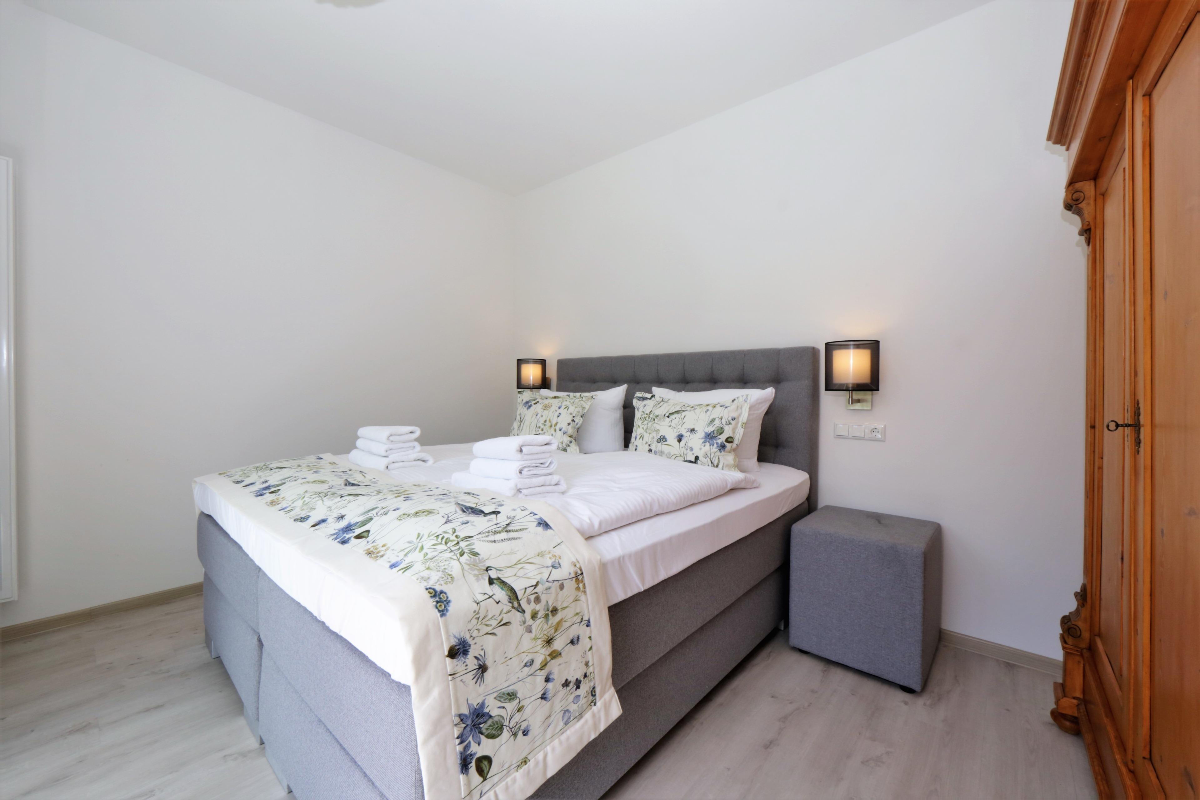 Dieses moderne 3-Zimmer Appartement für 4 Personen ist 62 qm groß und befindet sich im 2. Obergeschoss der 2018 neu erbauten Strandresidenz. Im Wohnbereich erwartet Sie eine bequeme Couch mit Couchtisch und Flat TV. Die gemeinsamen Mahlzeiten können Sie am Essplatz vor dem großen Fenster einnehmen. Die Küche mit Cerankochfeld, Backofen, Geschirrspülmaschine, Kühlschrank, Nespresso-Maschine etc. ist ebenfalls offen im Wohnraum integriert. Über den Wohnbereich sowie eines der Schlafzimmer erreichen Sie den südwestlich ausgerichteten Balkon. Hier können Sie den Urlaubstag mit einem Glas Wein ausklingen lassen. Die Schlafzimmer verfügen über ein komfortables Doppelbett mit getrennten Matratzen (90 x 200) bzw. zwei Einzelbetten (90 x 200) und jeweils einen Kleiderschrank. Das großzügige moderne Badezimmer ist mit einer bodengleichen Dusche mit Echtglasabtrennung und Waschtisch/WC ausgestattet.