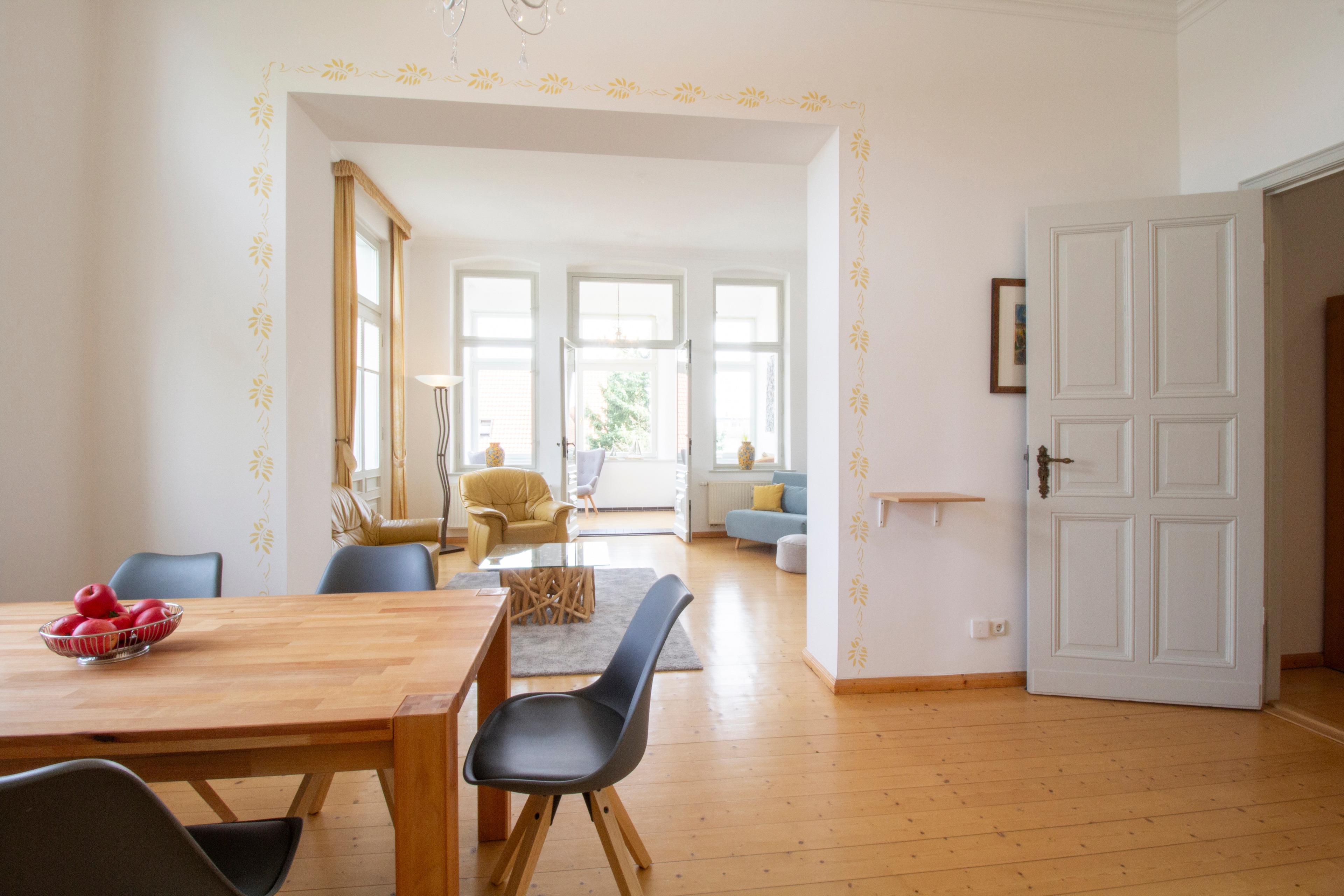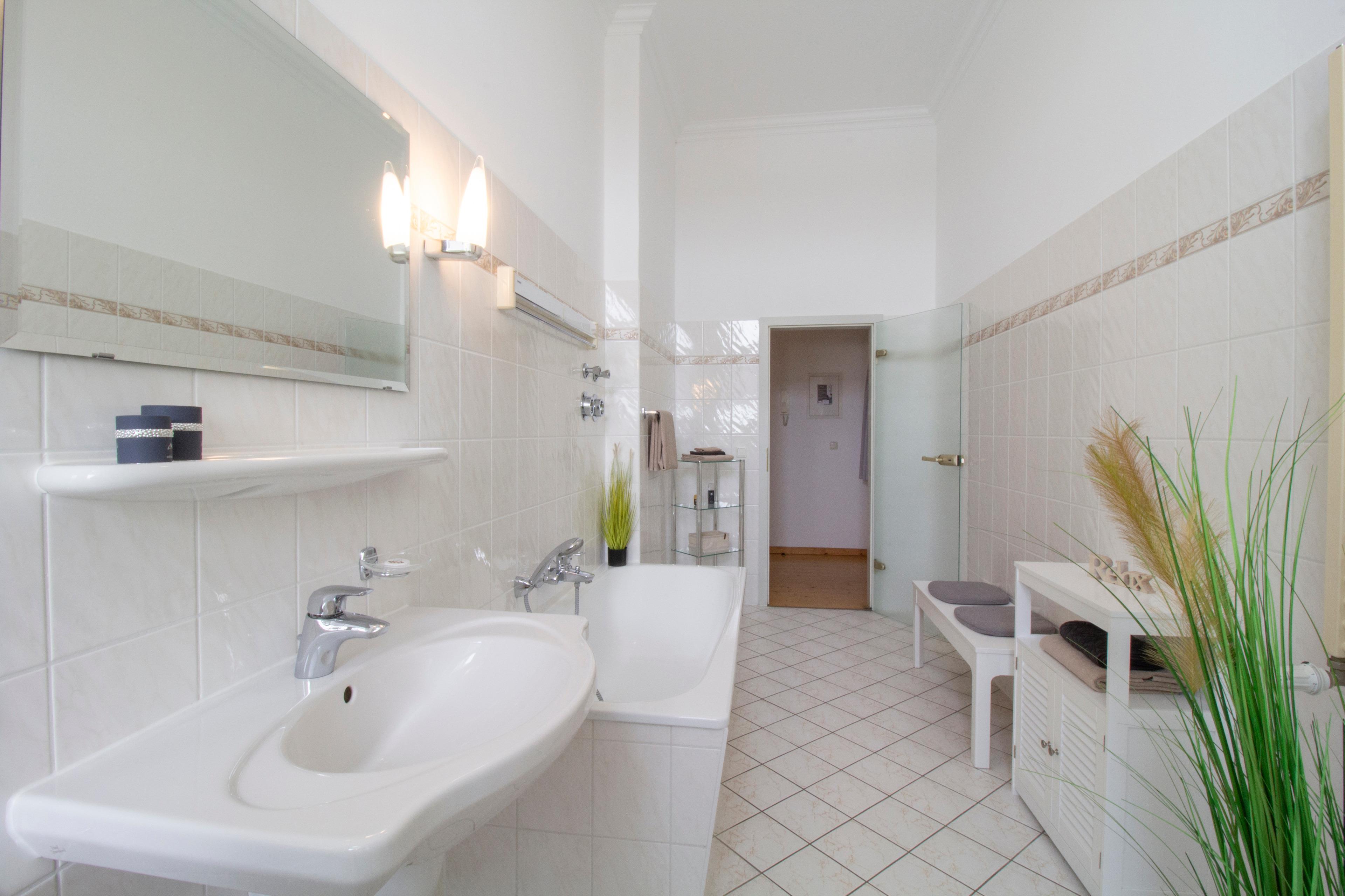 Die lichtdurchflutete 90 qm große 3-Zimmer Wohnung in typischer Bäderstilarchitektur mit hohen Decken liegt im 1. Obergeschoss und bietet bis zu 4 Personen viel Platz für einen entspannten Urlaub.