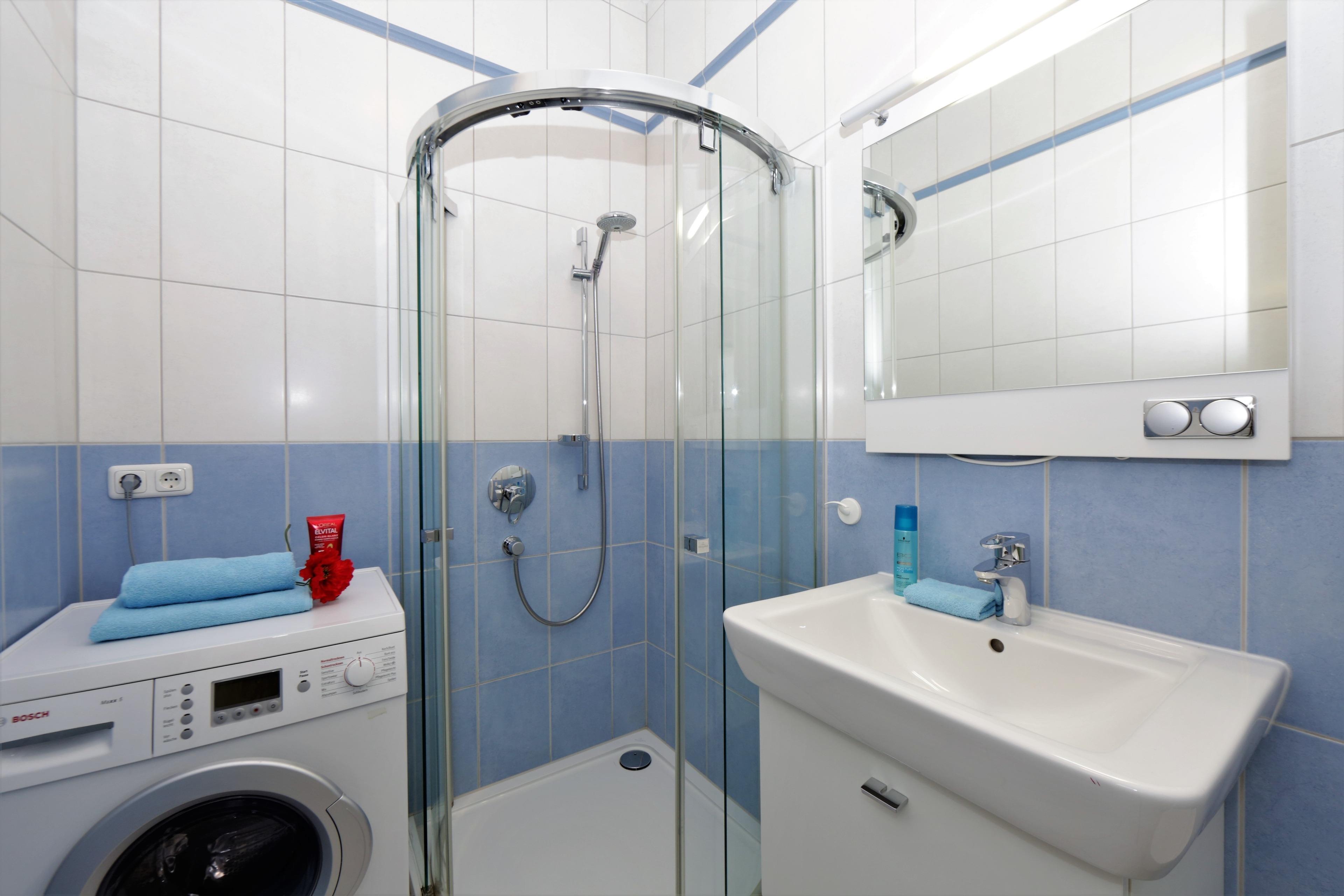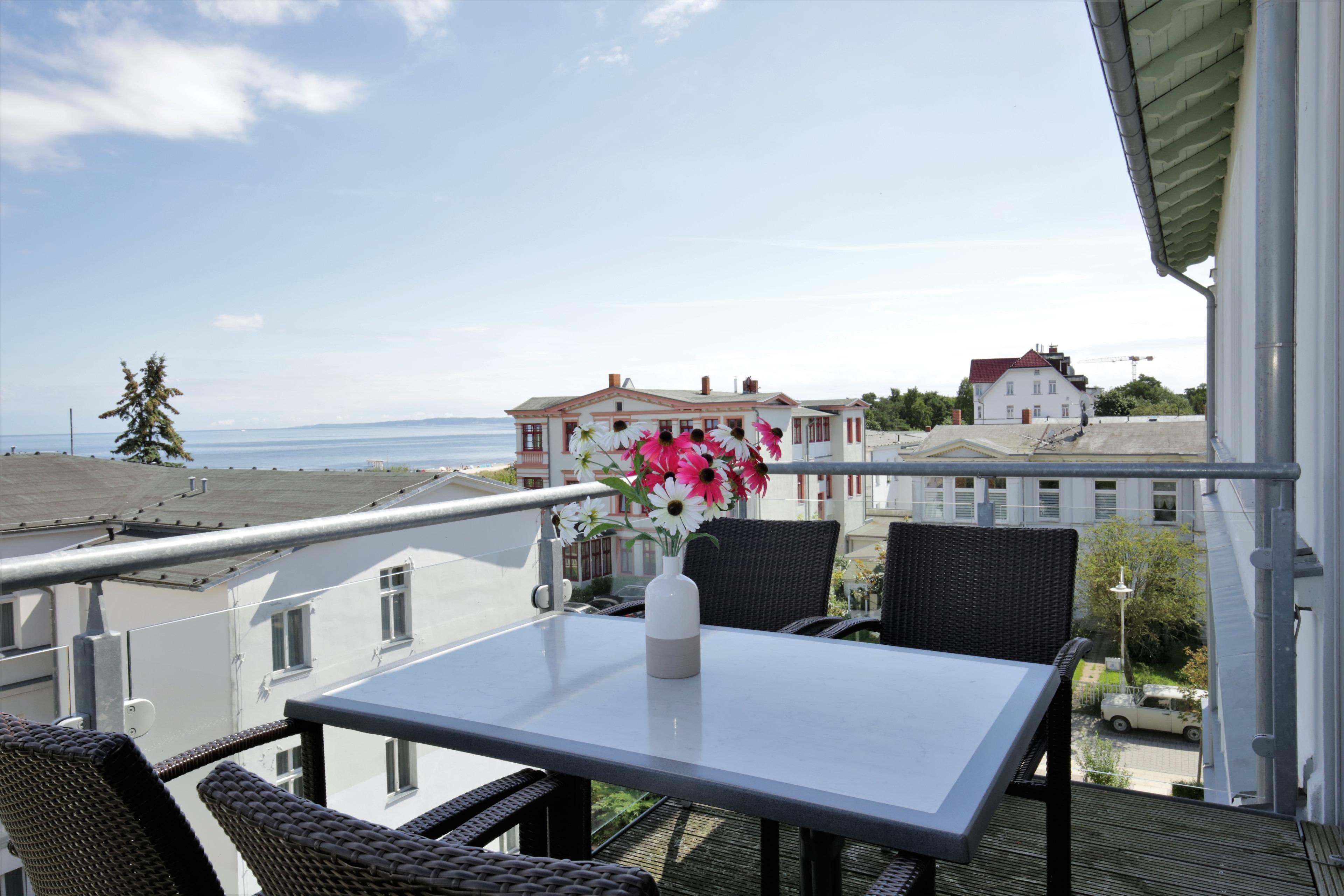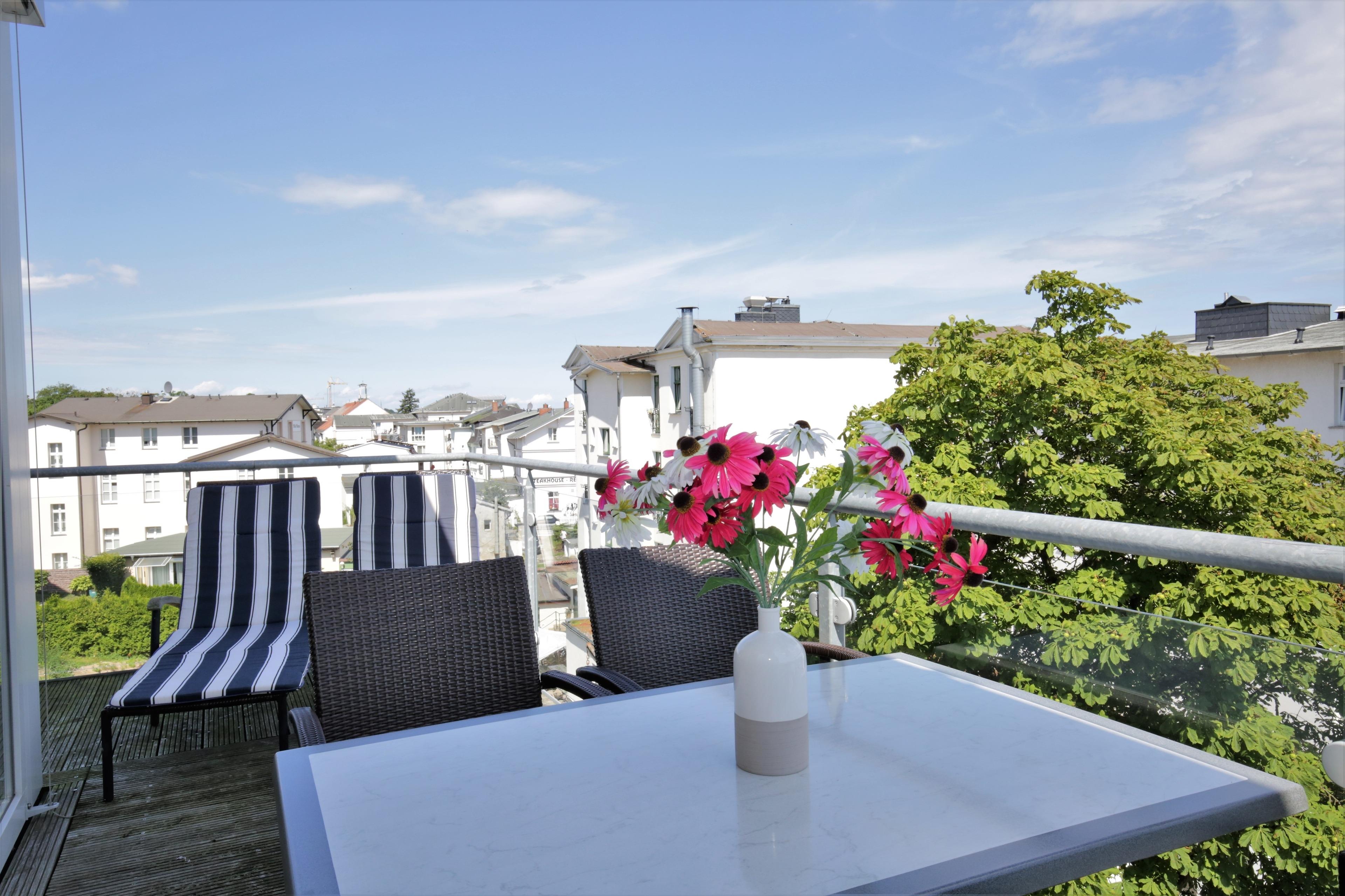 Dieses mit 101 qm sehr großzügige Appartement ist für bis zu 5 Personen geeignet und lässt keine Urlaubswünsche offen. Es verfügt über einen großen Balkon mit herrlichem Blick über die Häuser auf das Meer. Der Wohnbereich ist mit einer gemütlichen großen Polsterecke, TV und Minianlage eingerichtet. Mit Bedacht wurde der Essplatz in der lichtdurchfluteten Loggia platziert, der zu gemeinsamen Mahlzeiten einlädt. Die ebenfalls im Wohnraum offen integrierte Vollküche mit Fenster ist mit Geschirrspüler, Cerankochfeld, Backofen, Mikrowelle etc. ausgestattet. Zwei der drei Schlafzimmer sind jeweils mit einem Doppelbett mit getrennten Matratzen (90 x 200), das dritte Schlafzimmer mit einem Einzelbett (100 x 200) eingerichtet. Ein zusätzlicher TV steht in einem der größeren Schlafzimmer zur Verfügung. Einen Blick auf die Ostsee können Sie aus zwei Schlafzimmern genießen. Darüber hinaus stehen den Gästen zwei aufwendig geflieste Bäder mit Dusche oder Badewanne sowie Waschtisch/WC zur Verfügung. Für Ihre Pkw´s stehen Ihnen in der hauseigenen Tiefgarage zwei feste Stellplätze zur Verfügung. Besonders praktisch: die sind mit einer E-Ladestation ausgestattet, sodass Ihre beide Fahrzeuge nacheinander aufgeladen werden können. Die Abrechnung erfolgt unkompliziert per Ladekarte eines großen Stromanbieters oder alternativ mit Kreditkarte.