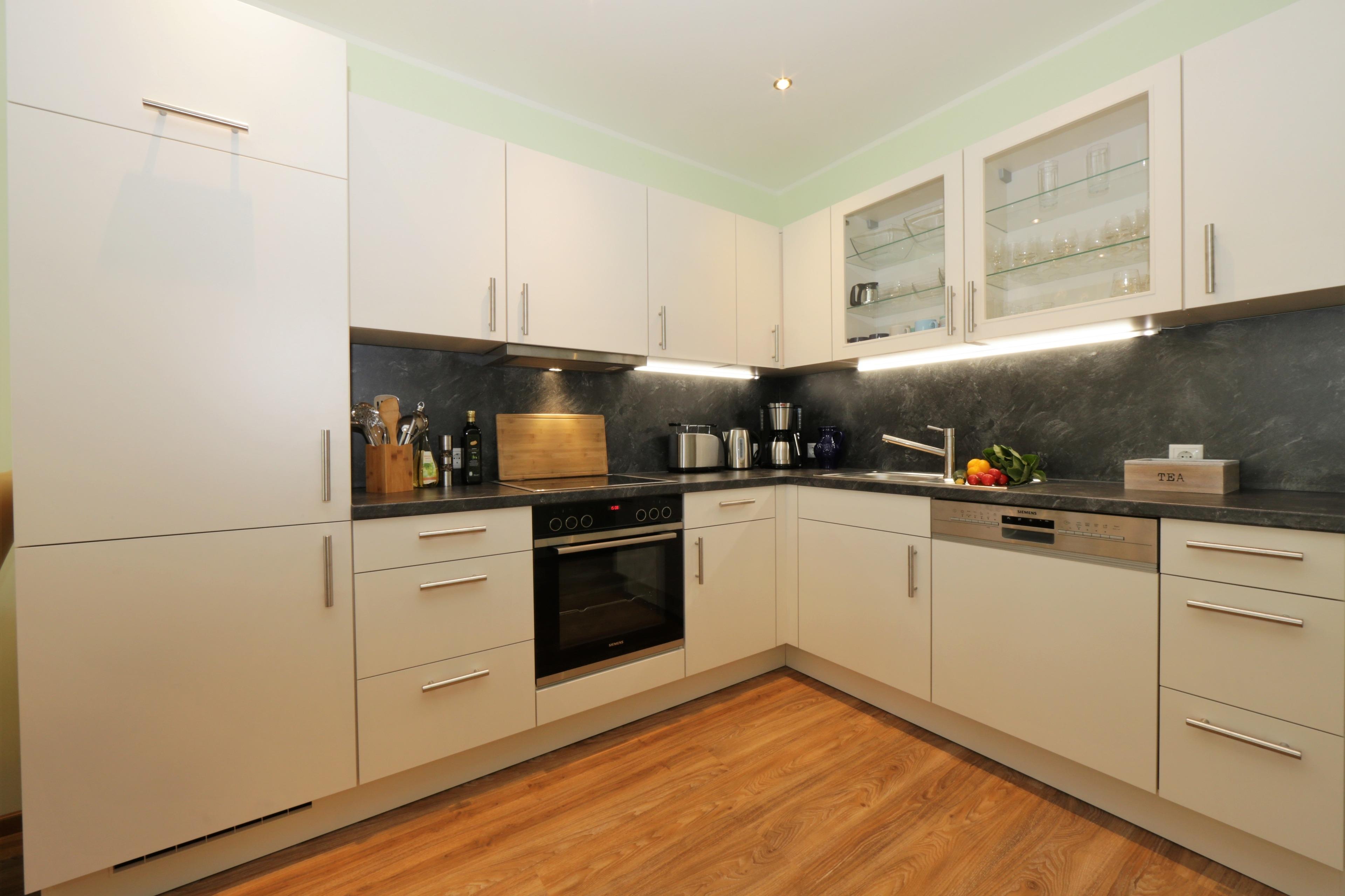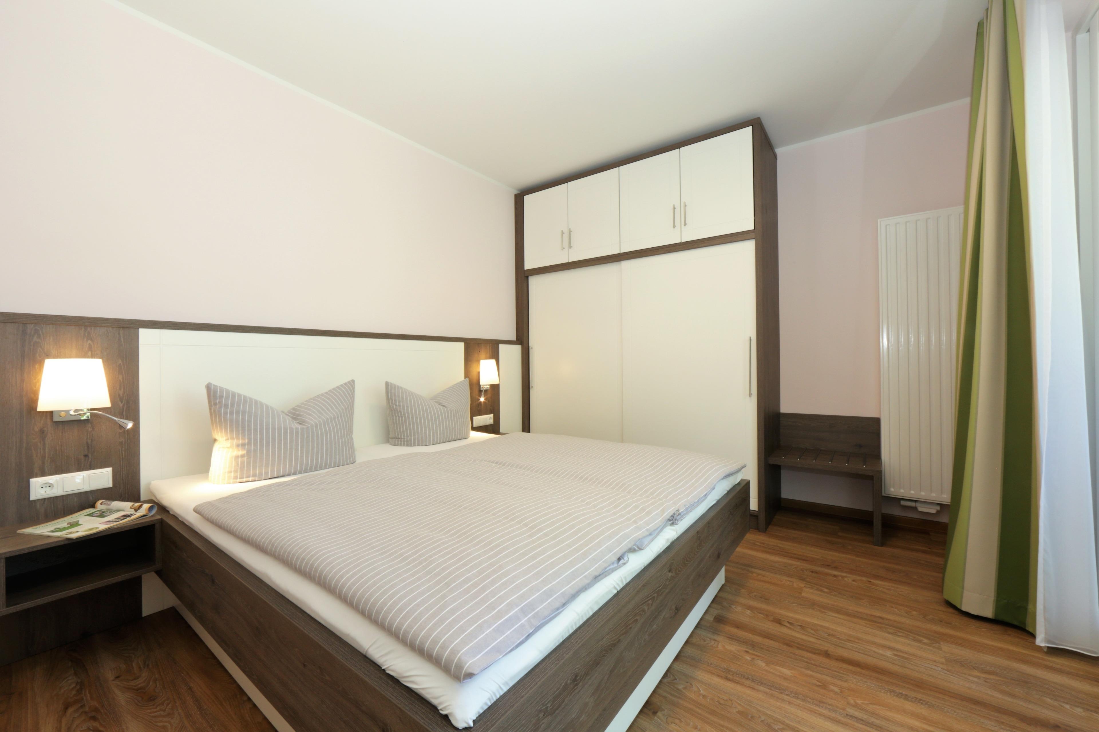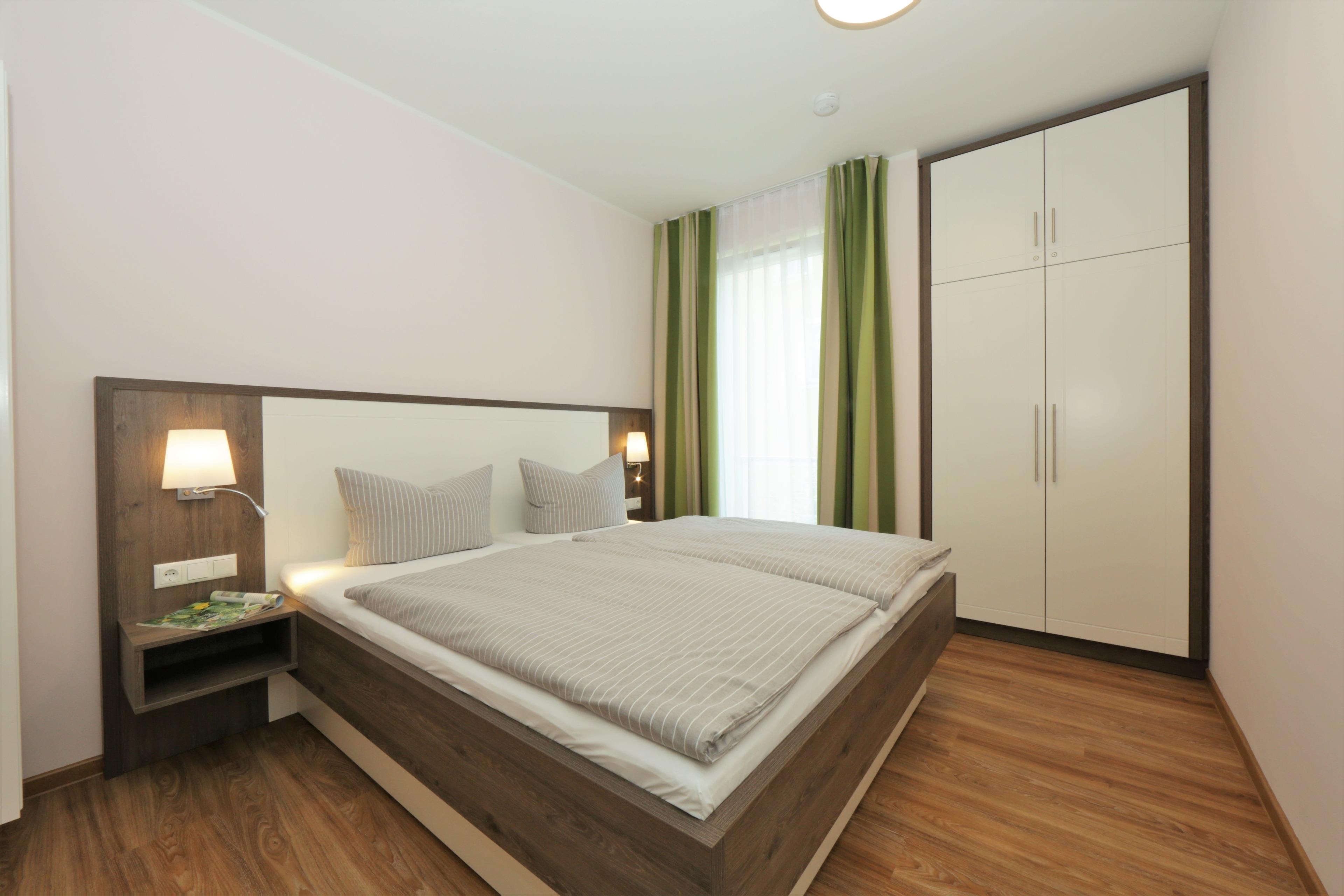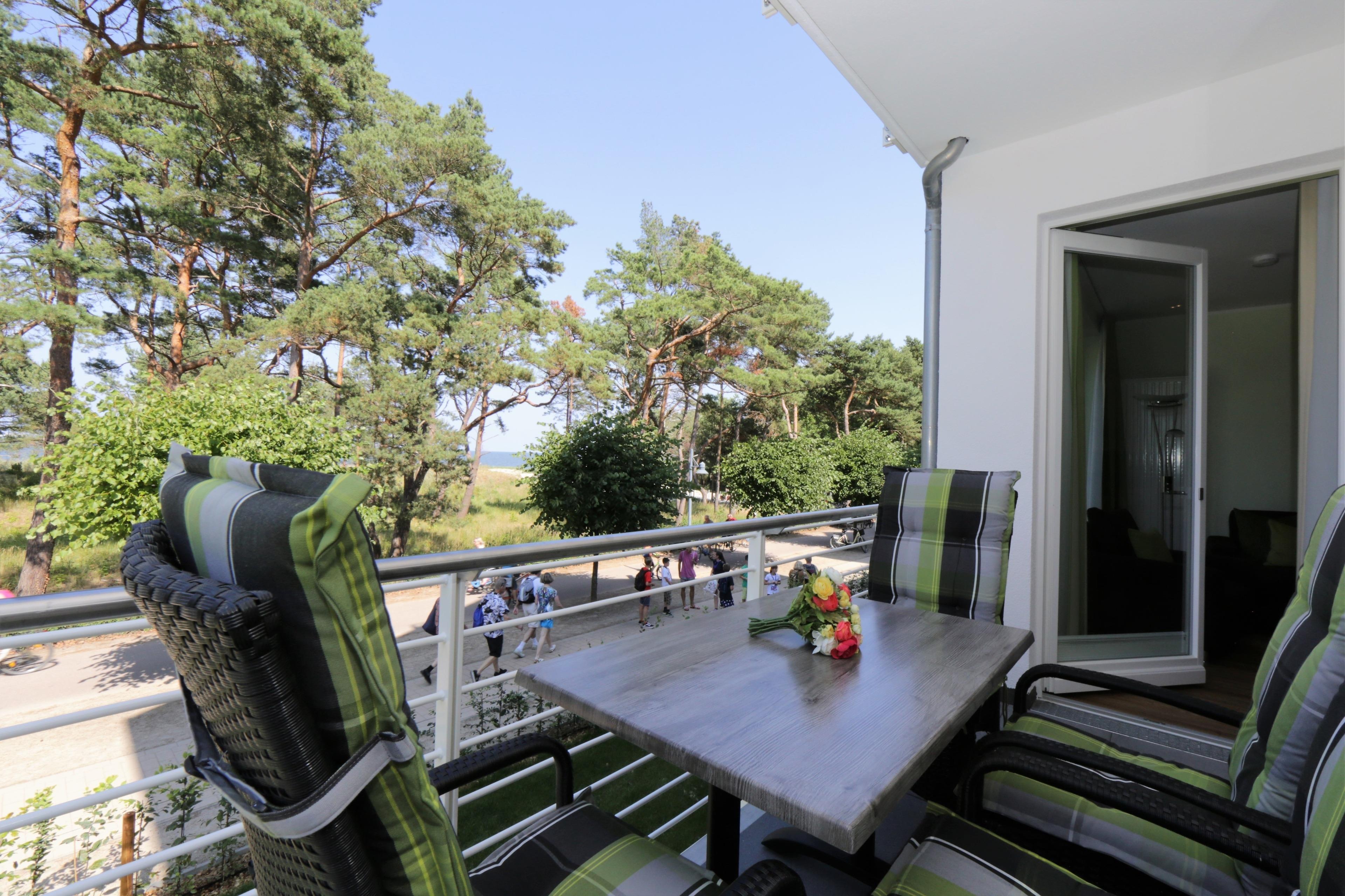 Dieses hochwertige, moderne 3-Zimmer Appartement ist 64 qm groß und befindet sich im 1. Obergeschoss der 2018 neu erbauten Strandresidenz. Die Wohnung mit 2 Schlafzimmern bietet 4 Personen reichlich Komfort im Urlaub. Im Wohnbereich erwartet Sie eine bequeme Polstergarnitur mit Couchtisch und Flat TV sowie ein Esstisch für gemeinsame Mahlzeiten. Die Küche mit Cerankochfeld, Backofen, Geschirrspülmaschine, Kühlschrank etc. ist ebenfalls offen im Wohnraum integriert. Über den Wohnbereich sowie eines der Schlafzimmer erreichen Sie den zur Promenade ausgerichteten überdachten Balkon. Hier haben Sie bereits zum Frühstück alles im Blick. Die Schlafzimmer verfügen jeweils über ein komfortables Doppelbett mit getrennten Matratzen (90 x 200) und einen Kleiderschrank. Das großzügige moderne Badezimmer ist mit einer bodengleichen Dusche mit Echtglasabtrennung und Waschtisch/WC ausgestattet. Des weiteren steht Ihnen ein Gäste-WC zur Verfügung.