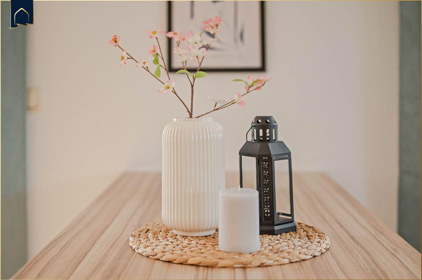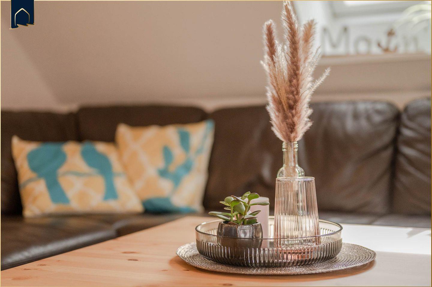 Besonders einladend ist der große Balkon mit Sonnenliegen – perfekt für ein ausgiebiges Frühstück oder ein Glas Wein am Abend. Die hochwertige Küche mit Backofen, Herd, Spülmaschine, Kühlschrank, Gefrierfach, Kaffeemaschine, Toaster und Wasserkocher lässt keine Wünsche offen. Ein Esstisch für vier Personen ergänzt den offenen Wohnbereich, in dem ein bequemes Sofa und mehrere Sessel zum Verweilen einladen.