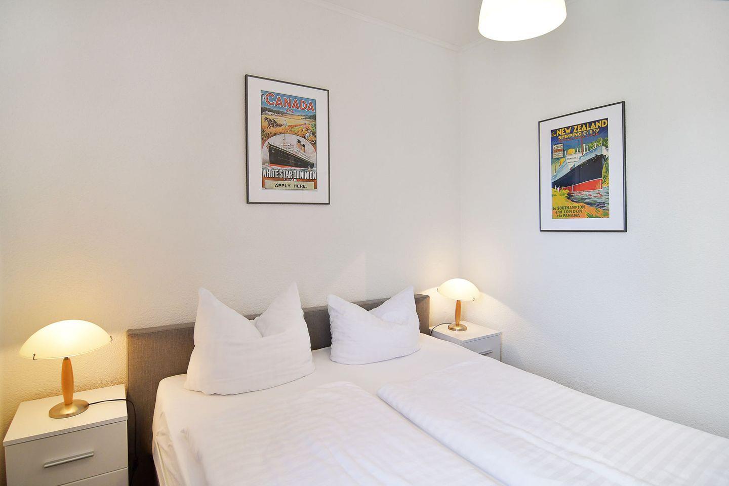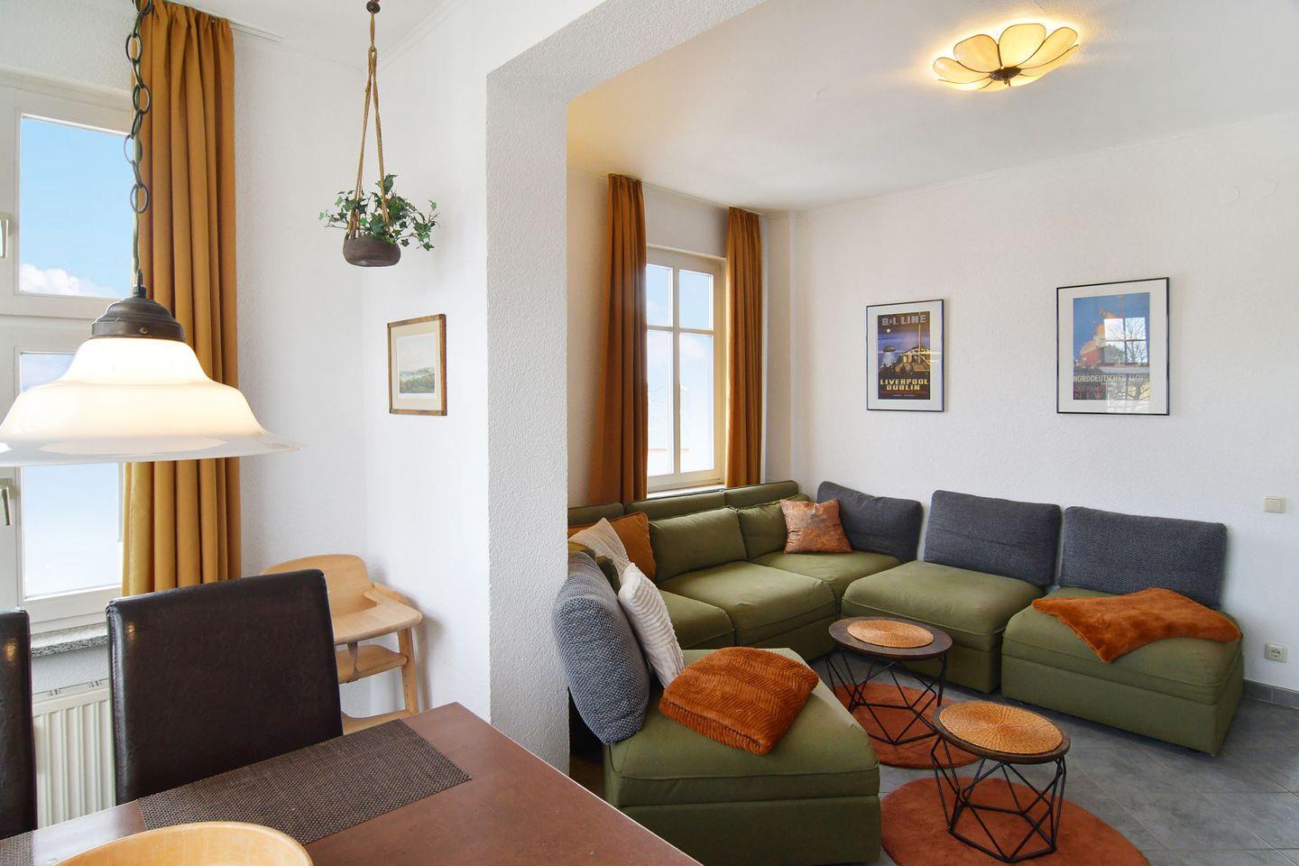 Das 57 m² große Appartement 07 befindet sich im 2.OG des Hauses. Die Ferienwohnung ist mit einem großzügigen Wohnbereich inkl. Essplatz, einer voll ausgestatteten separaten Küche, zwei Schlafräumen (Doppelbetten 160cm) und einem modernen Duschbad ausgestattet. Vom Süd-Balkon haben Sie einen herrlichen Blick in den gemeinschaftlichen Garten mit Grill- und Spielplatz. Haustiere sind auf Anfrage gestattet.