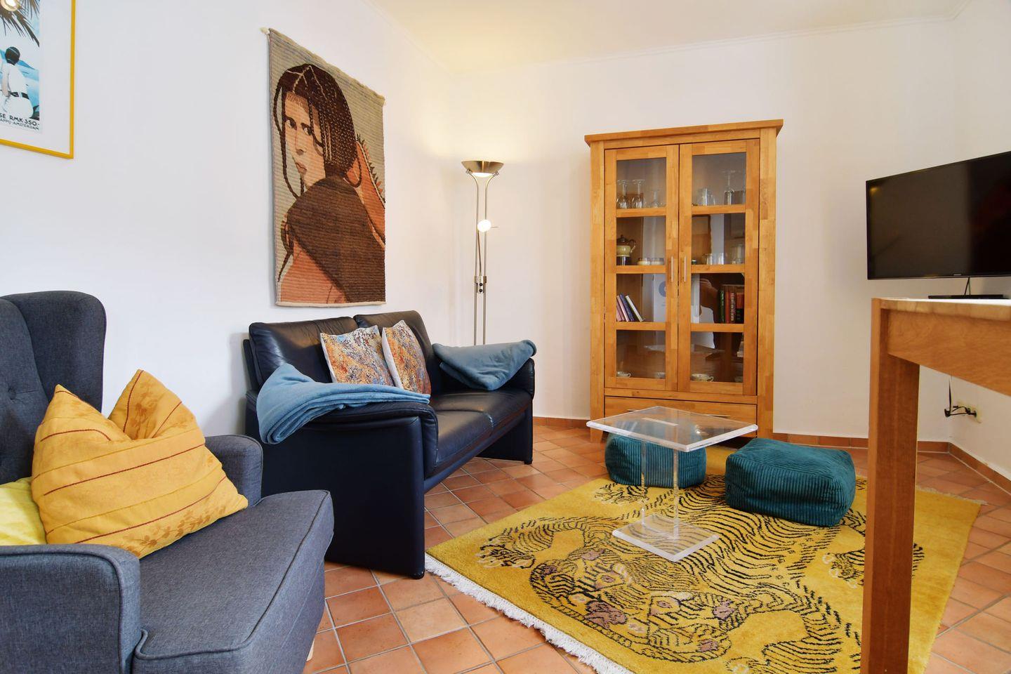 Die kleine, gemütliche 35 m² große Ferienwohnung 05 befindet sich im 2.OG des Hauses. Zwei Zimmer mit separatem Schlafraum (Doppelbett), Duschbad und Südbalkon. Abgetrennter voll ausgestatteter Küchenbereich. Kostenfreies Wlan und ein PKW-Stellplatz stehen zur Verfügung. Haustiere sind auf Anfrage gestattet.