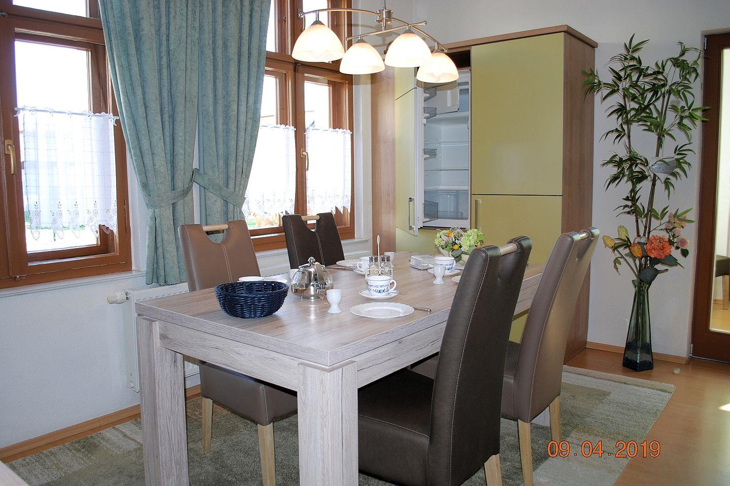 Das gemütliche 72 m² große Erdgeschoss-Appartement verfügt über einen großzügigen Wohnbereich mit offener voll ausgestatteter Küchnzeile und Essplatz, eine Terrasse in Südwest Lage mit Grillmöglichkeit, zwei Schlafräume (Doppelbetten und ein Kindergitterbett) und ein Duschbad. Es stehen kostenfreies Wlan und ein PKW-Stellplatz zur Verfügung. Haustiere sind leider nicht gestattet.