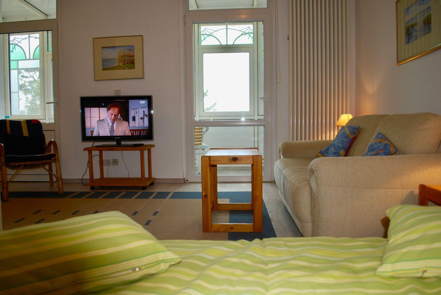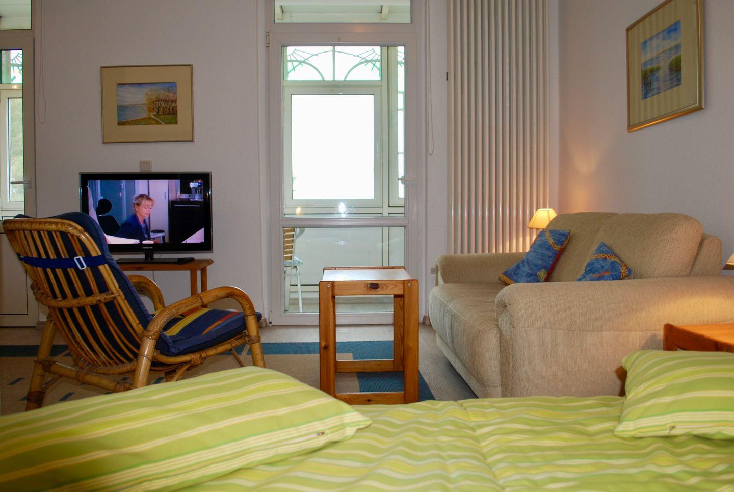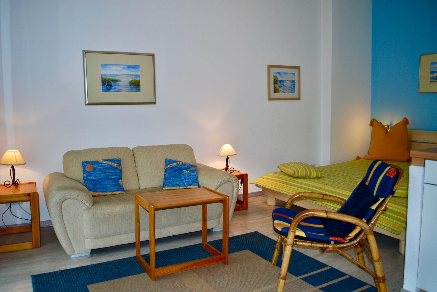 Die ca. 36qm große Ferienwohnung 05 befindet sich im 2.OG des Hauses und ist für bis zu 2 Personen geeignet. Das Appartment verfügt über einen kombinierten WOohn-/Schlafbereich mit Pantryküche und Essplatz, eine Loggia mit Meerblick und ein Duschbad.