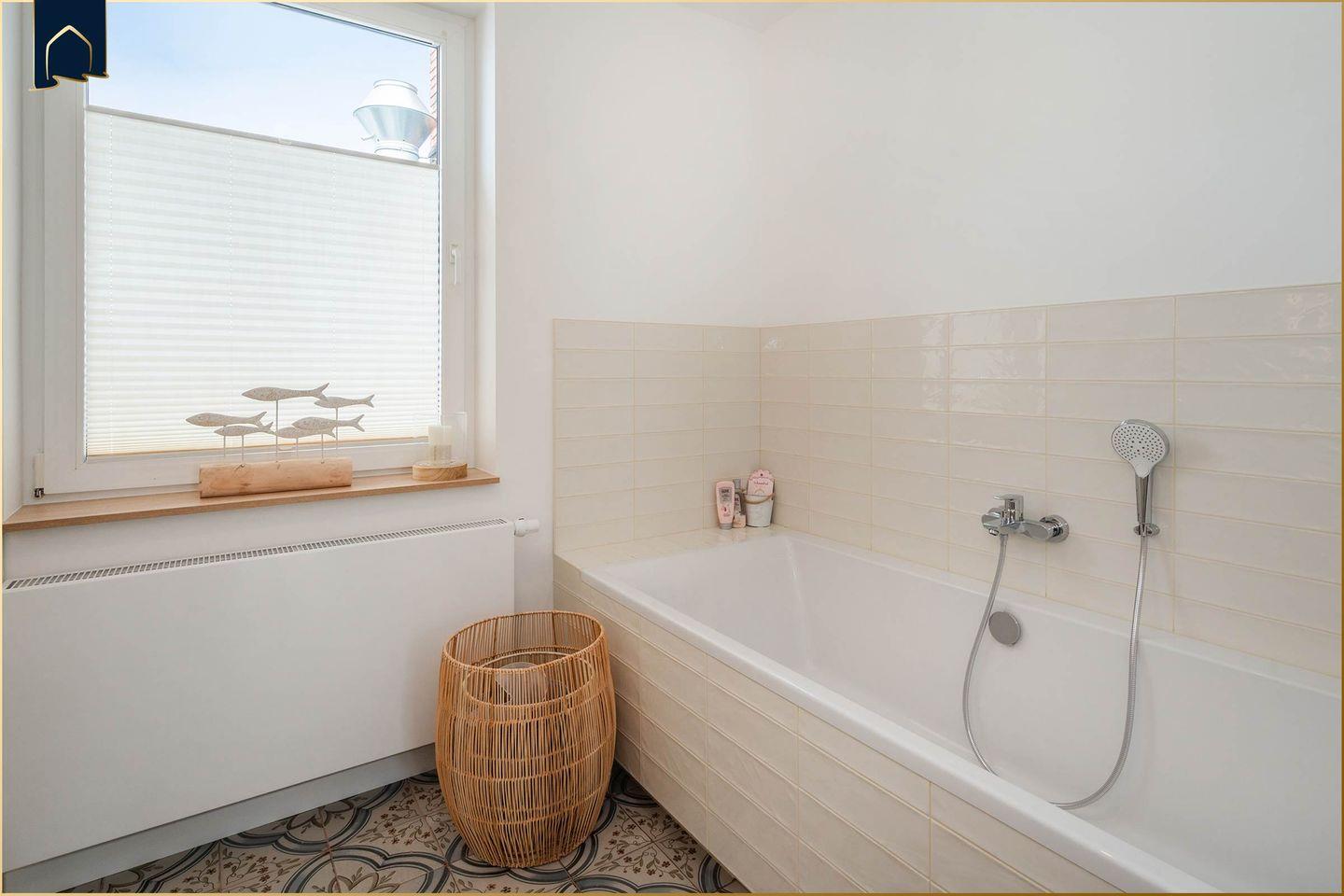 In dieser stilvollen Ferienwohnung auf Usedom genießen Sie entspannte Urlaubstage nur wenige Gehminuten vom feinsandigen Ostseestrand entfernt. Mit einer Wohnfläche von 115?m² bietet sie ausreichend Platz für bis zu fünf Personen. Zwei separate Schlafzimmer, ein gemütliches Wohnzimmer mit Sofaecke sowie zwei voll ausgestattete Badezimmer – eines davon mit Badewanne – machen die Unterkunft ideal für Familien oder Freunde. Große Fenster durchfluten die Räume mit Licht und schaffen eine angenehme Wohnatmosphäre.