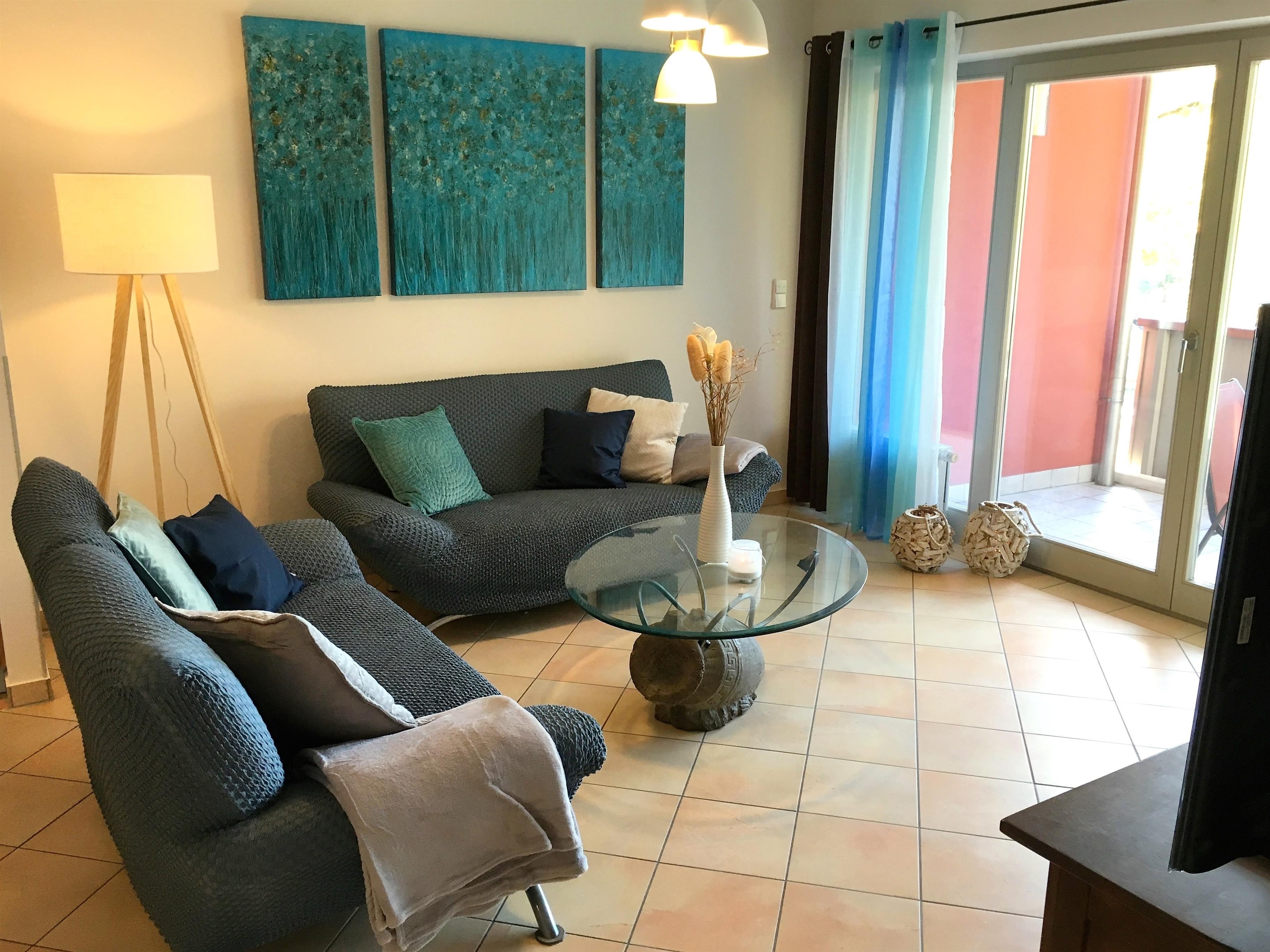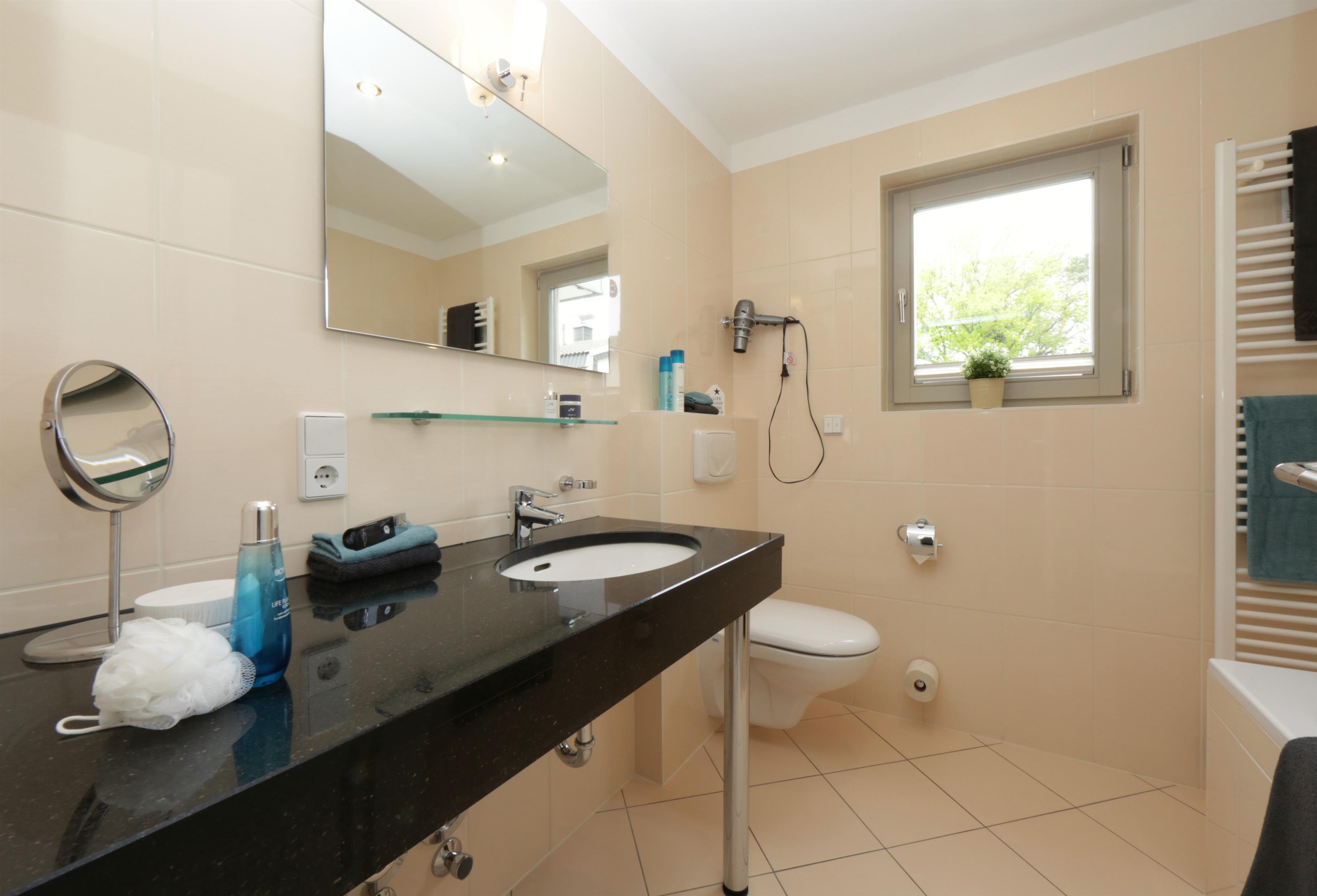 Dieses 65qm große 3-Zimmer Appartement befindet sich im 1. Obergeschoss und bietet bis zu 4 Personen Platz für einen erholsamen Urlaub am Meer. Der gemütlich und offen gestaltete Wohnbereich verfügt über eine Sitzecke mit TV und eine Essecke. Die Vollküche mit Geschirrspüler, Cerankochfeld, Backofen, Mikrowelle, Kaffeemaschine und Senseo-Kaffeemaschine etc. ist ebenfalls offen im Wohnraum integriert. Zwei Balkone zum Süden bzw. Westen laden Sie zu einer entspannten Ruhepause im Freien ein. Beide Schlafzimmer sind mit jeweils einem Doppelbett mit getrennten Matratzen (90 x 200) und einem Kleiderschrank eingerichtet. Das größere Schlafzimmer verfügt zudem über einen weiteren TV. Es stehen Ihnen darüber hinaus in dieser Wohnung auch zwei Bäder mit Waschtisch/WC zur Verfügung – das eine zusätzlich mit Dusche und das andere mit Badewanne. Im Keller finden Sie eine Sauna, einen Fahrradraum, eine Waschmaschine und einen Trockner. Das Haus verfügt über einen privaten und direkten Promenaden-Zugang, sodass Sie sich in weniger als 5 Minuten direkt am wunderschönen Sandstrand befinden. Gerade für Gäste mit Hund ist der nahegelegene Hundestrand (ca. 450m) die perfekte Gelegenheit zum täglichen Spaziergang. Der Pkw-Stellplatz befindet sich auf dem abgeschlossenen Grundstück und ist der Wohnung zugeordnet.