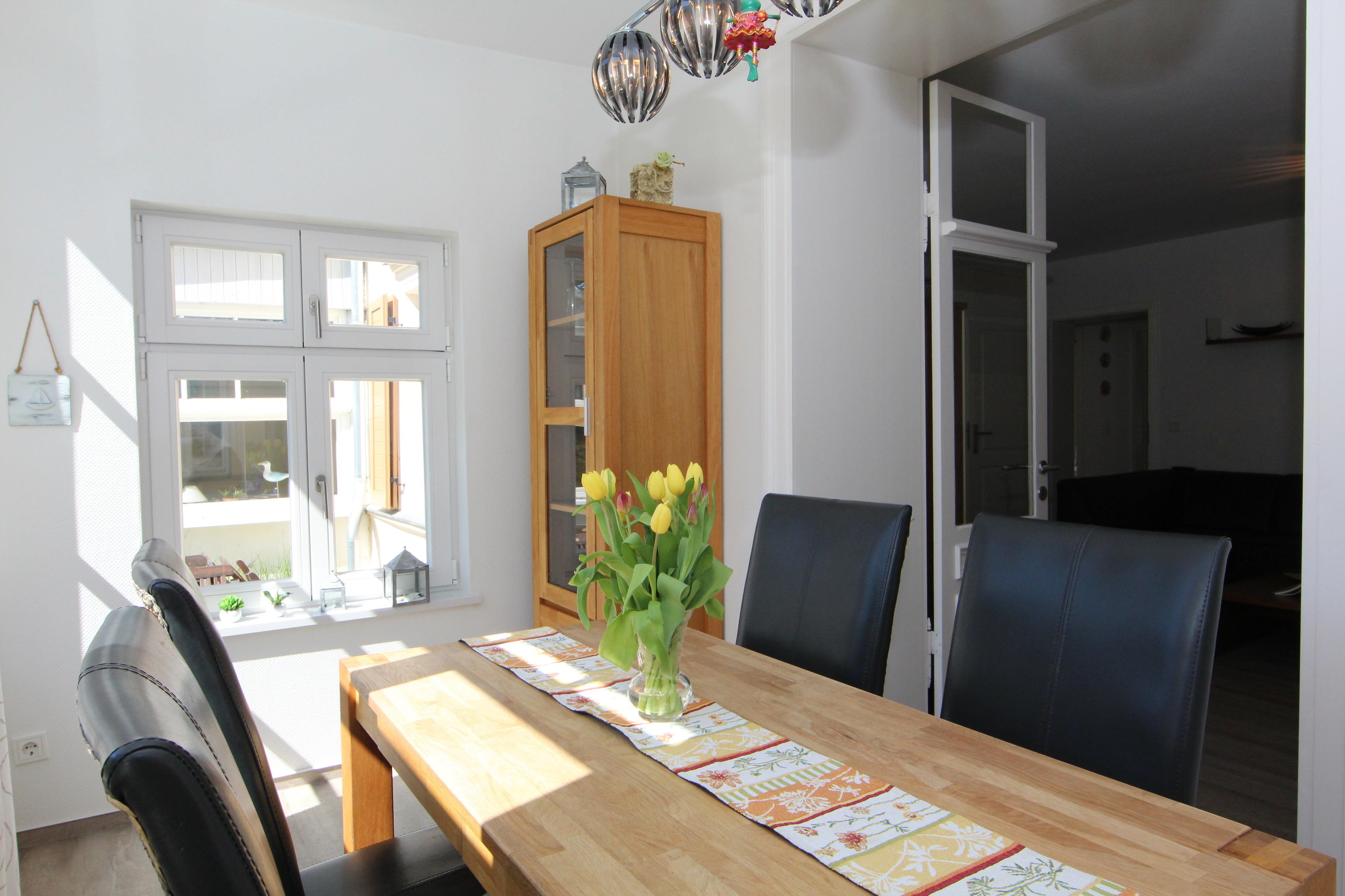 Diese gemütliche 3-Raum-Wohnung liegt im Erdgeschoß mit Terrasse und ist ausgestattet mit moderner Küchenzeile (Ceranherd mit Backofen, Kühlschrank, Geschirrspüler, Toaster, Kaffeemaschine etc.). Im Wohnbereich befinden sich eine Couchecke, Couchtisch und TV. Der Küchenbereich ist im Wohnbereich integriert, der Essbereich ist separat in der Loggia. Die möblierte Terrasse schließt sich an den Wohnbereich an. Im Schlafzimmer befinden sich ein Kleiderschrank, Doppelbett sowie ein Nachtschrank. Das zweite Schlafzimmer ist mit einer Schlafcouch (Liegefläche 2x1m) ausgestattet. Ein Pkw-Stellplatz steht Ihnen auf dem Grundstück zur Verfügung.