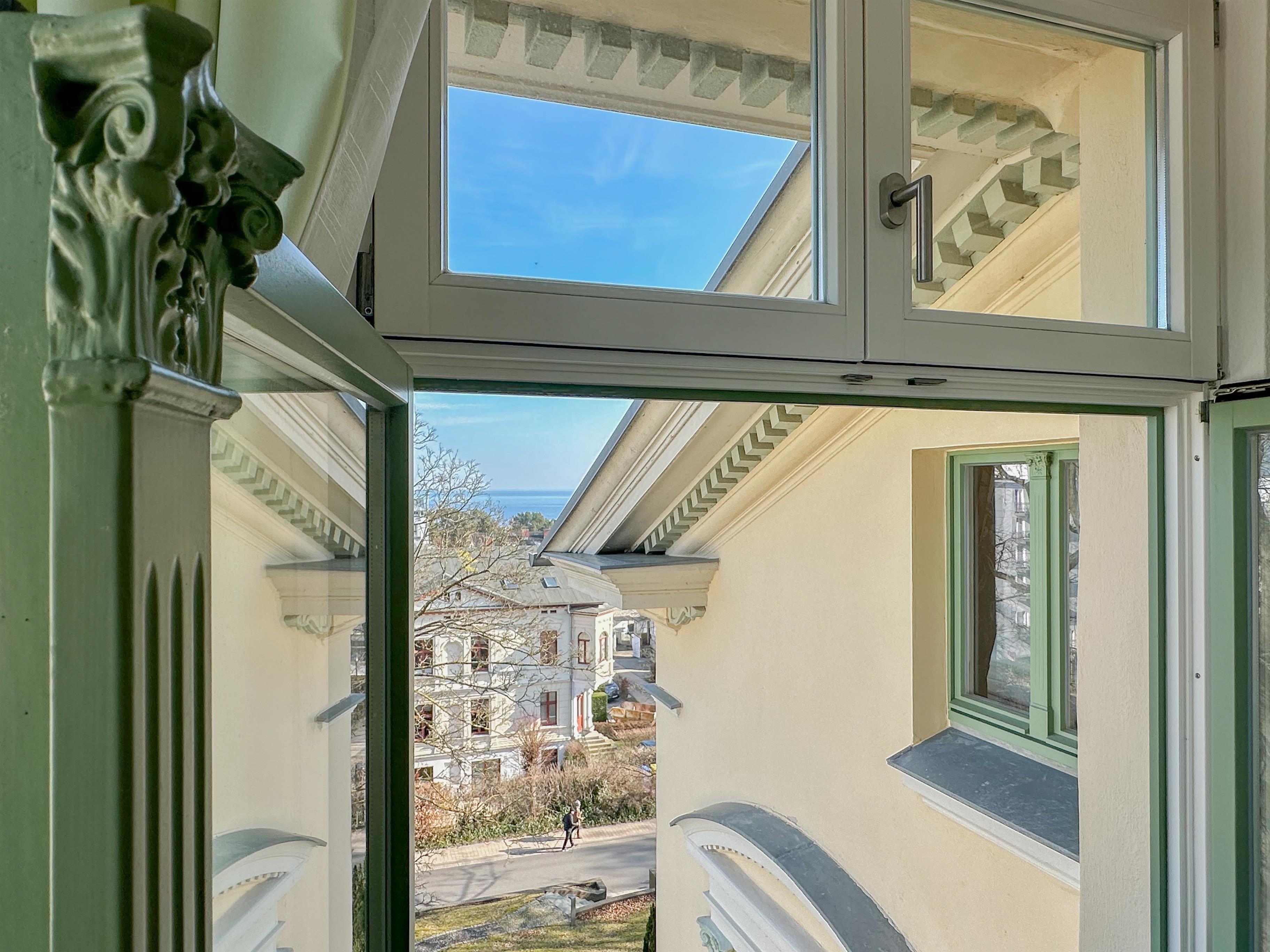 Erhaben thront die "Villa Charlotte" auf einer von viel Grün umgebenen Anhöhe in der Heringsdorfer Delbrückstraße – einer ansprechenden Lage, in der viele prachtvolle Neubau- und Bäderstilvillen das Gesamtbild des größten Kaiserbades prägen.