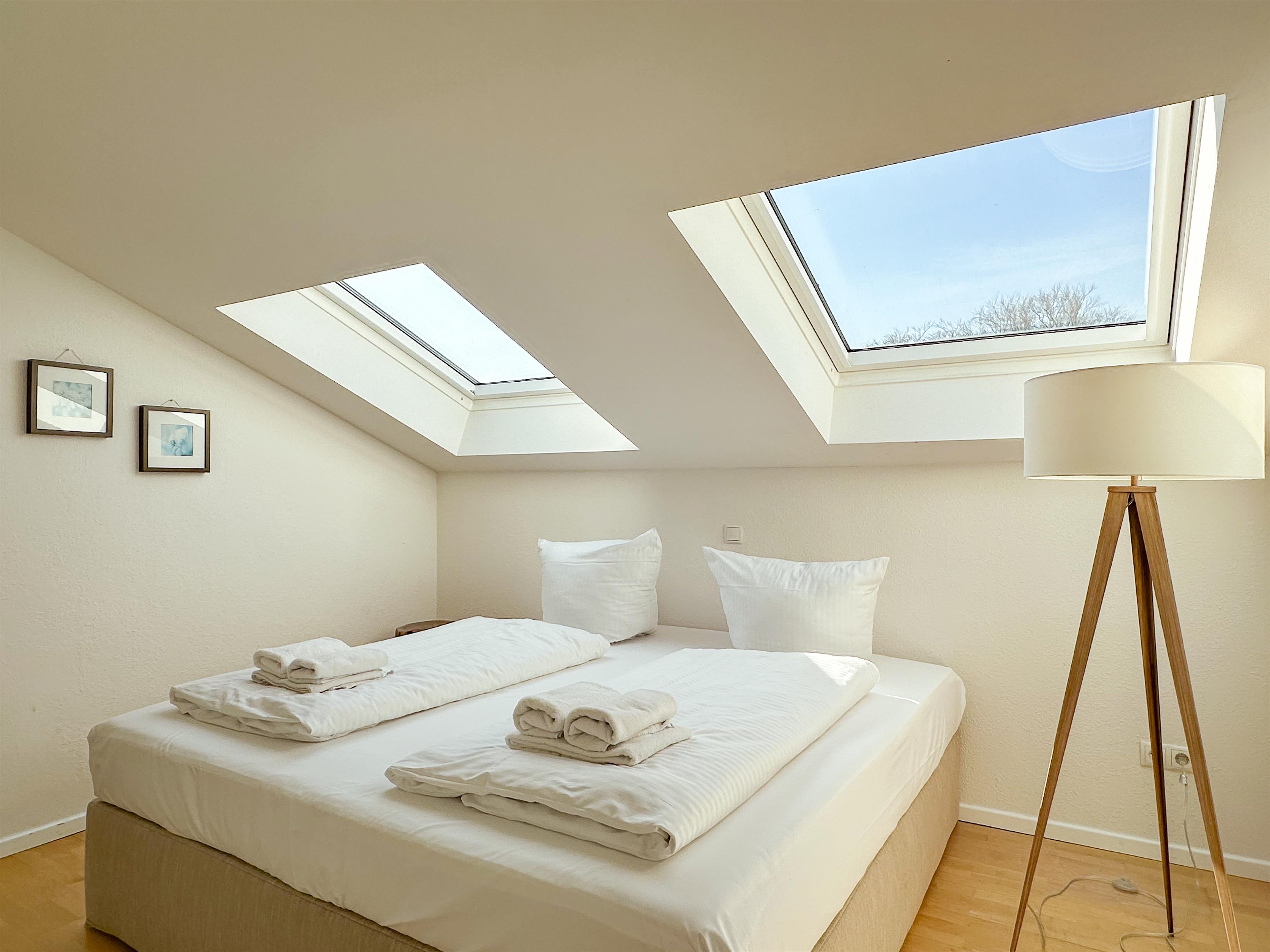 Die beiden gemütlichen Schlafzimmer bieten den perfekten Rückzugsort nach einem erlebnisreichen Tag. Jedes Schlafzimmer ist mit einem komfortablen Doppelbett ausgestattet, das zu erholsamen Nächten einlädt. Hier können Sie sich einkuscheln und die Ruhe des Seebades genießen. Die Schlafzimmer sind nicht nur einladend gestaltet, sondern bieten auch ausreichend Stauraum. Die geräumigen Kleiderschränke sorgen dafür, dass Sie genügend Platz für all Ihre persönlichen Dinge haben, sodass Sie sich während Ihres Aufenthalts rundum wohlfühlen können.