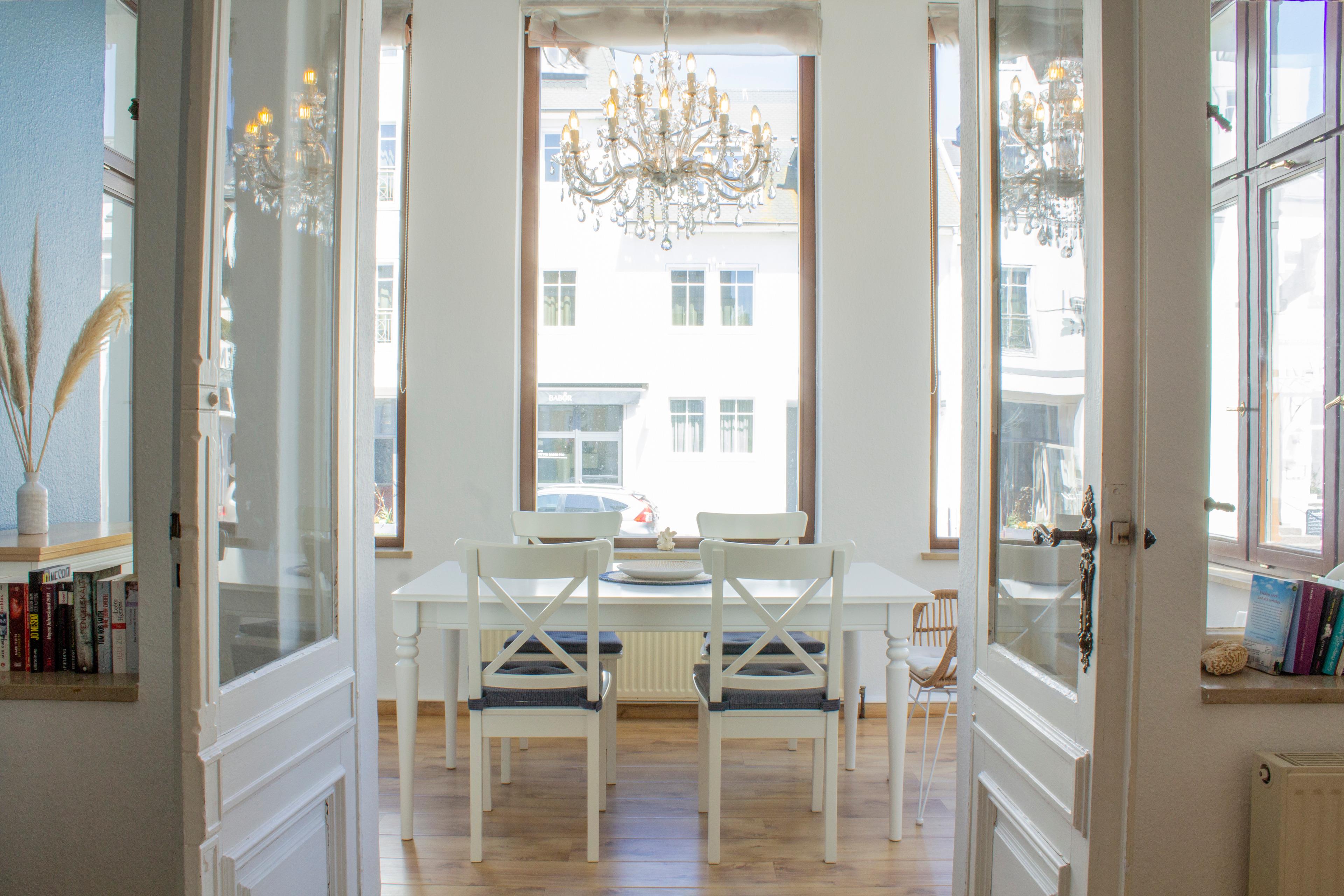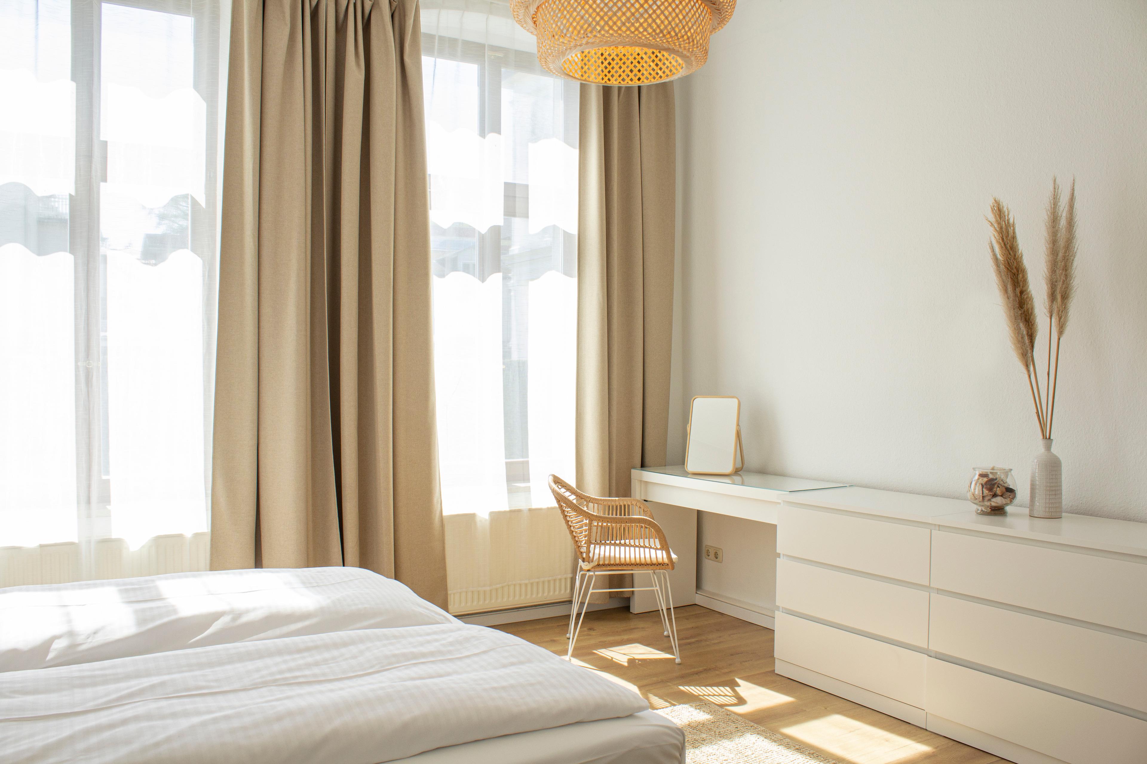 Diese modern und gemütlich eingerichtete 3-Zimmer Wohnung ist 94 qm groß und liegt im Erdgeschoss der im Jahr 1895 als Sommerresidenz erbauten Villa Kramme. Sie bietet 4 - 6 Personen viel Platz für einen erholsamen Ostseeaufenthalt. Der helle Wohnraum verfügt über eine Eckcouch und Hocker sowie einen großen Flat TV. Offen im Wohnraum integriert wurde die Vollküche incl. Geschirrspüler, Ceranfeld, Backofen, Mikrowelle, Kühlschrank etc. Der Essplatz in der lichtdurchfluteten Loggia mit Kronleuchter lädt zu gemeinsamen Mahlzeiten ein. Von hier können Sie das Treiben auf der Heringsdorfer Kulmstraße bestens beobachten. Ein großzügiges und modern eingerichtetes Schlafzimmer befindet sich auf der Rückseite des Hauses und ist mit einem komfortablen Doppelbett mit getrennten Matratzen (90 x 200), ausreichend Schrankraum und einer zusätzlichen Schlafcouch (1,40x2,00) ausgestattet. Das 2. Schlafzimmer bietet den Gästen ein Boxspringbett (getrennte Matratzen 0,90x2,00 durchgehender Topper), eine Sitzgelegenheit sowie genügend Platz für Ihre Kleidung. Das Tageslichtbad ist mit Dusche und Waschtisch/WC ausgestattet. Zusätzlich verfügt die Ferienwohnung über ein Gäste-WC.