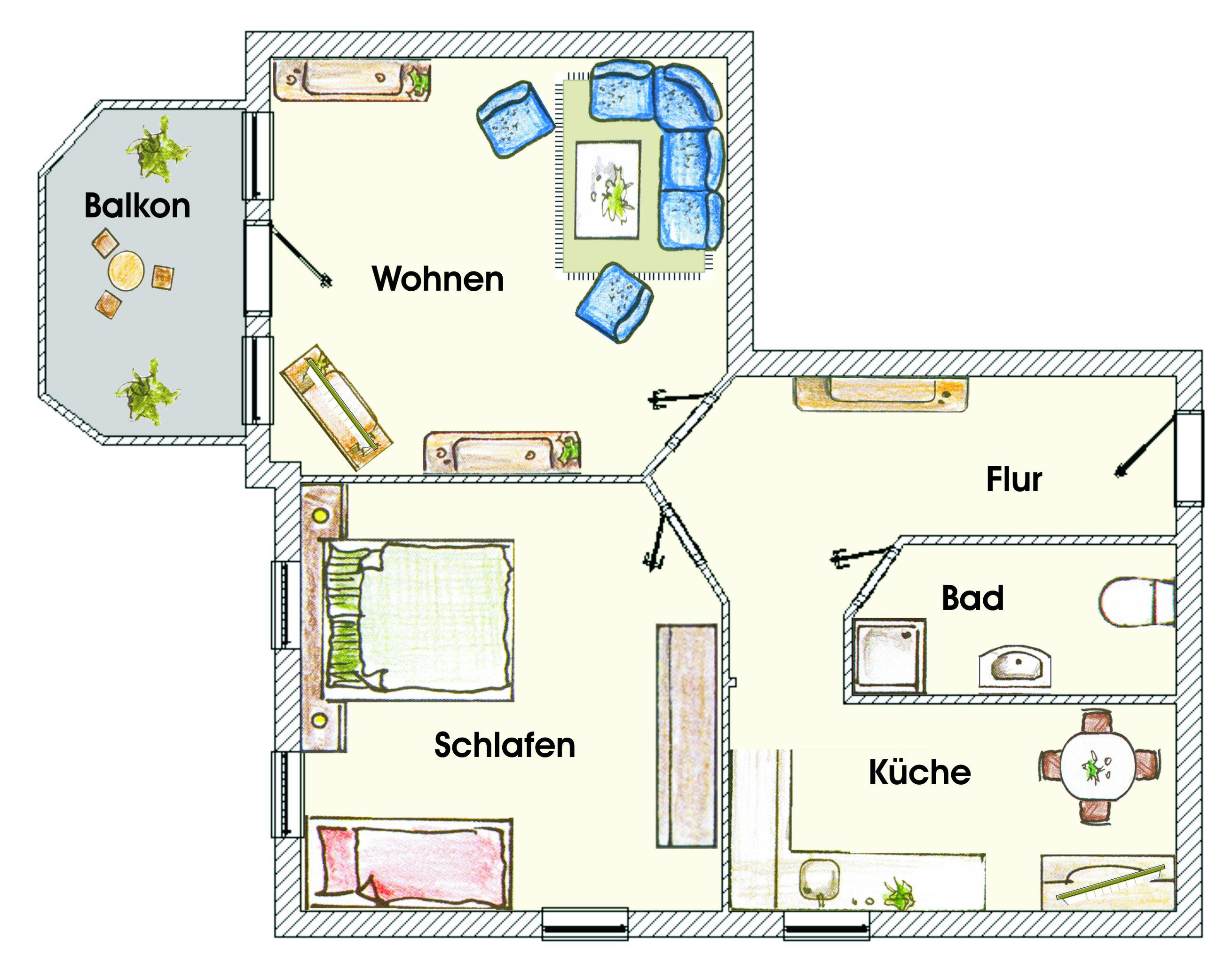 Dieses 55 qm große 2 Zimmer Appartement liegt im 2. Obergeschoss und eignet sich für 2-4 Personen. Der großzügige Wohnbereich bietet Ihnen eine Wohnlandschaft mit Flat-TV. Vom Wohnzimmer gelangen Sie auf den sonnigen Balkon zur Labahnstraße mit östlicher Ausrichtung. In der separaten Küche mit großem Dachfenster steht den Gästen ein Esstisch für gemeinsame Mahlzeiten zur Verfügung. Die Einbauküche verfügt über Kühlschrank, Ceranfeld, Backofen, Mikrowelle etc. Das großzügige Schlafzimmer ist mit einem Doppelbett mit getrennten Matratzen (90 x 200), einem Tandembett für zwei Kinder (90 x 200) sowie reichlich Schrankraum eingerichtet. Das innenliegende Bad ist mit Dusche und Waschtisch/WC ausgestattet. Außerdem steht den Gästen Waschmaschine/Trocker zur Verfügung. Ein Pkw-Stellplatz steht auf dem Grundstück ebenfalls zur Verfügung und ist der Wohnung zugeordnet.