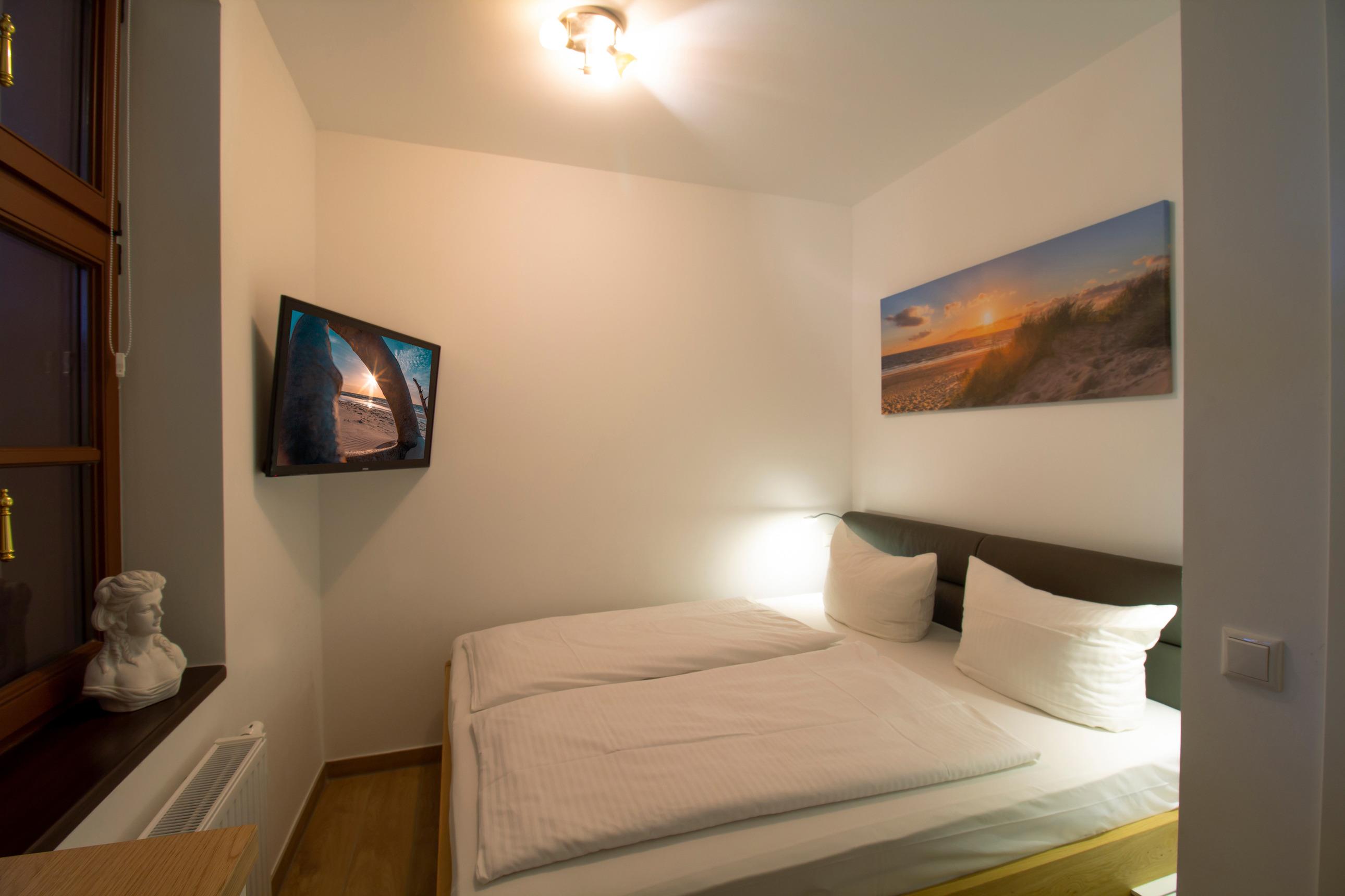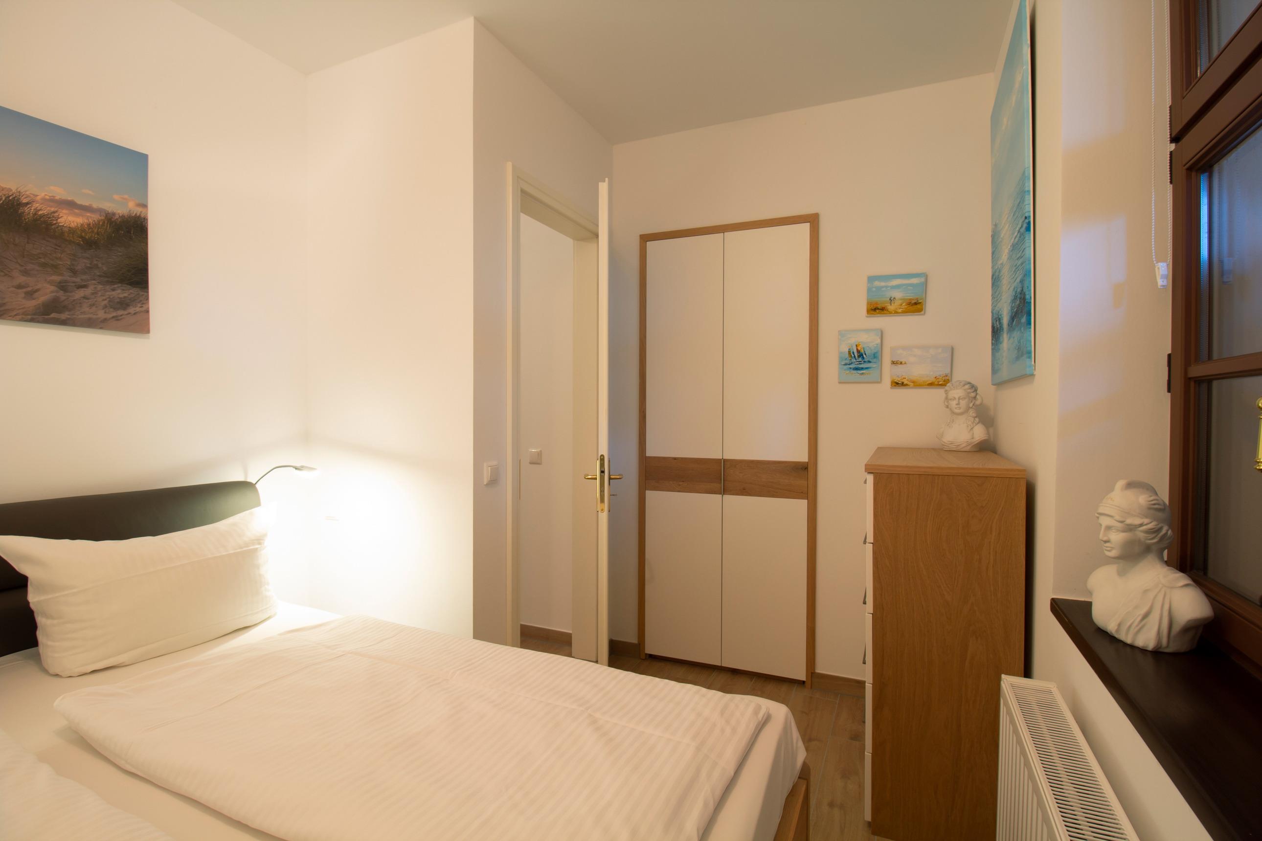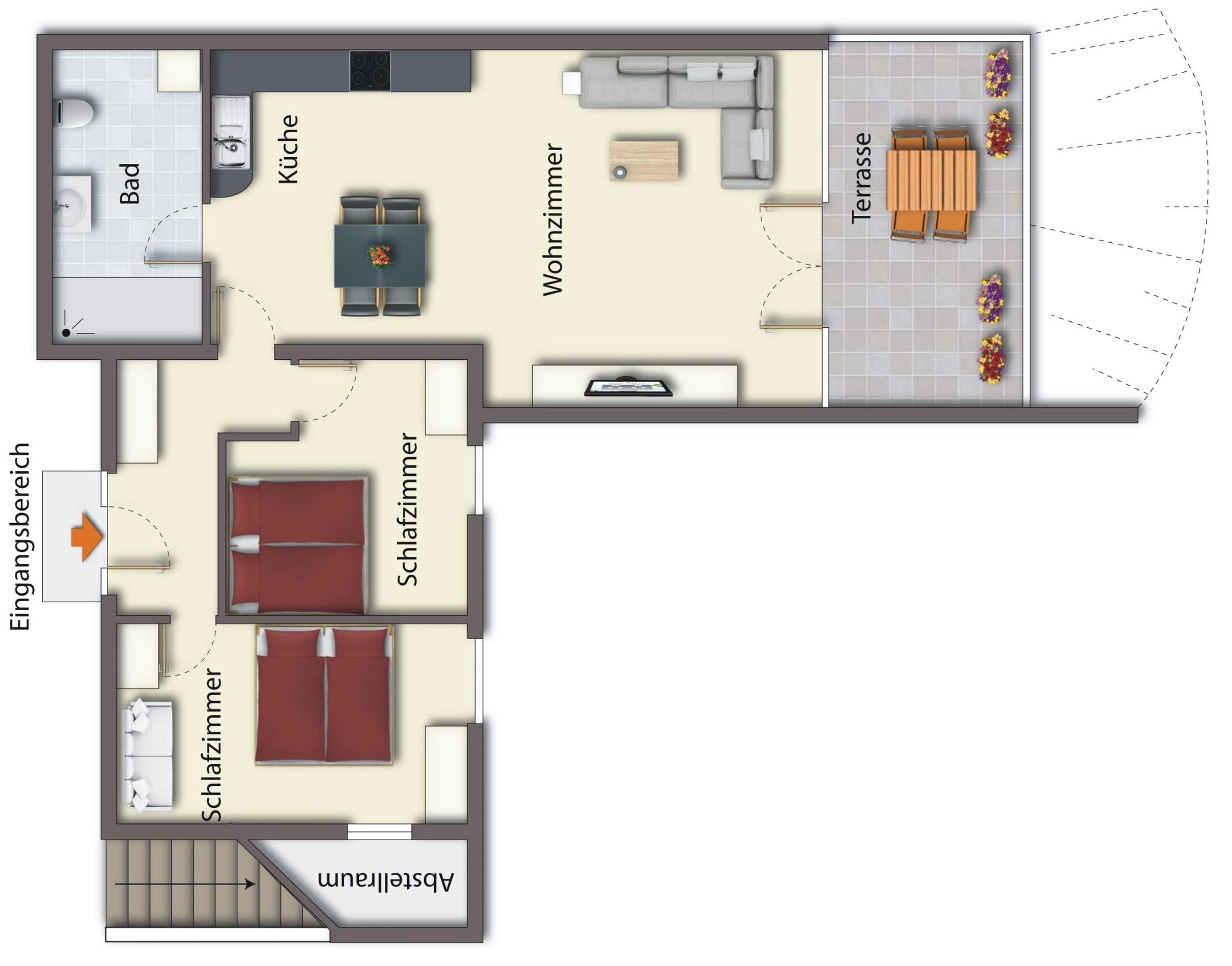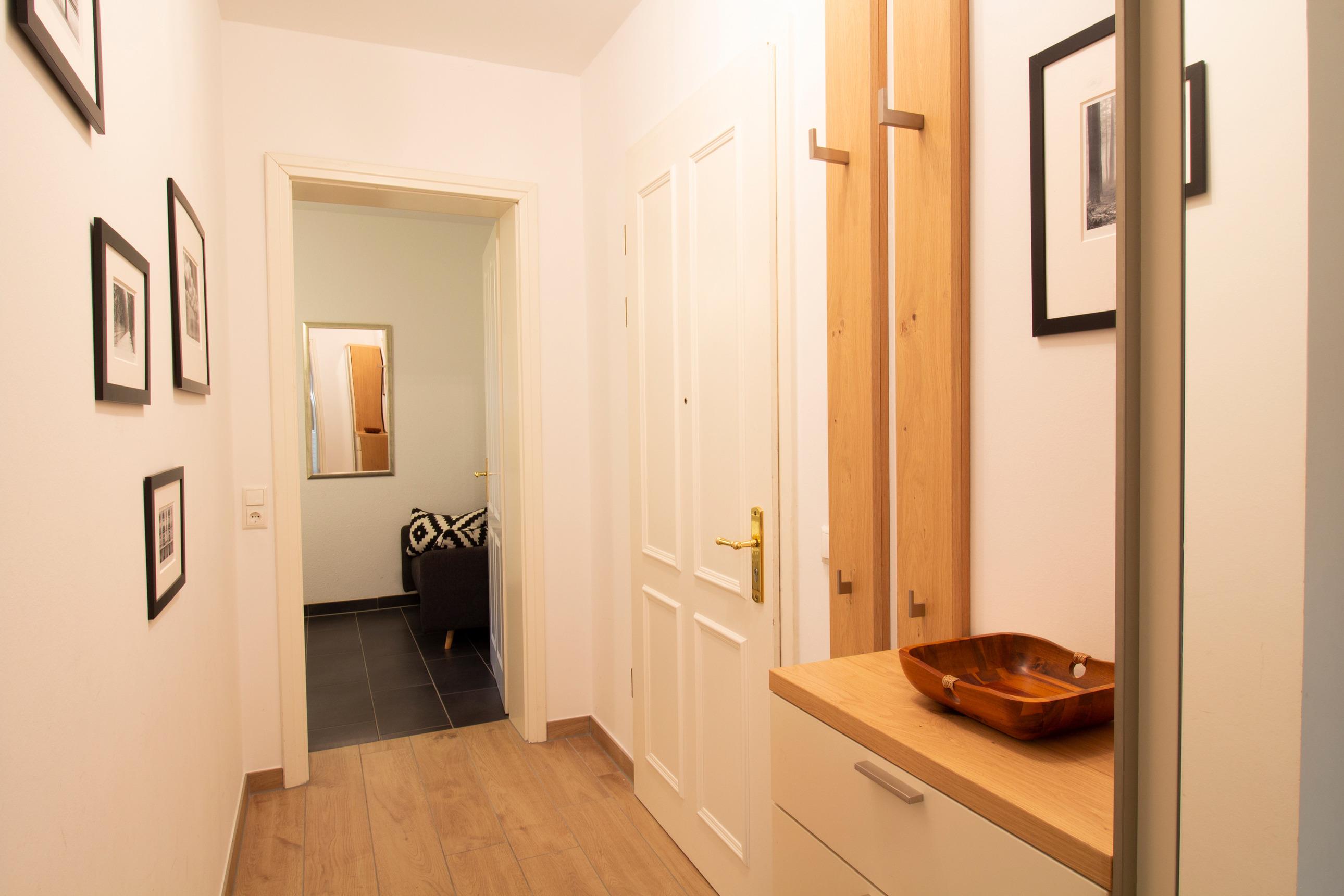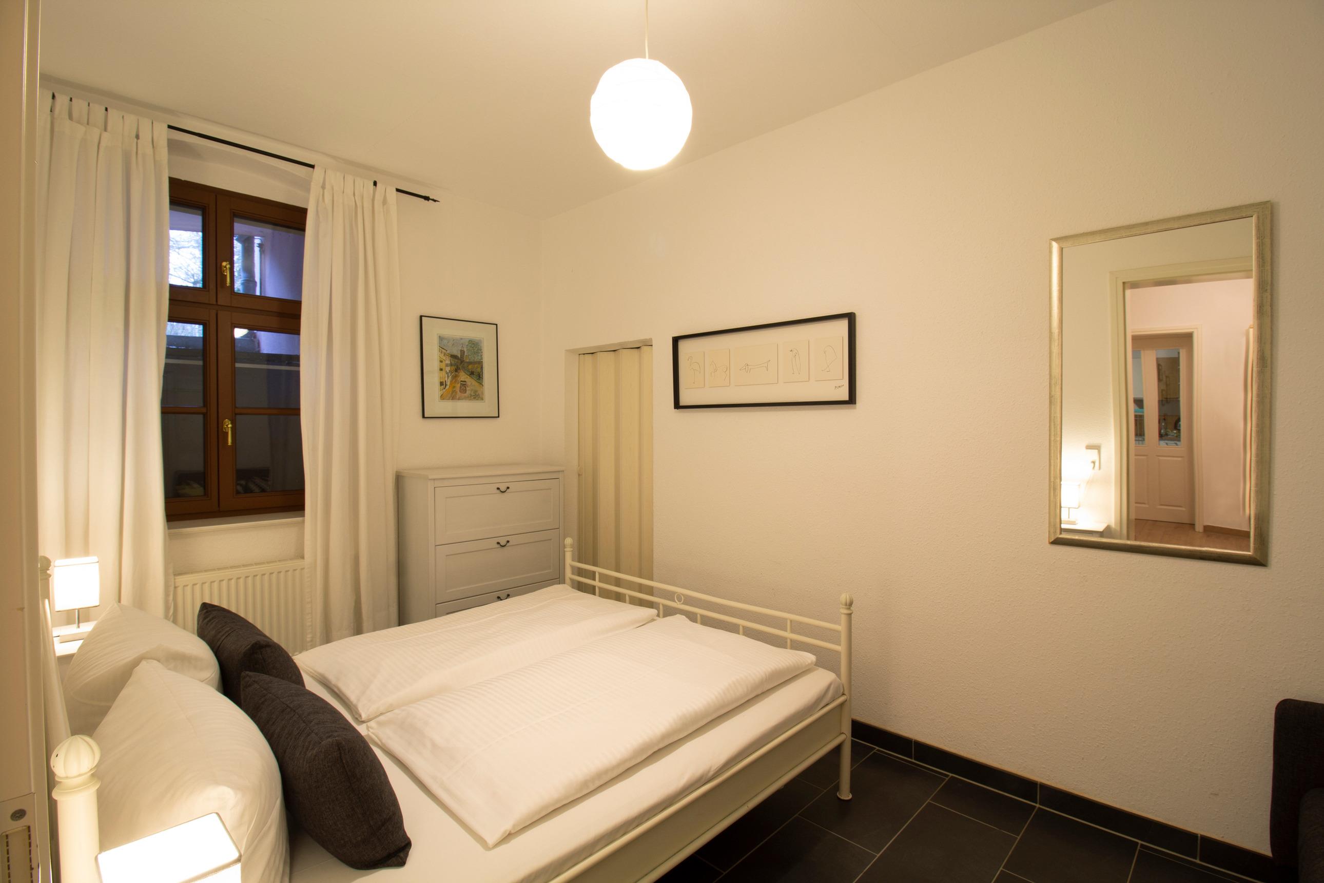 Die Wohnung Nr. 1 liegt auf der Rückseite des Hauses im nach Süden ausgerichteten Souterrain. Eine große Fensterfront fängt viel Tageslicht für den offenen und großzügigen Wohnbereich ein. Die sehr schöne Terrasse lädt mit ihren komfortablen Gartenmöbeln zum Verweilen ein und verlängert so das Wohnzimmer nach draußen. Mit der voll ausgestatteten Küche können Sie sich und Ihre Familie verwöhnen und am gemütlichen Esstisch gemeinsame Mahlzeiten oder Spieleabende verbringen. Das modern sanierte Bad verfügt über eine große Dusche, Waschtisch und Waschmaschine. In zwei Schlafzimmern finden, in den gemütlichen Doppelbetten, bis zu vier Personen viel Platz.