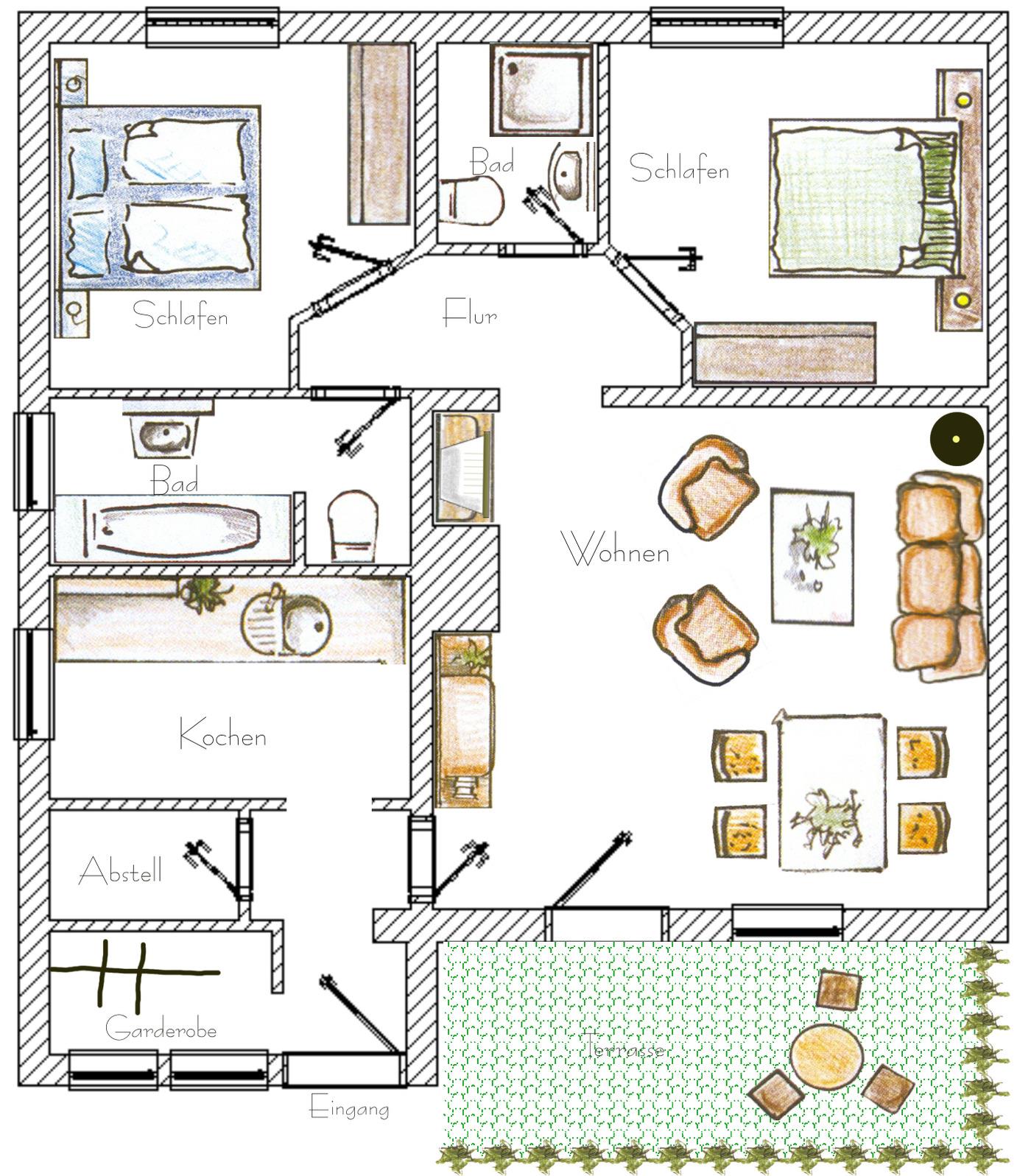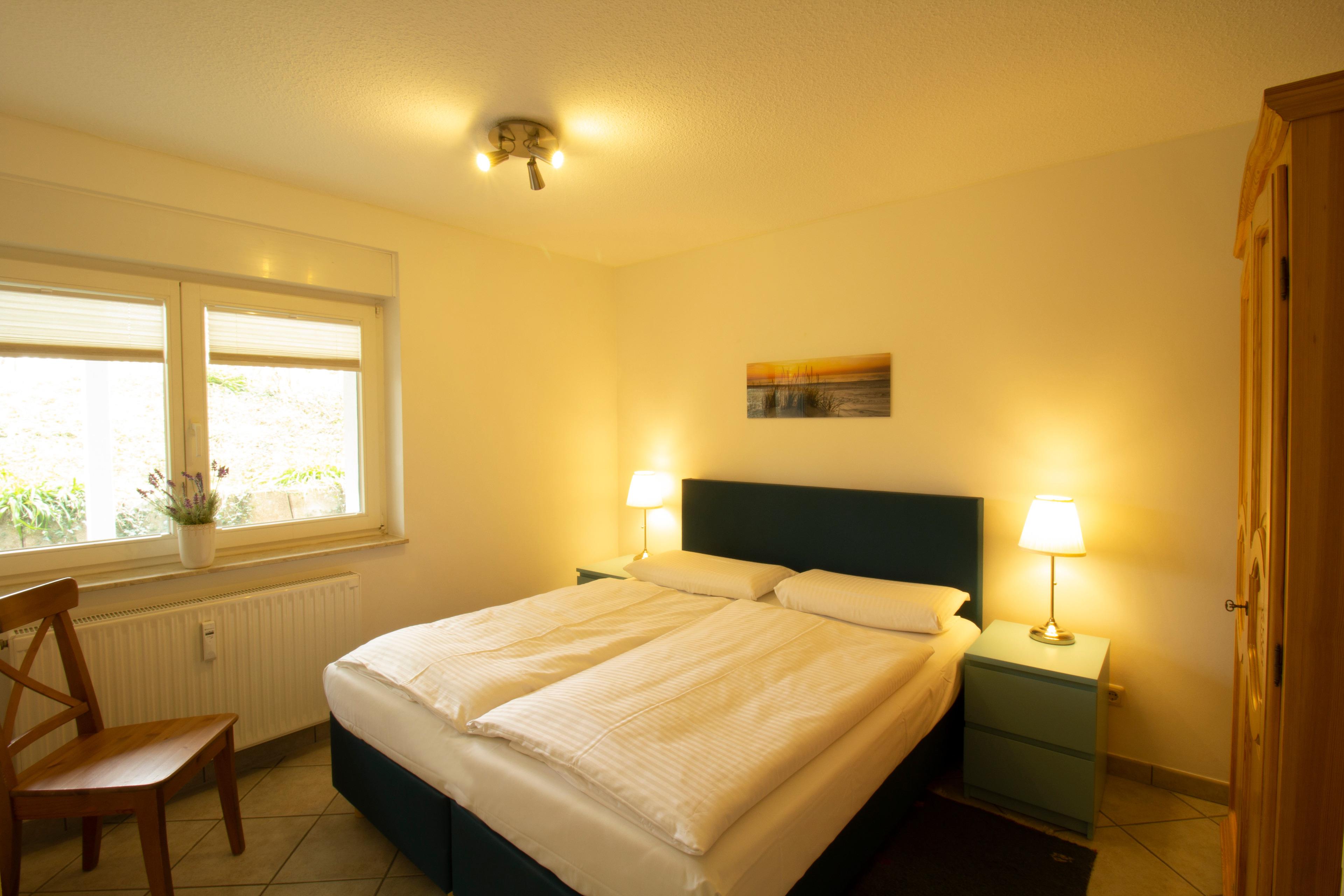 Dieses ebenerdig gelegene, 73 qm große 3-Zimmer-Appartement besitzt einen eigenen Zugang ausschließlich für die Nutzer des Appartements. Nur 6 m entfernt liegt der zur Wohnung gehörende PKW-Parkplatz, verdeckt durch üppig wachsende küstentypische Grünpflanzen wie Sanddorn, Strandhafer u.a. Das liebevoll eingerichtete Wohnzimmer mit gemütlicher Polsterecke und Essplatz für 4 Personen sowie die Terrasse sind südlich ausgerichtet. In einem kuscheligen Strandkorb können Sie, geschützt von dem Trubel auf der Promenade und vor neugierigen Blicken die Sonne bis zum Sonnenuntergang genießen und bei einem köstlichem Glas Wein vom Alltagsstress abschalten. Beide Schlafräume liegen zur Seeseite und sind mit bequemem Doppelbett und getrennten Matratzen ( 1,80m x2,00m) bzw. Doppelboxspringbett (1,60m x 2,00m) sowie ausreichend Schrankraum ausgestattet und sichern einen erholsamen Schlaf. Das Einschlafen wird oft vom sanften Wellengeräusch der Ostsee begleitet.... Eine separate helle Küche ist mit allem ausgestattet, was das Kochherz höher schlagen lässt. Das Appartement verfügt über 2 Bäder /WC: Ein ebenerdiges Duschbad mit Echtglasabtrennung, WC und Waschtisch sowie ein Wannenbad, ebenfalls mit WC und Waschtisch.