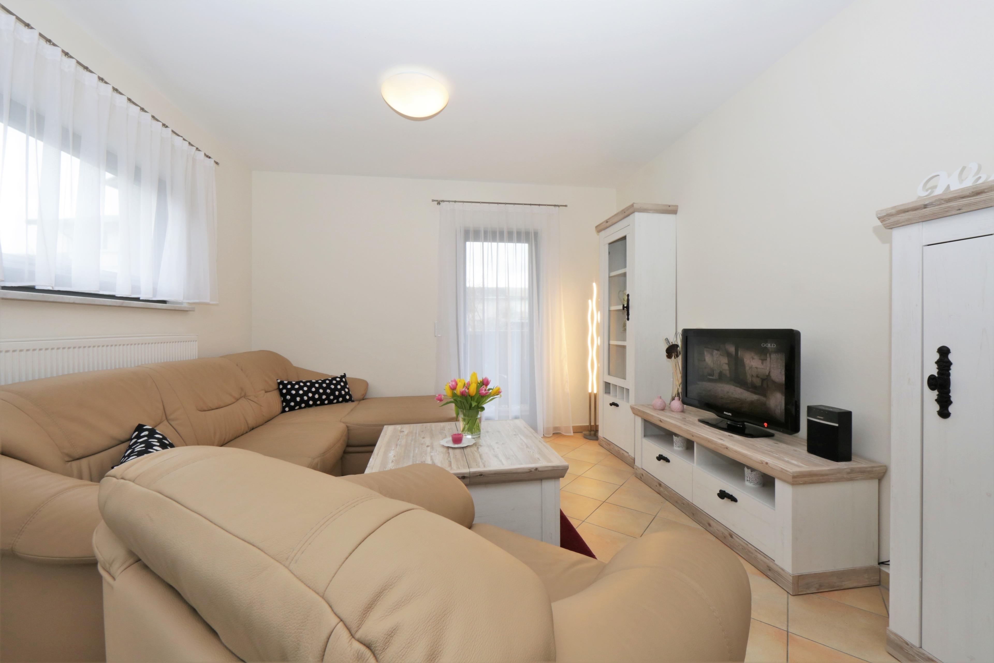 Diese modern eingerichtete 3-Zimmer Wohnung ist 67 m² groß und befindet sich im Erdgeschoss des an die Villa angrenzenden Neubaus. Die Wohnung ist komfortabel ausgestattet und bietet 4 Personen Platz für einen erholsamen Inselurlaub. Der großzügige helle Wohnraum bietet Ihnen eine gemütliche Sitzecke mit Sofa, Sessel, TV und Essplatz. Die Küchenzeile inkl. Backofen, Ceranfeld, Kühlschrank, Geschirrspüler etc. ist offen im hinteren Bereich des Wohnraums integriert. Vom Wohnzimmer betreten Sie auch den westlich ausgerichteten Balkon, auf dem Sie den Tag mit einem Glas Wein ausklingen lassen können. Von hier aus können Sie auch einen teilweisen Blick auf das Meer erhaschen. Beide Schlafzimmer sind mit italienischen Stilmöbeln eingerichtet, einem Doppelbett mit getrennten Matratzen (90 x 200) und einem Kleiderschrank. Den großen, überdachten, südlich ausgerichteten Balkon, der zu gemeinsamen Mahlzeiten einlädt, können Sie vom Wohnraum und vom größeren Schlafzimmer betreten. Das moderne Bad ist sowohl mit einer Dusche mit Echtglasabtrennung als auch mit einer Badewanne und Doppelwaschbecken/WC ausgestattet. Außerdem steht den Gästen ein Gäste WC zur Verfügung. Der Pkw- Stellplatz befindet sich auf dem Grundstück und ist der Wohnung zugeordnet.