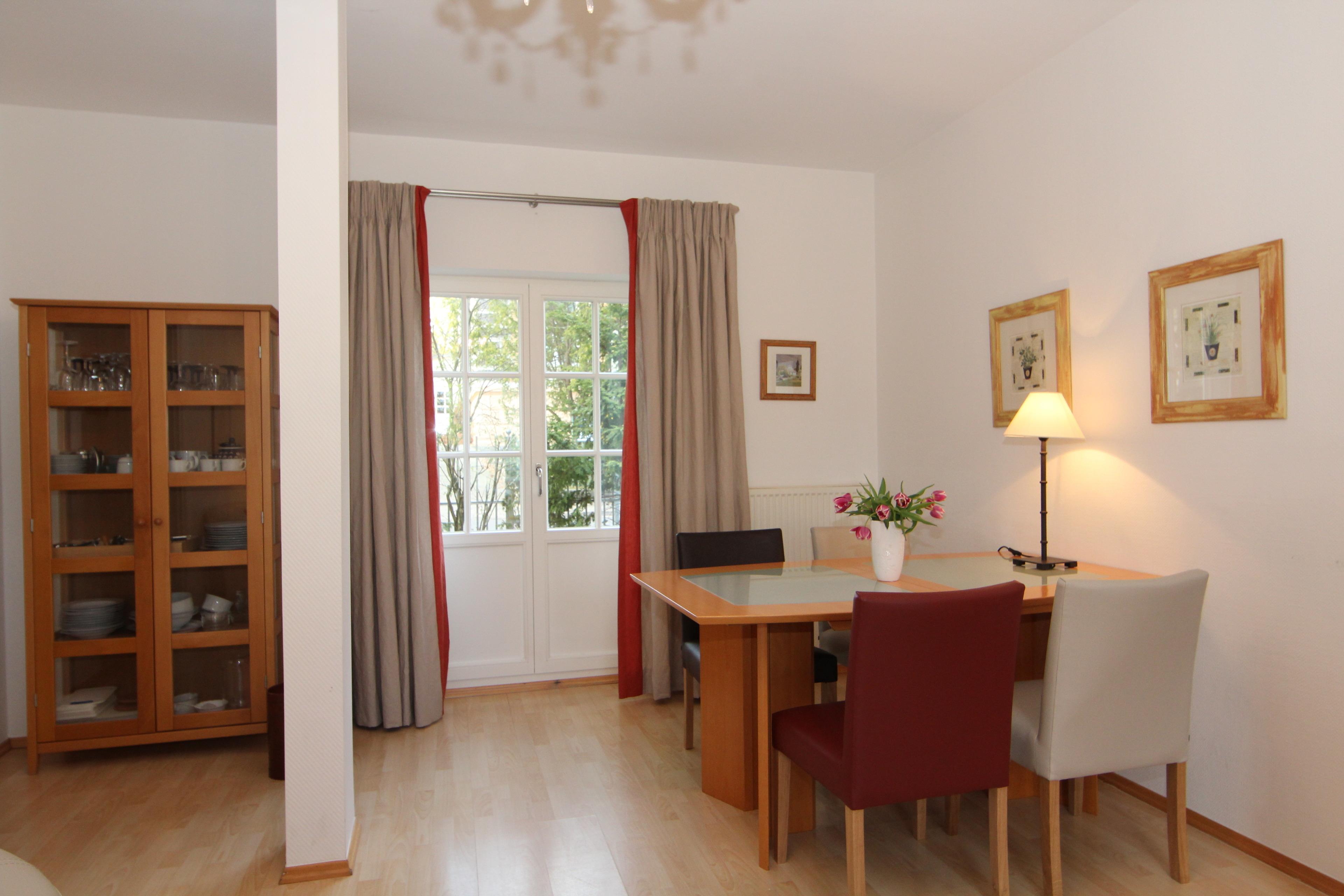 Ein Häuschen mitten in Heringsdorf ganz für Sie alleine – wir nennen das Goldstaub. Die Remise ist ein wunderschönes Urlaubsdomizil für bis zu 4 Personen. Die 90 qm Wohnfläche verteilen sich über drei Ebenen. Eigene Balkone und Terrassen eröffnen Ihnen einen einmaligen Blick in die parkähnlichen Gärten der Seeparkvillen. Der Wohnbereich stellt den Mittelpunkt des Hauses dar und bietet Ihnen eine gemütliche Sitzgruppe, Flat-TV, Blue-Ray/DVD, HIFI. Zusätzlich ist der Wohnbereich mit einem gemütlichen Essplatz eingerichtet, der zu gemeinsamen Mahlzeiten einlädt. Die an den Essbereich angrenzende separate Küche ohne Tür jedoch mit einem Fenster ist mit einer modernen Vollküche ausgestattet inklusive Geschirrspüler, Kühlschrank mit Gefrierfach, Mikrowelle und Backofen mit Ceranfeld. Der Wohnbereich mit einer Terrasse in westlicher und einem Balkon in östlicher Ausrichtung bietet viel Licht. Über das Treppenhaus erreichen Sie sowohl ein Schlafzimmer im Obergeschoss sowie das Badezimmer als auch das ebenerdige Schlafzimmer, das mit seiner Terrasse in den Garten hinausblickt. Das obere großzügige und stilvoll eingerichtete Schlafzimmer ist mit einem Doppelbett mit getrennten Matratzen (90x200) ausgestattet. Das Highlight sind die beiden Balkone zum Osten und Westen, die auch diesem Raum wieder sehr viel Licht schenken. Das Badezimmer mit Fenster bietet eine Badewanne mit einer Duschabtrennung und Waschtisch/WC. Das untere, ebenso stilvoll eingerichtete Schlafzimmer ist mit zwei Einzelbetten (90x200) und einer kleinen Sitzgruppe ausgestattet. Reichlich Stauraum befindet sich im ganzen Haus. Der PKW-Stellplatz befindet sich auf dem Grundstück direkt am Haus. Waschmaschine, Trockner und Fahrradabstellraum stehen Ihnen im Haupthaus zur Verfügung.