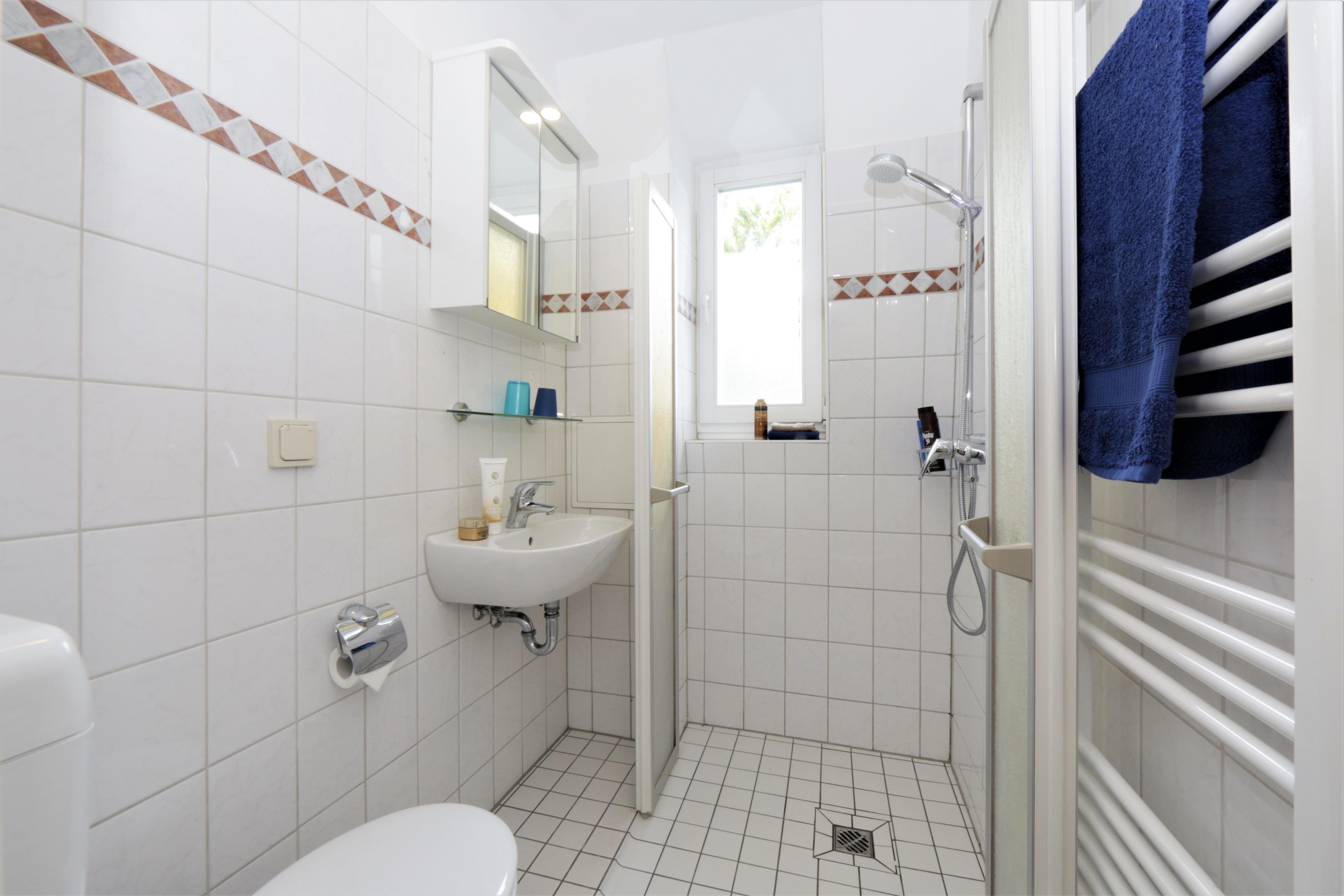 Eine Waschmaschine und ein Trockner sind im Keller (Seiteneingang) vorhanden. Ihre eigenen oder geliehenen Fahrräder können Sie auf dem Grundstück in einem abschließbaren Fahrradschuppen geschützt unterbringen.