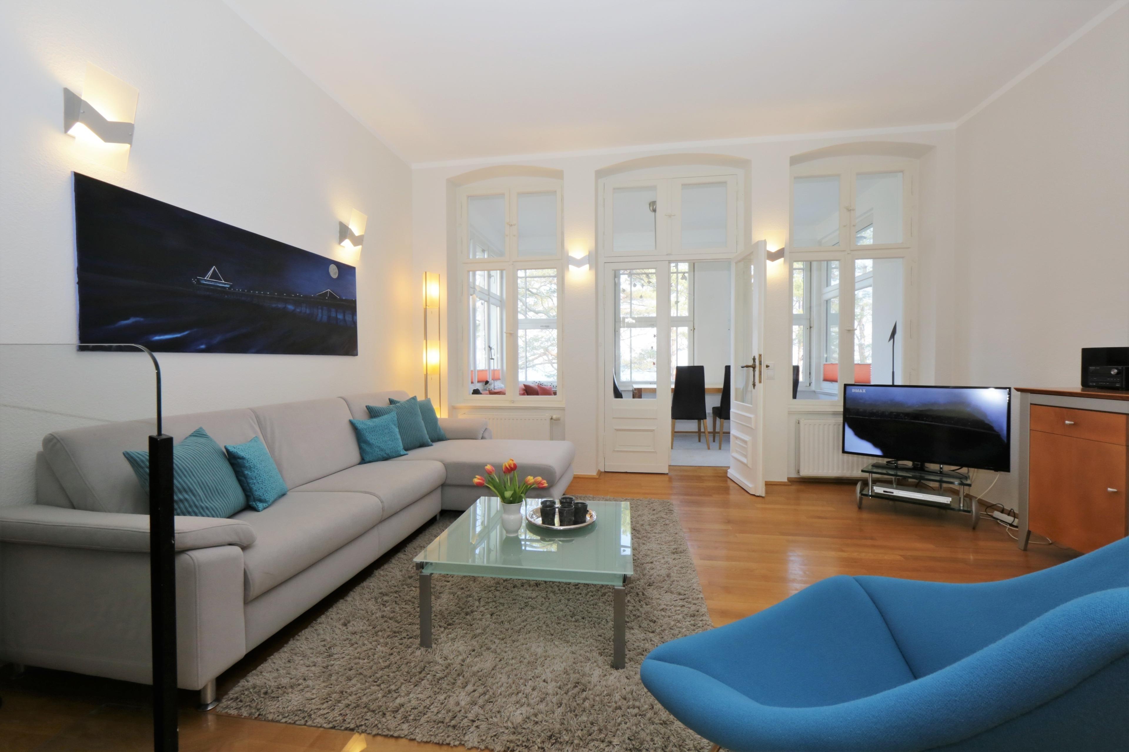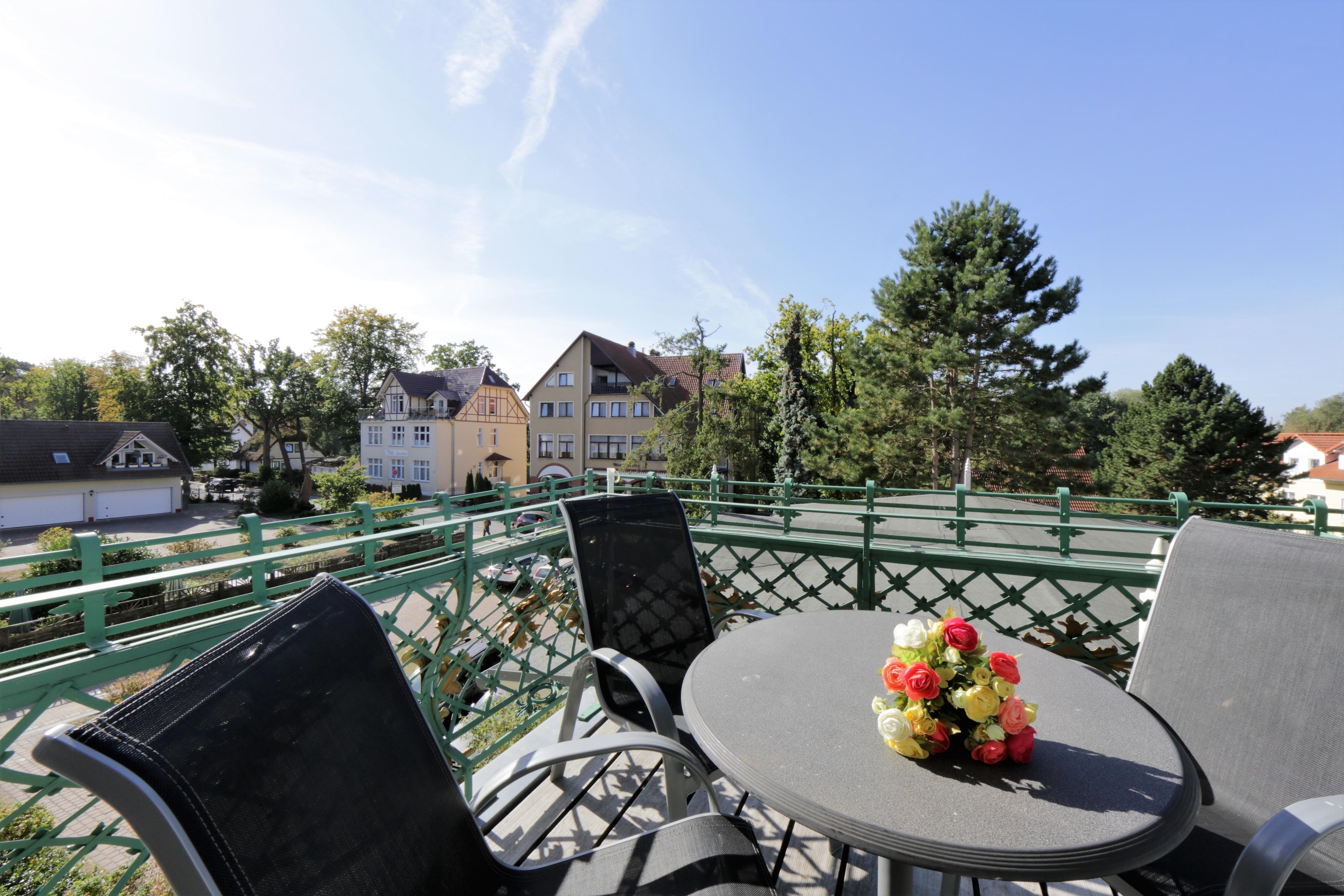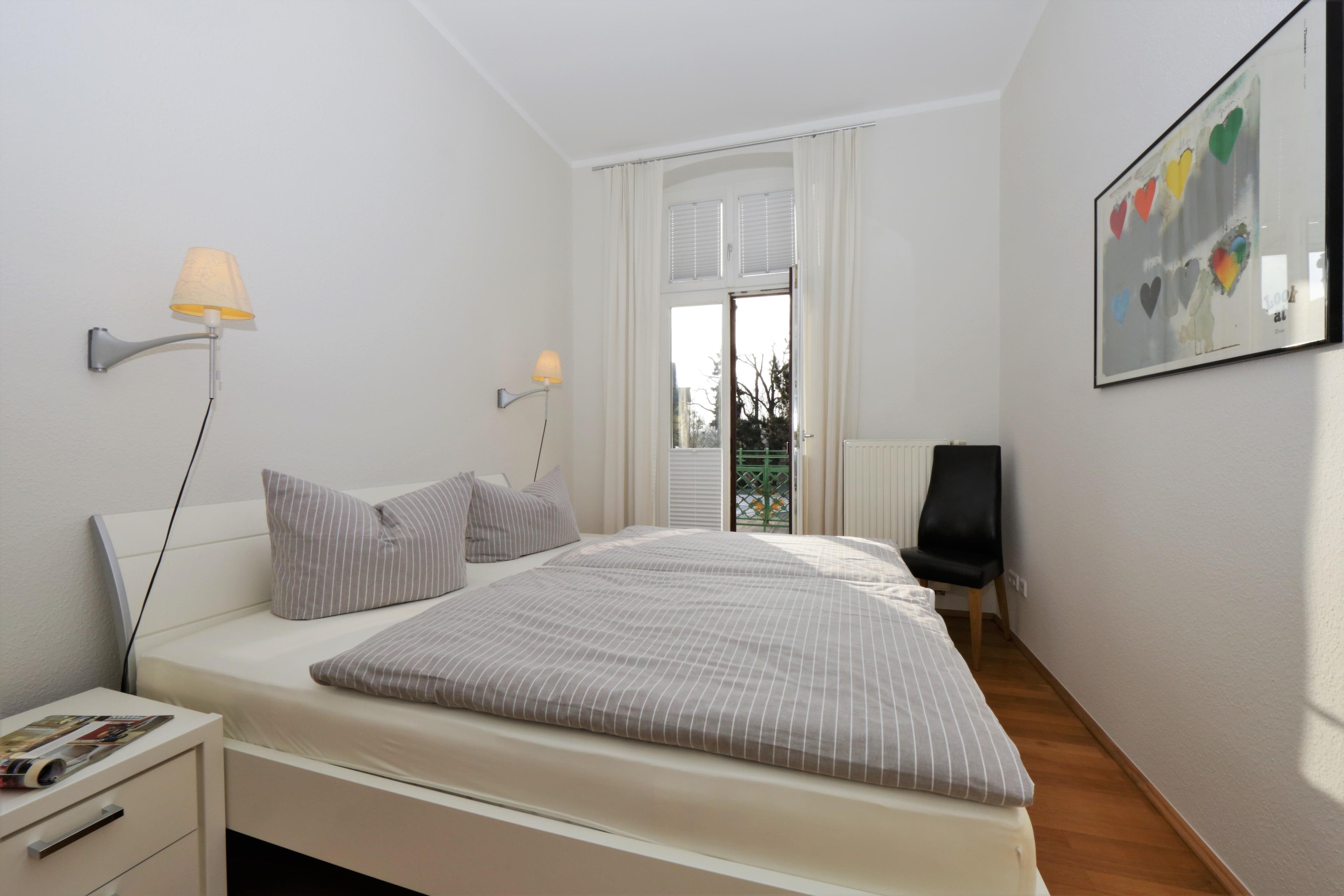 Dieses moderne, mit 89 qm großzügige 3-Zimmer Appartement befindet sich im 1.Obergeschoss und ist für 4 bis 5 Personen geeignet. Im hell eingerichteten Wohnbereich erwartet Sie eine behagliche Polsterecke zum Relaxen, Couchtisch und Flat-TV/DVD, CD/Radio. Ein moderner Kamin schafft Behaglichkeit und Romantik an rauen Ostseetagen in der dunkleren Jahreszeit. Sämtliche Fußböden sind mit Echtholzparkett ausgestattet, Bad und Gäste- WC ausgeschlossen. In der an den Wohnbereich angrenzenden hellen Loggia lädt ein großer Essplatz zu gemeinsamen Mahlzeiten ein. Hier wird nach einem ausgiebigen Strandtag eine Tasse Kaffee getrunken und beratschlagt in welches der zahlreichen, umliegenden Restaurants zu Abend gegessen werden soll. Außerdem steht hier einer möglichen 5. Person ein Schlafplatz auf dem Sofa zur Verfügung. Aus der Loggia genießen Sie einen herrlichen Blick auf die Promenade und die Ostsee. Die im hinteren Wohnbereich integrierte Küchenzeile ist mit Cerankochfeld, Backofen, Geschirrspülmaschine, Kühlschrank, Mikrowelle etc. ausgestattet. Die hellen Schlafzimmer verfügen jeweils über ein komfortables Doppelbett mit getrennten Matratzen und einen großzügigen Kleiderschrank. Ein Balkon in südwestlicher Ausrichtung sichert Ihnen die Abendsonne und ist von einem der Schlafzimmer begehbar. Das moderne Badezimmer ist sowohl mit einer Dusche als auch einer Badewanne, einem Doppelwaschtisch und WC ausgestattet. Ein zusätzliches Gäste-WC steht zur Verfügung. Ein Pkw-Stellplatz befindet sich auf dem Grundstück und ist der Wohnung zugeordnet.