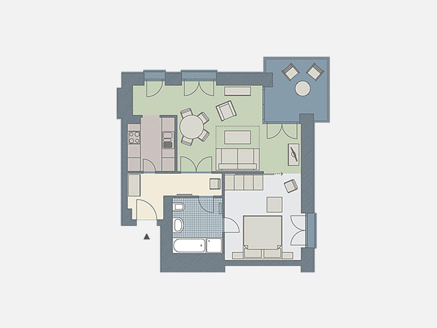 Appartement mit 1 Schlafzimmer und Balkon