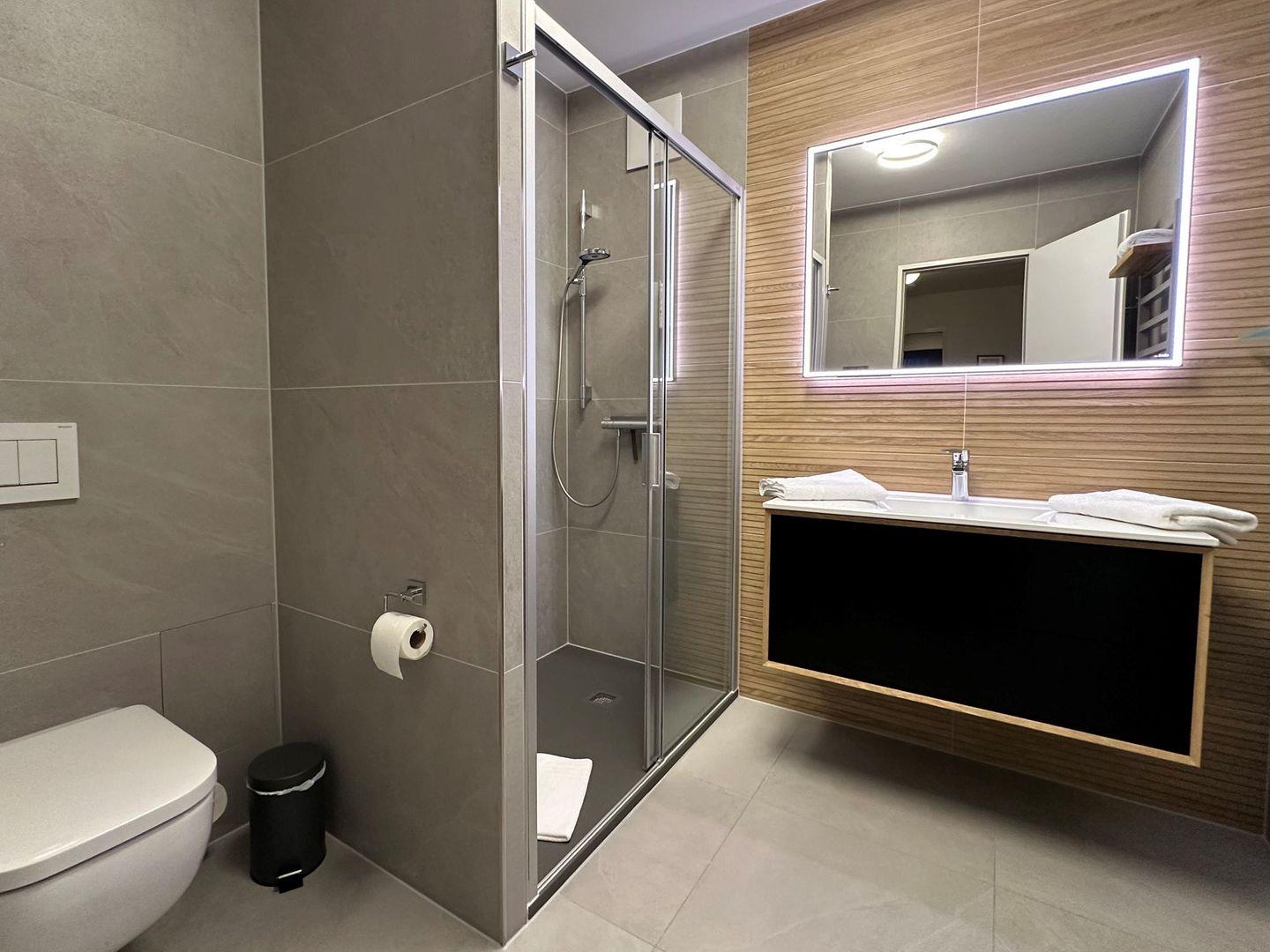 Dieses komfortabel eingerichtete Appartement überzeugt mit hochwertigen Möbeln und einem privaten Balkon. Die Küche ist voll ausgestattet und bietet neben einem Backofen mit Cerankochfeld, einen Geschirrspüler, eine Mikrowelle, einen Wasserkocher, eine Kaffeemaschine und einen Toaster. Im Wohnzimmer finden sich neben dem ausziehbaren Schlafsofa auch der 50 Zoll Smart-TV, der DVD-Player und die Musikanlage. Das Schlafzimmer liegt separat und bietet ein Doppelbett. Das Badezimmer überzeugt mit einer großen ebenerdigen Dusche, einem Waschbecken, einem WC sowie einem großen Spiegel.
