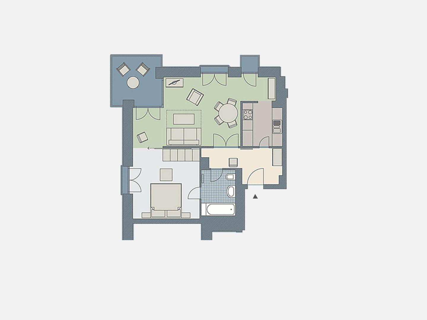 Appartement mit 1 Schlafzimmer und Balkon