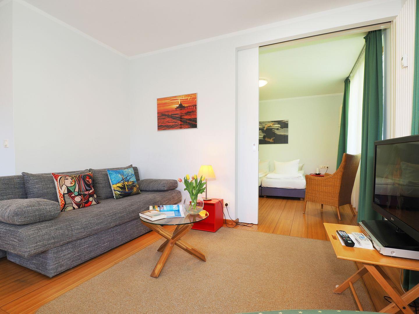 2-Zimmer-Wohnung mit Balkon, Bad mit Wanne und Dusche, Gäste-WC, Küche mit Cerankochfeld, Backofen, Geschirrspüler, Sonstiges: LED-Fernseher, DVD-Player, Musikanlage, Nichtraucher, Haustiere gestattet