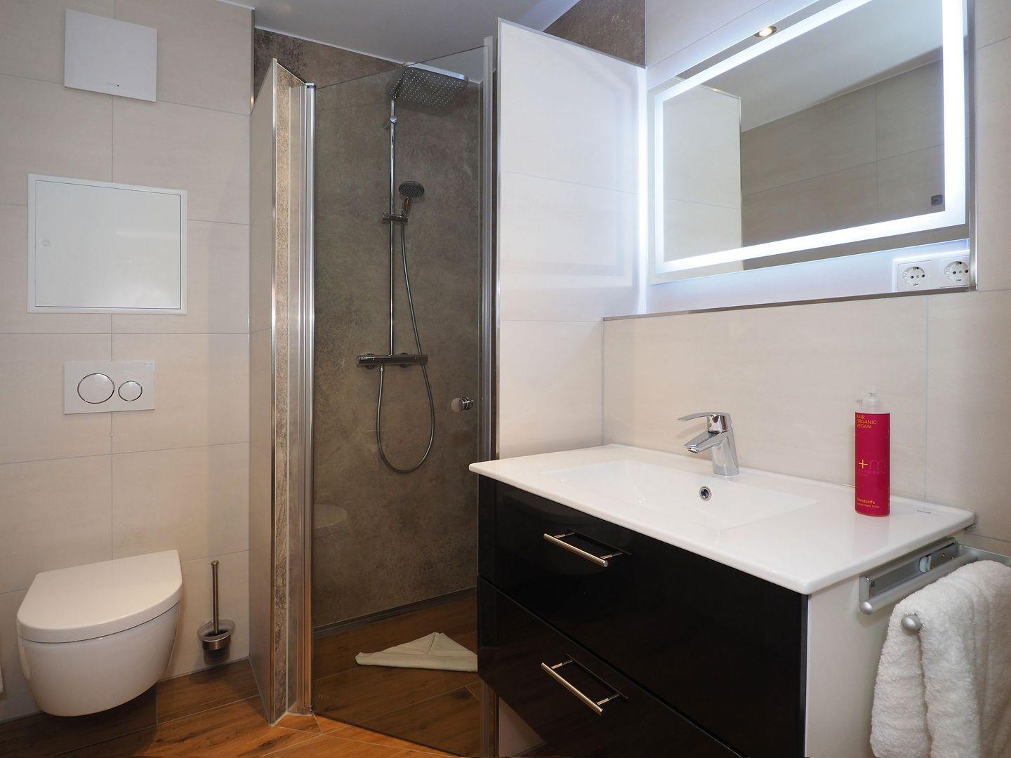 2-Zimmer-Wohnung mit Terrasse, Bad mit Dusche, Küche mit Cerankochfeld, Backofen, Geschirrspüler und Mikrowelle, Sonstiges: LCD-Fernseher, DVD-Player, Musikanlage, Nichtraucher