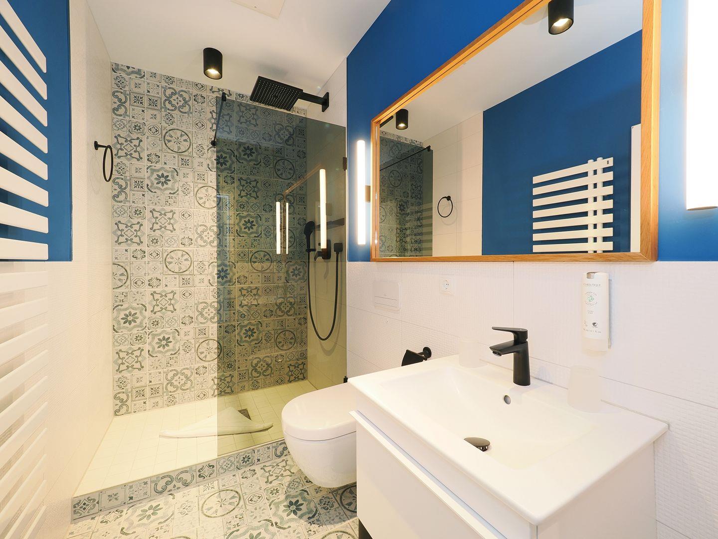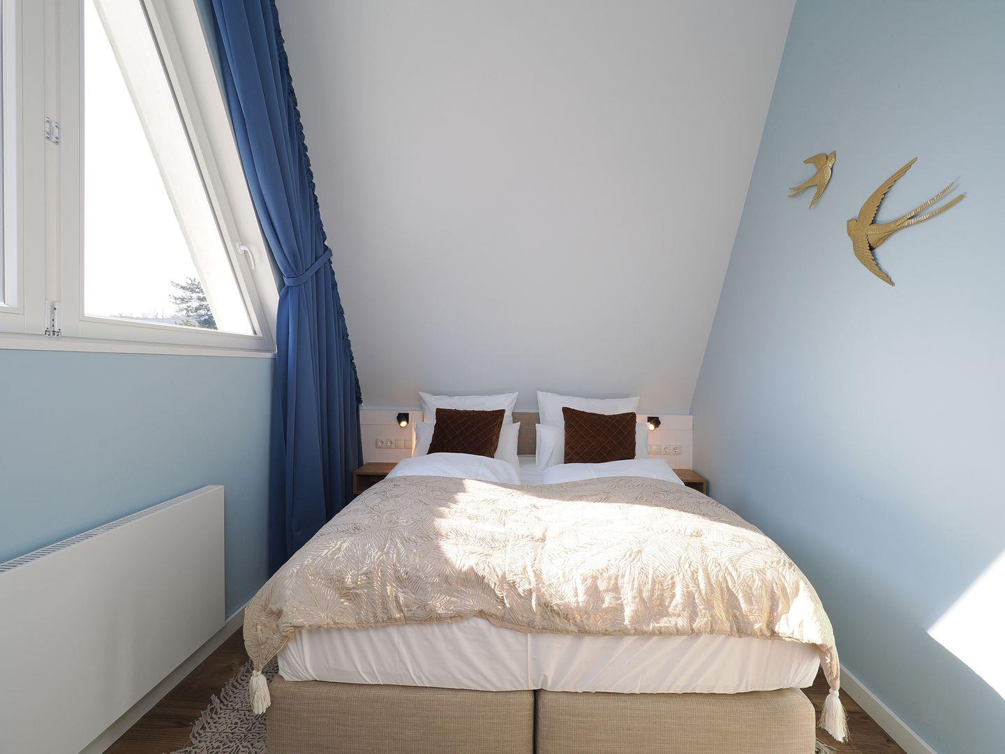 Entspannen Sie auf Ihrem privaten Balkon auf der Seebrücke Heringsdorf! Die 2023 renovierte, lichtdurchflutete 3-Raum Ferienwohnung ist auf zwei Ebenen konzipiert. Beide Schlafzimmer liegen auf der oberen Etage und sind vom darunter liegenden Wohnbereich aus über eine Treppe zu erreichen. In jedem der beiden Schlafzimmer sorgt ein Doppelboxspringbett für erholsamen Schlaf. Im Wohnzimmer finden Sie genügend Einbauschränke für Ihre Garderobe und die bequeme Eckschlafcouch sorgt für kuschelige Gemütlichkeit. Über den großen Smart-TV können Sie am Abend die Fotos des Tages betrachten oder Ihre Lieblingsmusik hören. Der sich dem Wohnbereich unmittelbar anschließende, offene Küchenbereich mit dem großzügigen Essplatz ist mit Ceranfeld, Backofen, Geschirrspüler, Kühl-Gefrierkombination, Spülmaschine, Toaster, Mikrowelle, Wasserkocher und alle erforderliche Küchenutensilien ausgestattet. Zwei Badezimmer überzeugen mit ebenerdigen Duschen, Waschbecken und WC sowie einem großen Spiegel mit Kosmetikspiegel. Vom Wohnbereich haben Sie einen direkten Ausgang auf die Terrasse mit Sitzgarnitur, wo Sie den Sonnenuntergang genießen können. Für Ihren Komfort sind Bettwäsche, Handtücher, Reinigungs- und Waschmittel als Erstausstattung inklusive. Der WLAN-Zugang ist kostenfrei nutzbar. Auf Wunsch stellen wir ein Kinderreisebett und einen Kinderhochstuhl gegen einen Aufpreis zur Verfügung. Vor dem Haus gibt es nur Be- und Endladeparkplätze, als Alternative bieten wir für das örtliche Parkhaus in Heringsdorf ermäßigte Parkkarten gemäß aktueller Preise. Die Parkkarte erhalten Sie bei Anreise in unserem Servicebüro. Haustiere sind in dieser Ferienwohnung herzlich willkommen, hierfür berechnen wir Gebühr gemäß aktueller Preise. Im Untergeschoss der Seebrücke steht Ihnen ein abschließbarer Fahrradraum sowie ein kleiner Waschraum mit Waschmaschine, Trockner, Bügelbrett und Bügeleisen kostenfrei zur Verfügung.