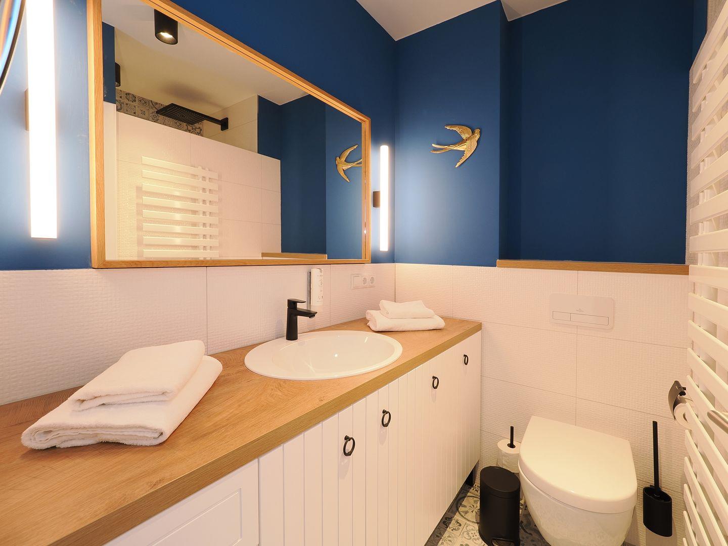 Entspannen Sie auf Ihrem privaten Balkon auf der Seebrücke Heringsdorf! Die 2023 renovierte und modern eingerichtete 1-Raum Ferienwohnung verfügt über ein Boxspringdoppelbett sowie einem gemütlichen Eckschlafsofa und Smart-TV. Neben dem komfortablen Essplatz finden Sie auch genügend Platz für Ihre Garderobe und haben einen direkten Ausgang zum Balkon mit Sitzgarnitur, wo Sie den herrlichen Weitblick auf die Ostsee genießen können. Die offene Küchenzeile ist mit Ceranfeld, Backofen, Geschirrspüler, Kühl-Gefrierkombination, Spülmaschine, Toaster sowie einer Mikrowelle, Wasserkocher und allen erforderlichen Küchenutensilien ausgestattet. Das Badezimmer überzeugt mit einer ebenerdigen Dusche, einem Waschbecken, einem WC sowie einem großen Spiegel mit Kosmetikspiegel. Für Ihren persönlichen Komfort sind Bettwäsche, Handtücher, Reinigungs- und Waschmittel als Erstausstattung inklusive. Der WLAN-Zugang ist kostenfrei nutzbar. Auf Wunsch stellen wir ein Kinderreisebett und einen Kinderhochstuhl gegen Aufpreis zur Verfügung. Vor dem Haus gibt es nur Be-und Endladeparkplätze, als Alternative bieten wir für das örtliche Parkhaus in Heringsdorf ermäßigte Parkkarten gemäß aktueller Preise. Die Parkkarte erhalten Sie bei Anreise in unserem Servicebüro. Haustiere sind in dieser Ferienwohnung herzlich willkommen, hierfür berechnen wir Gebühr gemäß aktueller Preise. Im Untergeschoss der Seebrücke steht Ihnen ein abschließbarer Fahrradraum sowie ein kleiner Waschraum mit Waschmaschine, Trockner, Bügelbrett und Bügeleisen kostenfrei zur Verfügung.