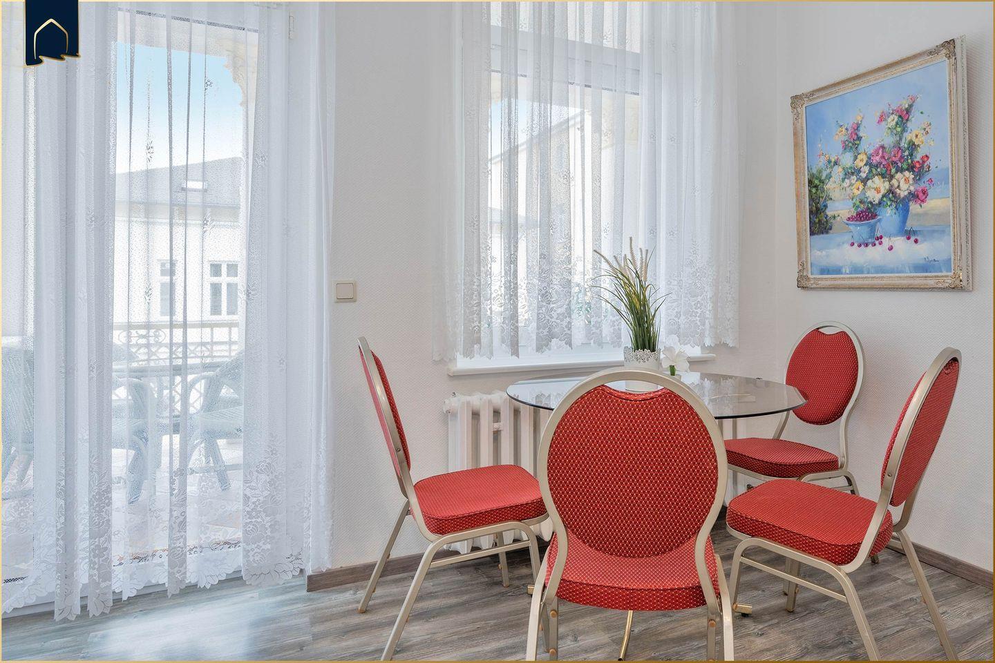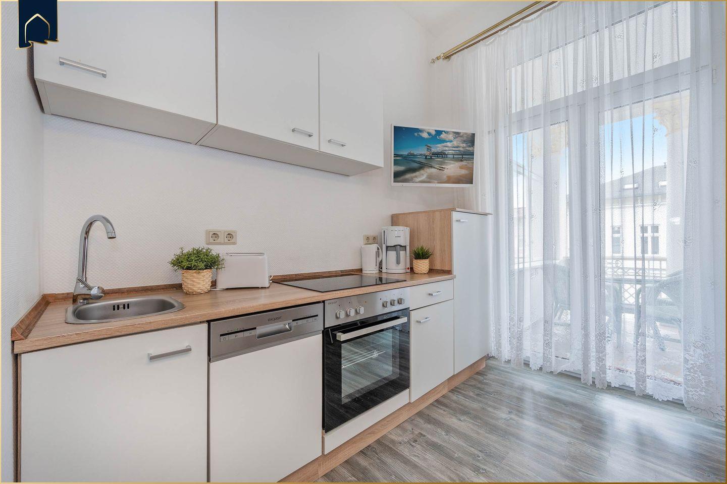 Die Villa Seeland App. 04 in Seebad Heringsdorf bietet auf 40 m² Platz für bis zu 4 Personen und ein Haustier. Die modern ausgestattete Unterkunft verfügt über ein separates Schlafzimmer, einen Wohnbereich mit Sofa, eine voll ausgestattete Küche sowie einen Balkon. WLAN, TV und zahlreiche Freizeitmöglichkeiten in unmittelbarer Nähe wie Strand, Einkaufsmöglichkeiten und Restaurants sorgen für einen angenehmen Aufenthalt.